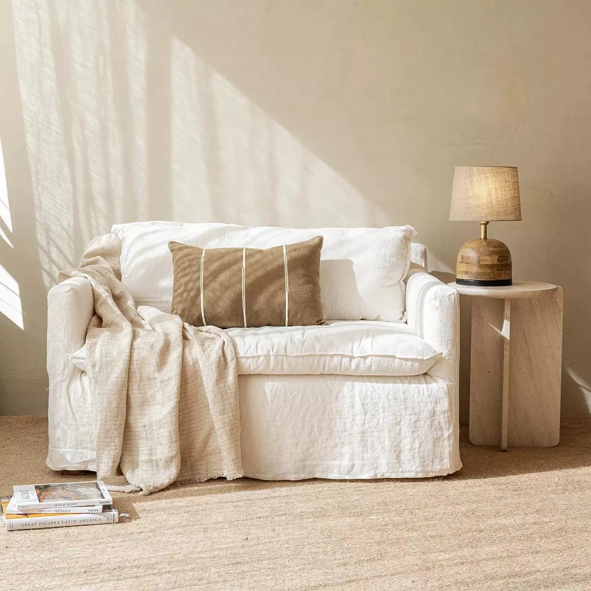 北欧風と和の融合!洗えるコットンリネン製のホワイトソファ - 中古で侘寂の美しさを演出する、2人掛け・3人掛けに最適なコンパクトサイズ【小さなお部屋にぴったり】