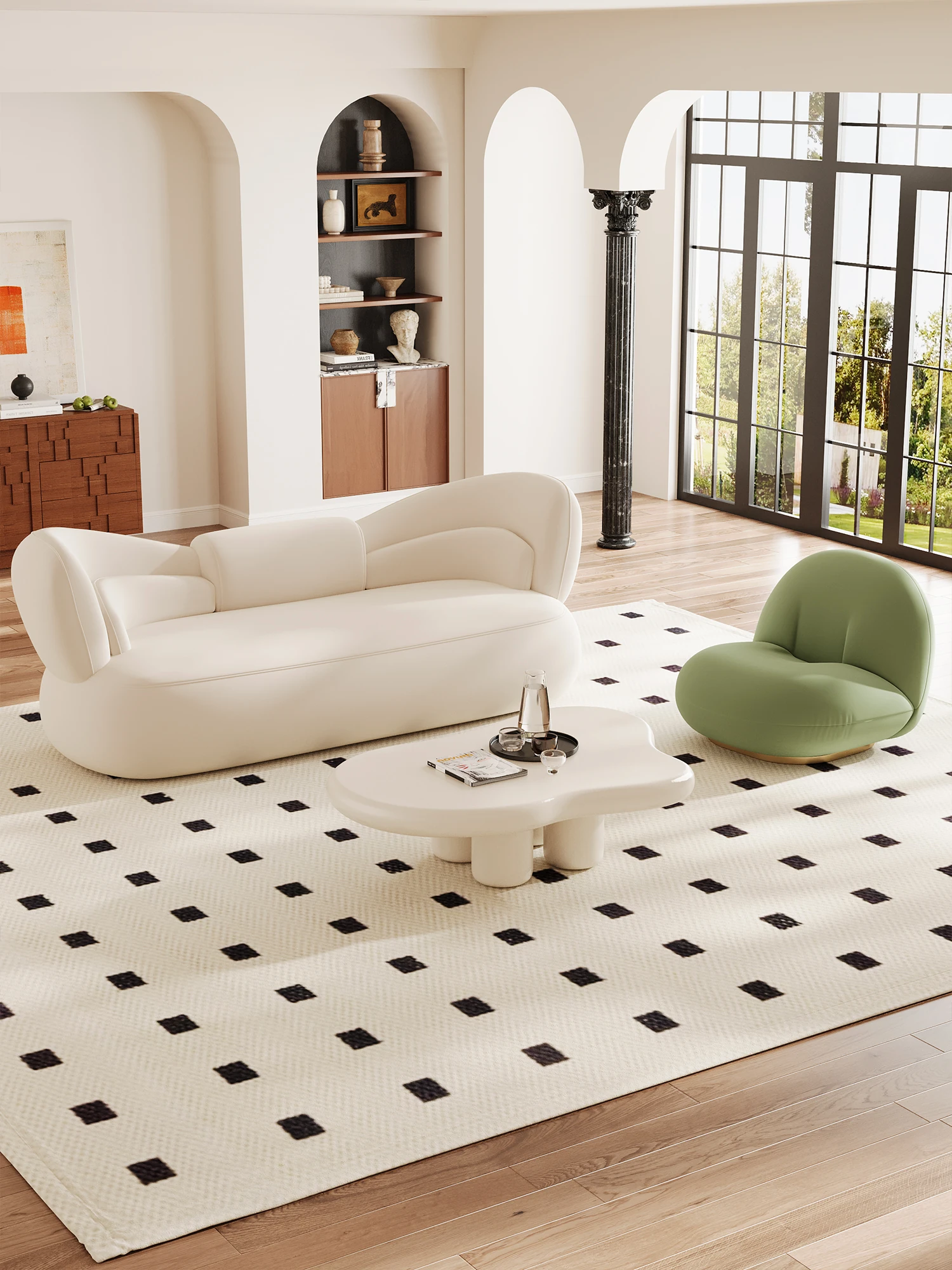 北欧スタイルのアーチ型ソファ|小型住宅向け、現代的でシンプルなデザイン|民宿・ホテル・美容院の休憩スペースや受付に最適|2025年新作登場!