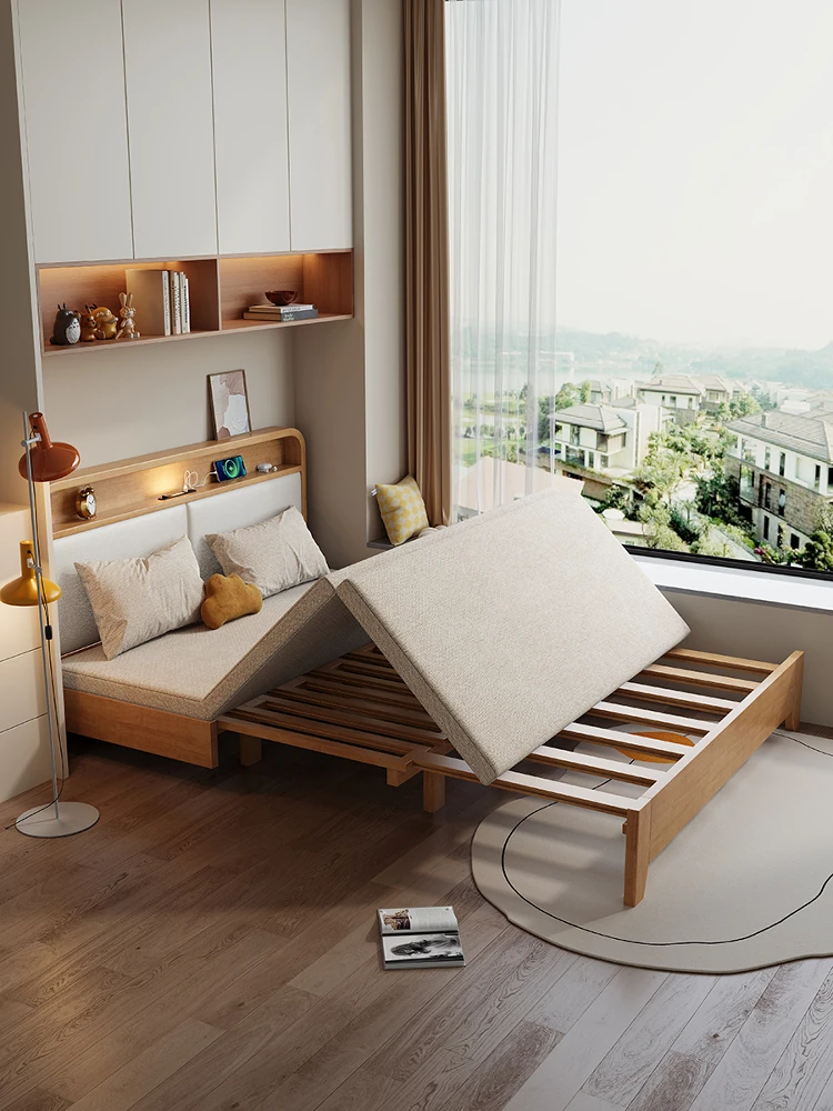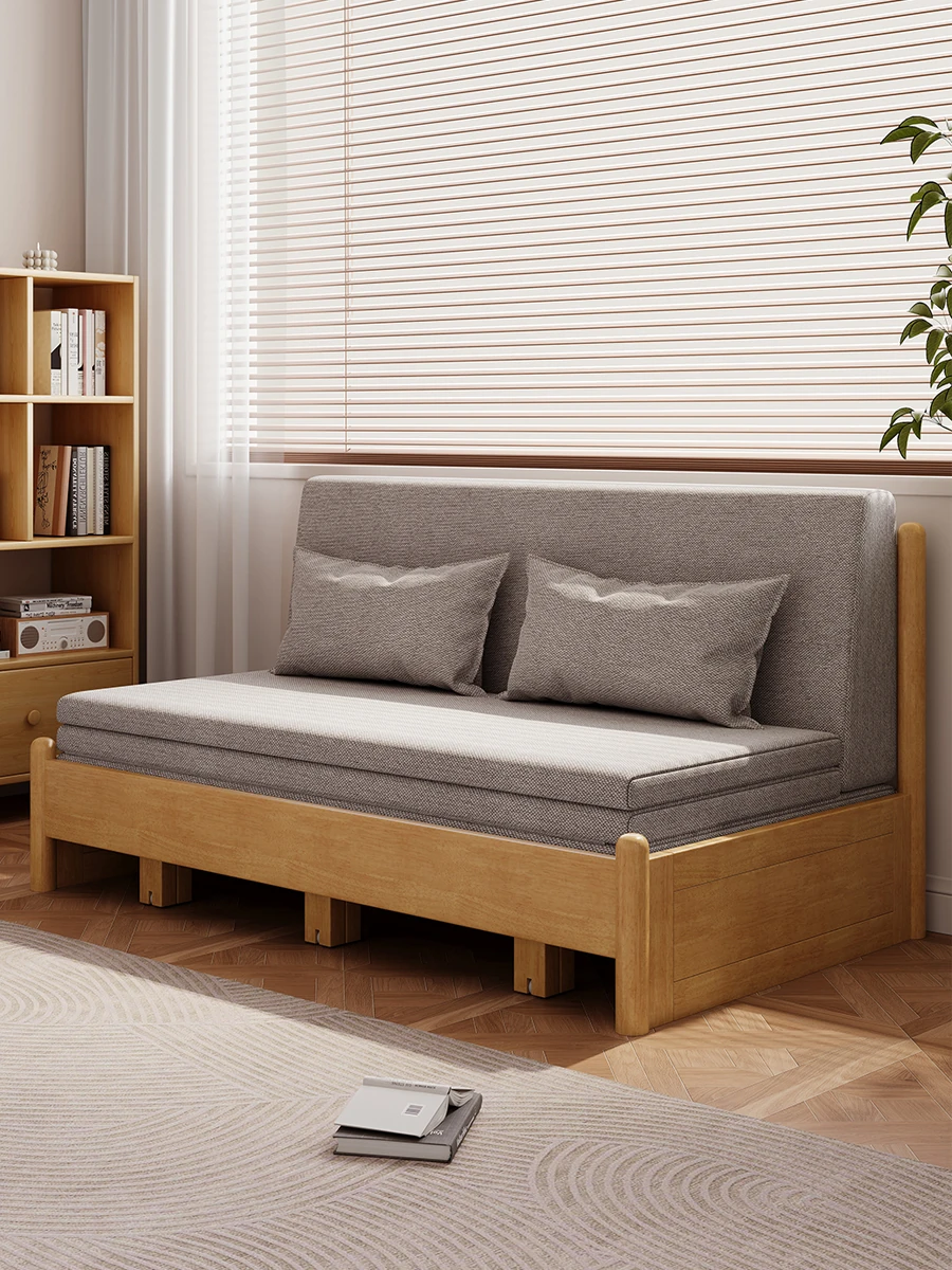 折りたたみ式無垢材ソファベッド|小型住宅に最適な多機能デザイン|人気の伸縮式ベッド!アームレストなしでスッキリ収納可能!書斎やリビングにぴったりのアイテムです。