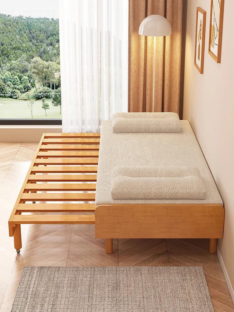 コンパクトな伸縮式ソファベッド|多機能でおしゃれな実木製、狭いスペースにも最適!リビングでの座り心地と寝心地を両立させたプルアウトベッド。おしゃれで便利な空間作りに最適です!