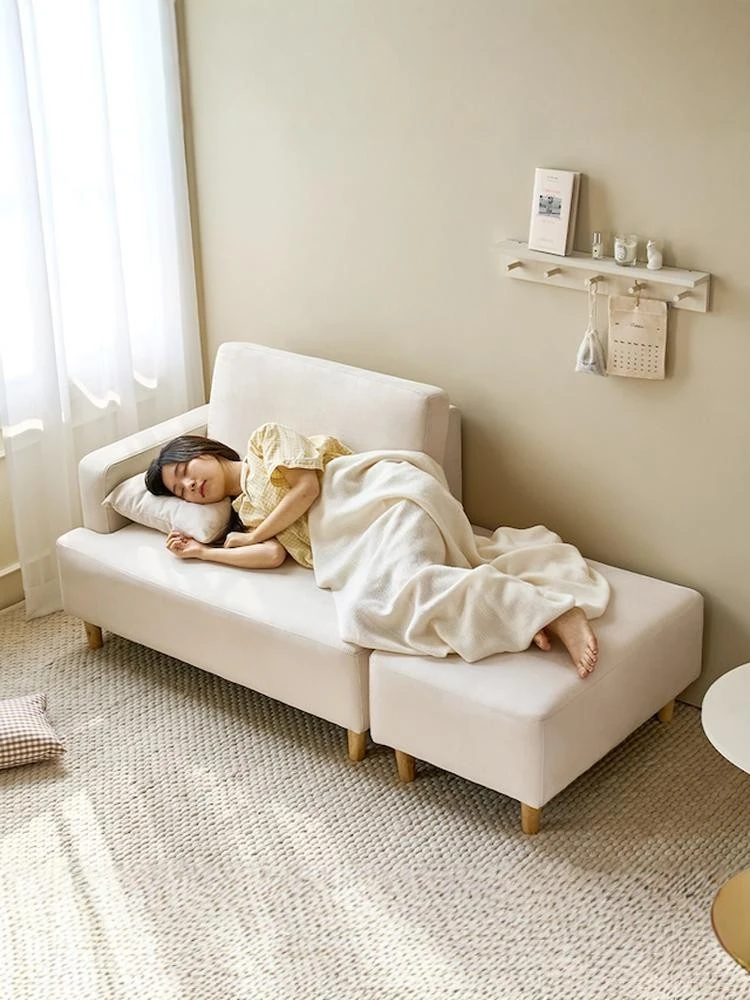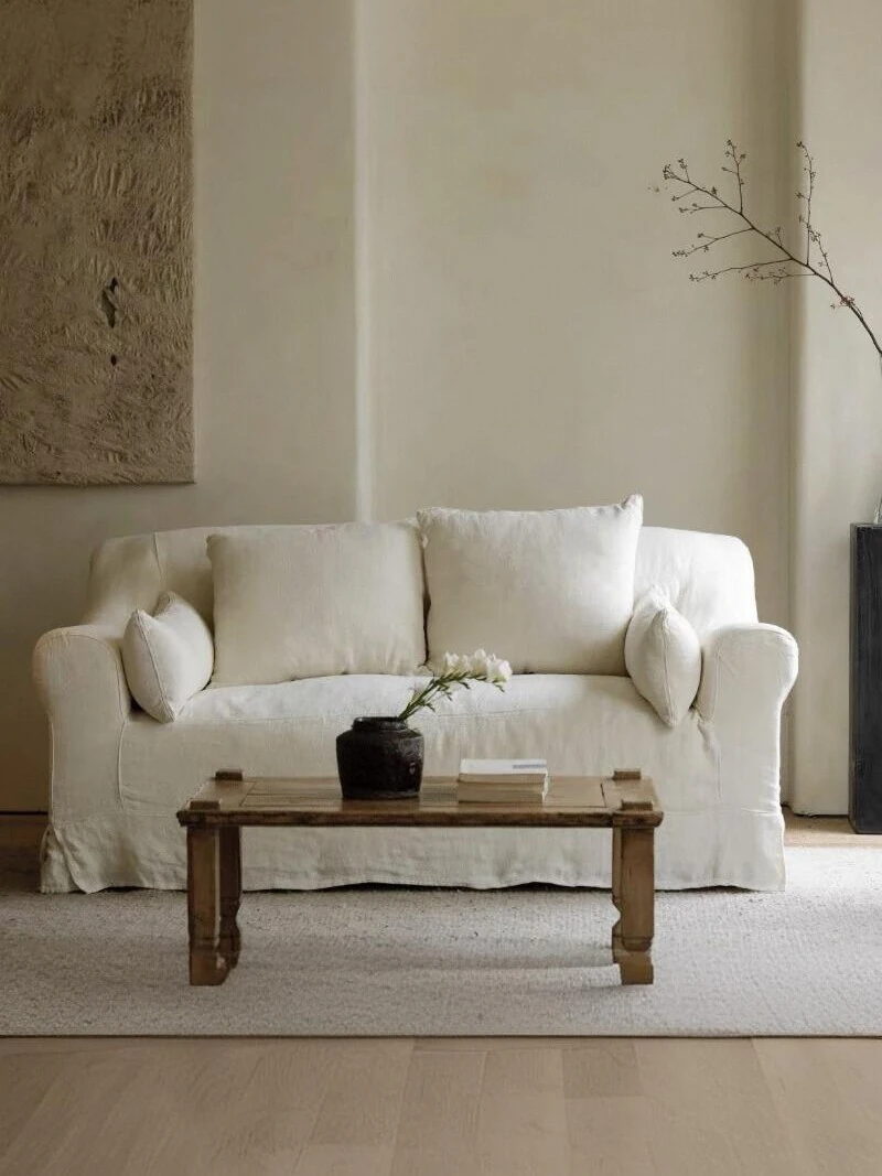 侘寂風の麻布ソファ|小型リビングに最適!全て洗えるデザインで、民宿やアメリカンレトロなロフトスタイルにもぴったり。快適さと美しさを兼ね備えた、あなたの理想の空間を演出します!