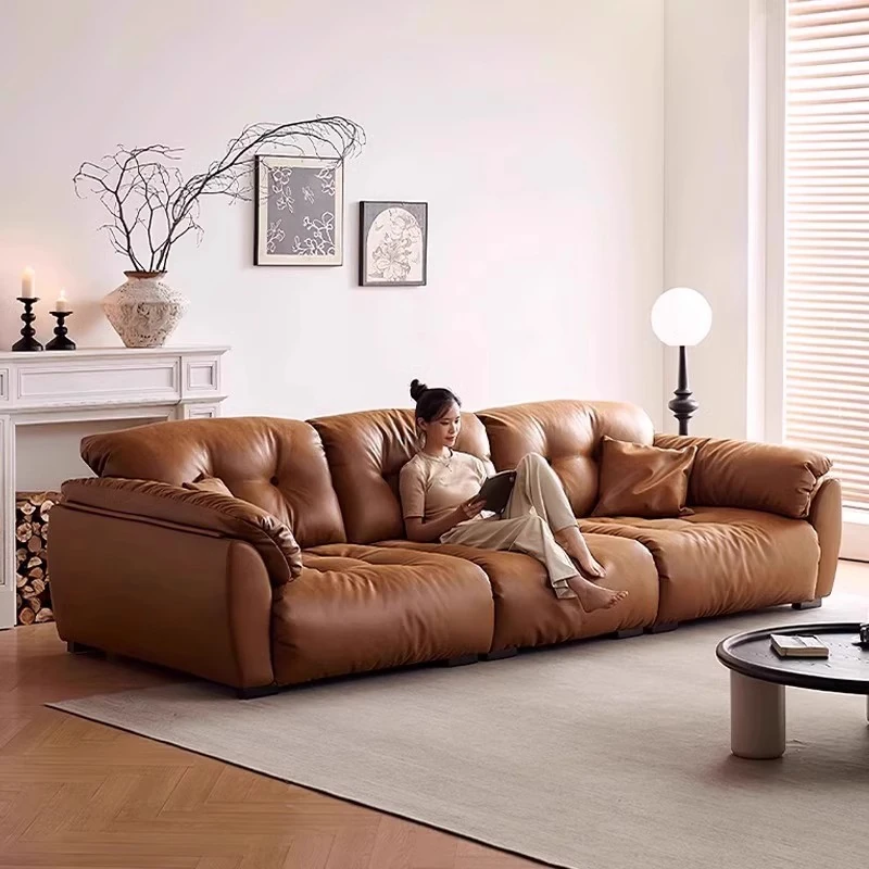 2025年新作!レトロ雲朵ソファ - 中古風オイルワックス仕上げの大座深型、可動式バックレスト搭載の多機能リビング用ソファで、あなたの居間をおしゃれに演出!