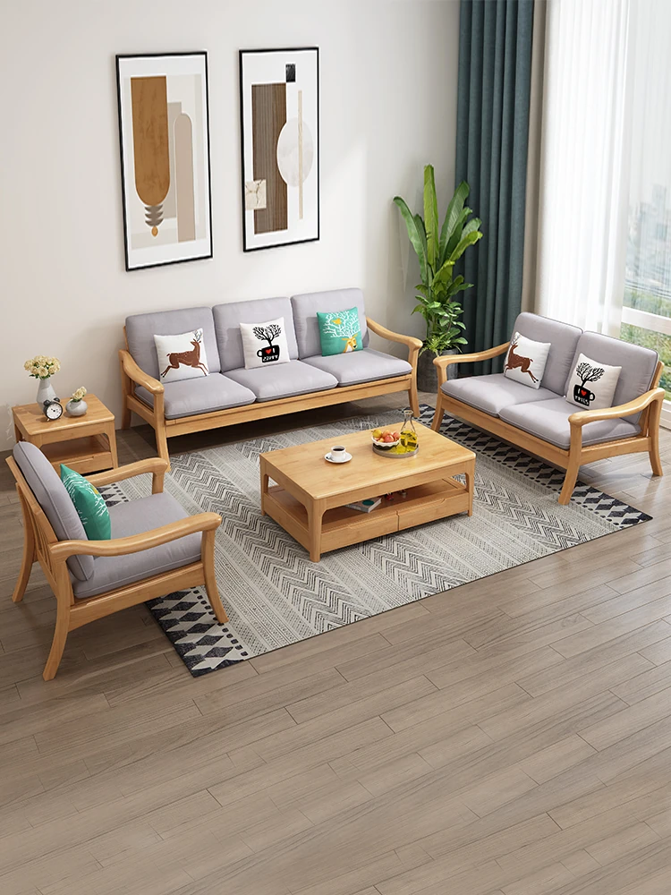 Modern Minimalist Solid Wood Fabric Sofa for Small Living Rooms - Scandinavian Style Wooden Couch for Budget-Friendly Comfort