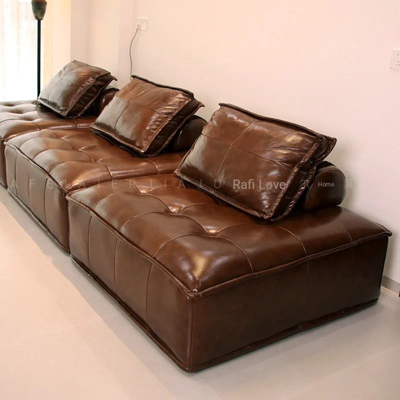 2025 New Vintage French Genuine Leather Sofa - Spacious Design for All Room Sizes, Featuring Durable Waxed Leather and Unique Elephant Ear Style for a Chic Living Room Upgrade