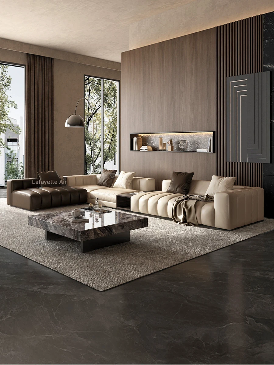 Stylish Italian Minimalist Genuine Leather Sofa for Modern Large Villas - Premium Top-Grain Cowhide with Straight Piano Key Design, Perfect for Your Living Room
