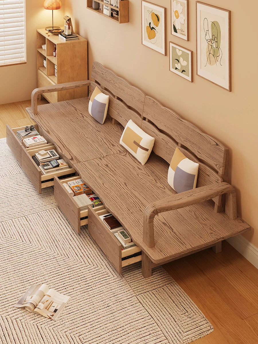 Nordic Style Solid Wood Sofa with Storage - Corner Sofa for Small Spaces, Minimalist Cloud Fabric Sofa for Living Room