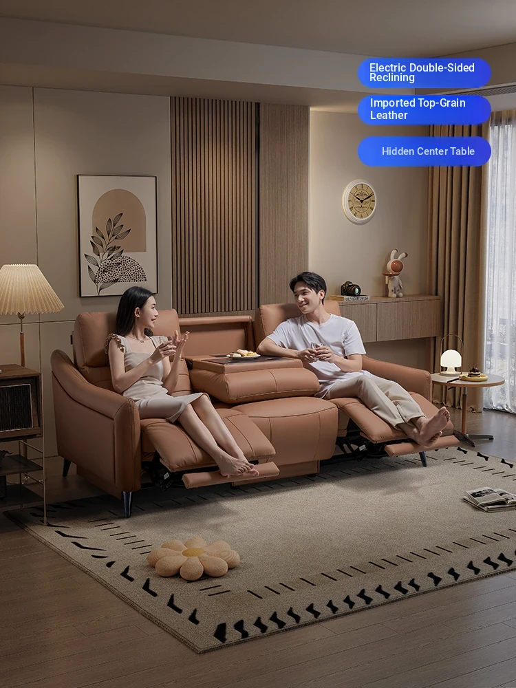 Zhiwa Shi First-Class Home Theater Sofa - Genuine Leather Electric Adjustable Media Room Couch with Cup Holders - Model 40043. Experience unparalleled comfort and luxury in your home cinema!