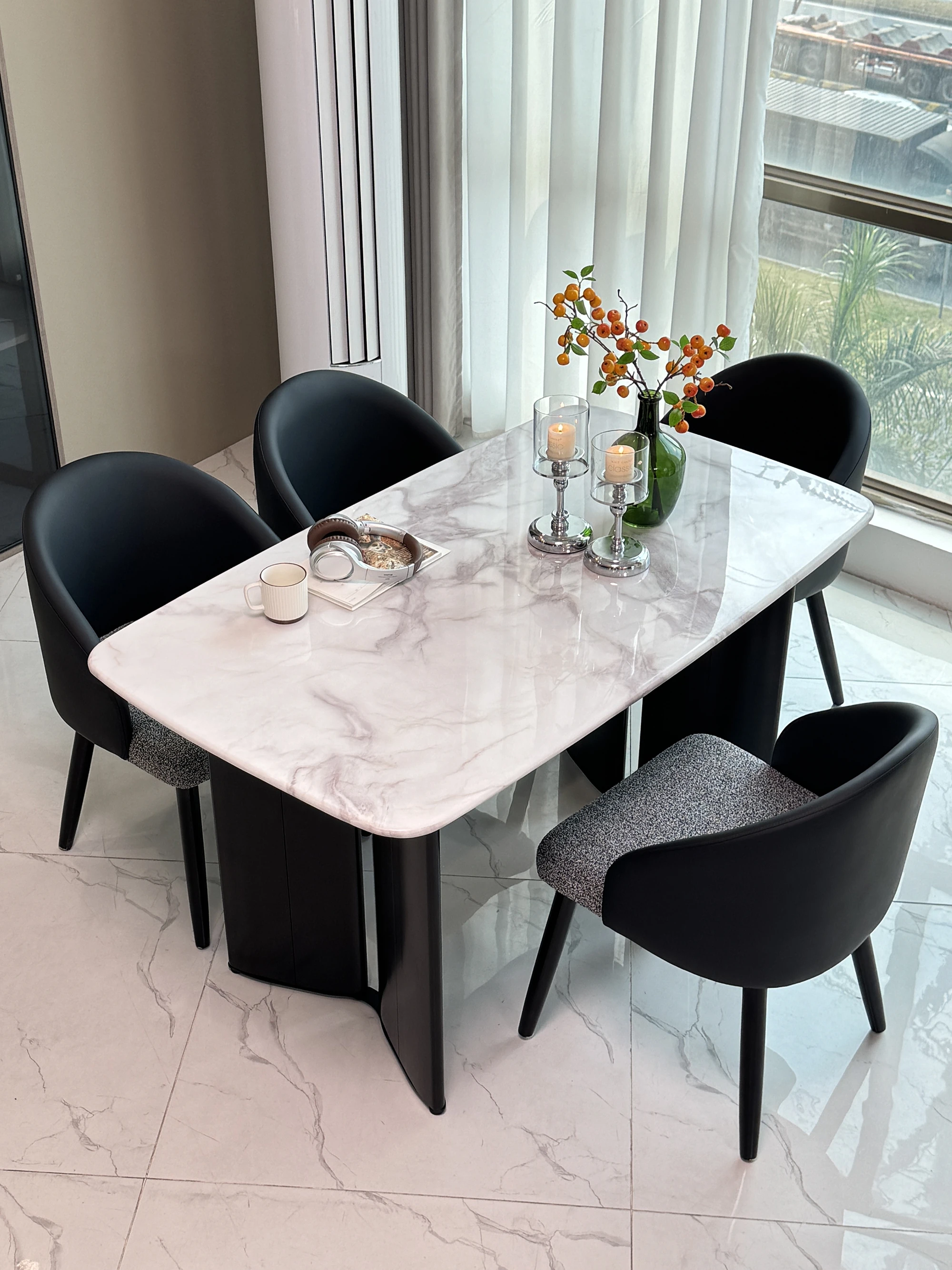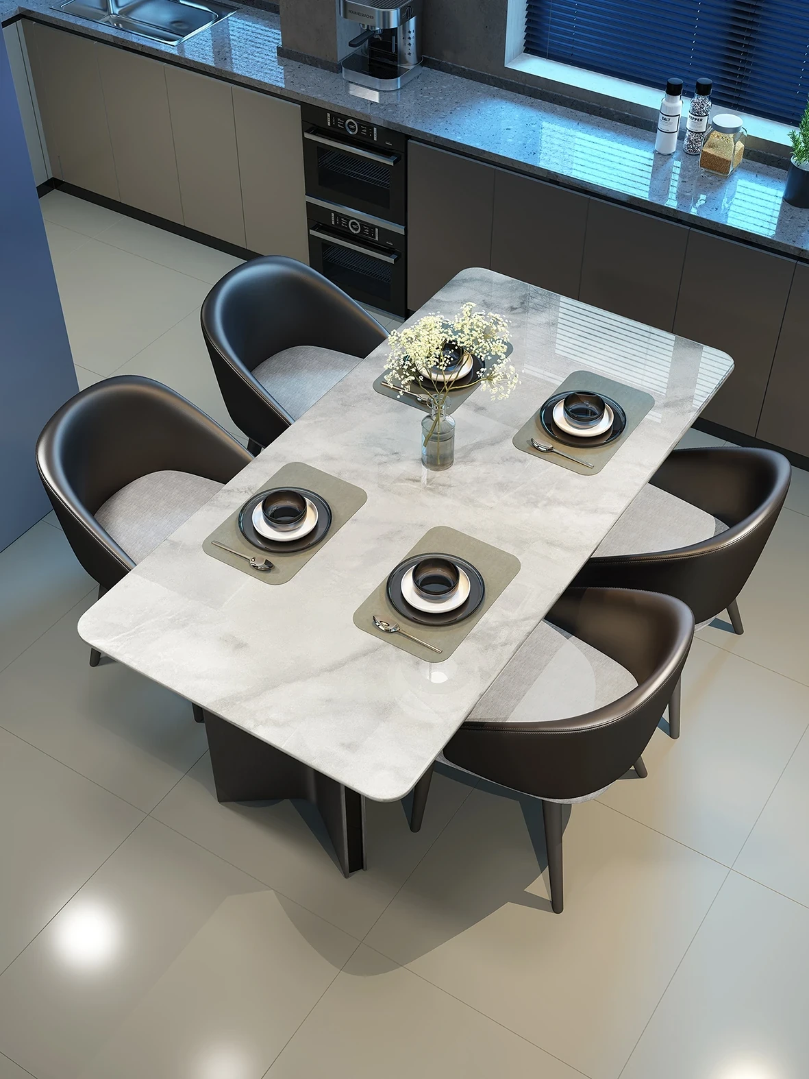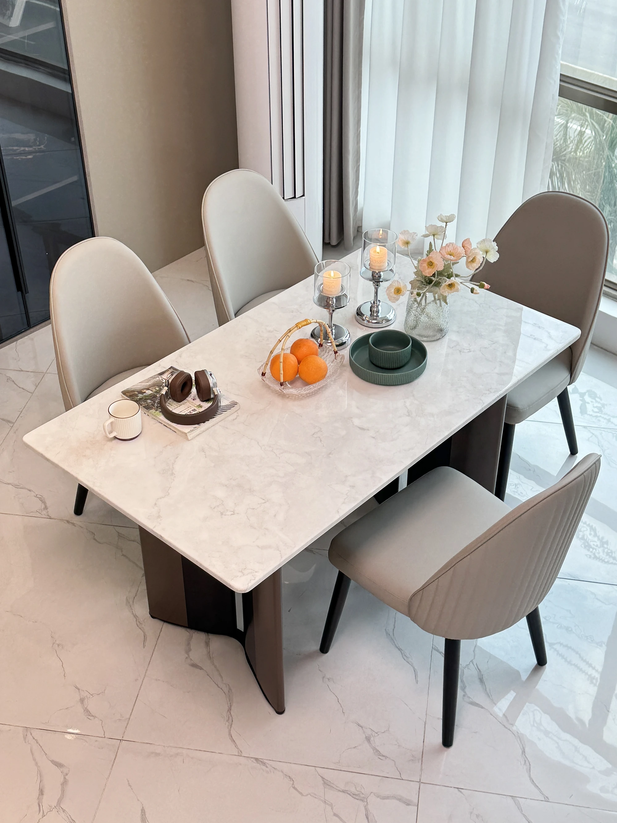 Elegant Modern Minimalist Marble Dining Table Set with Luxurious Stone Texture – Perfect for Upscale Dining Experiences!