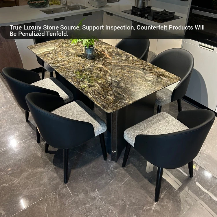 Premium Natural Marble Platinum Diamond Luxury Rectangular Dining Table - 2025 New Arrival for Elegant Home Décor in Modern Minimalist Style