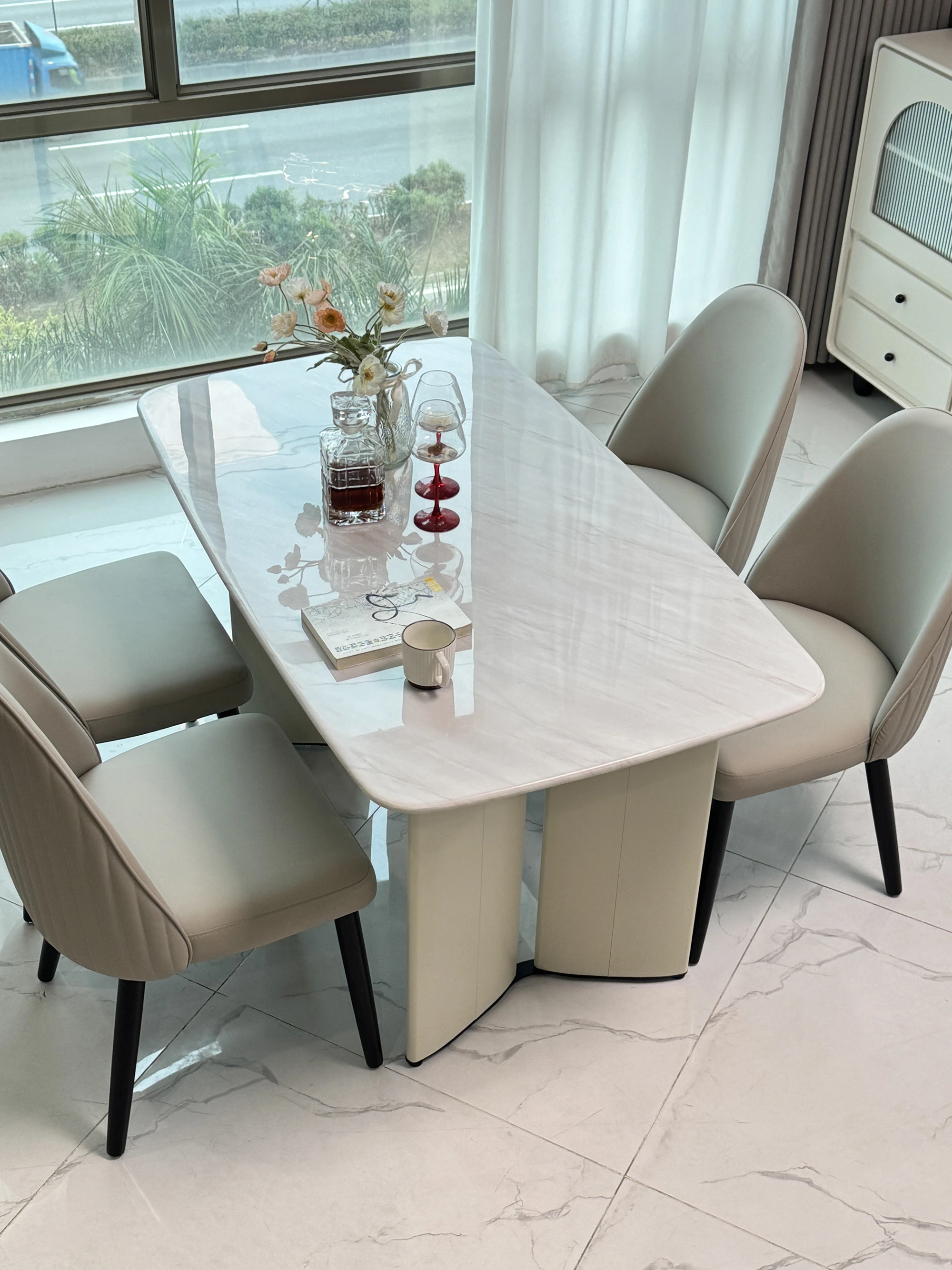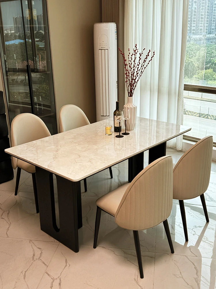 Modern Minimalist Luxury Creamy Marble Dining Table Set - Rectangular High-end Design with Durable Marble Material for Elegant Dining Experience