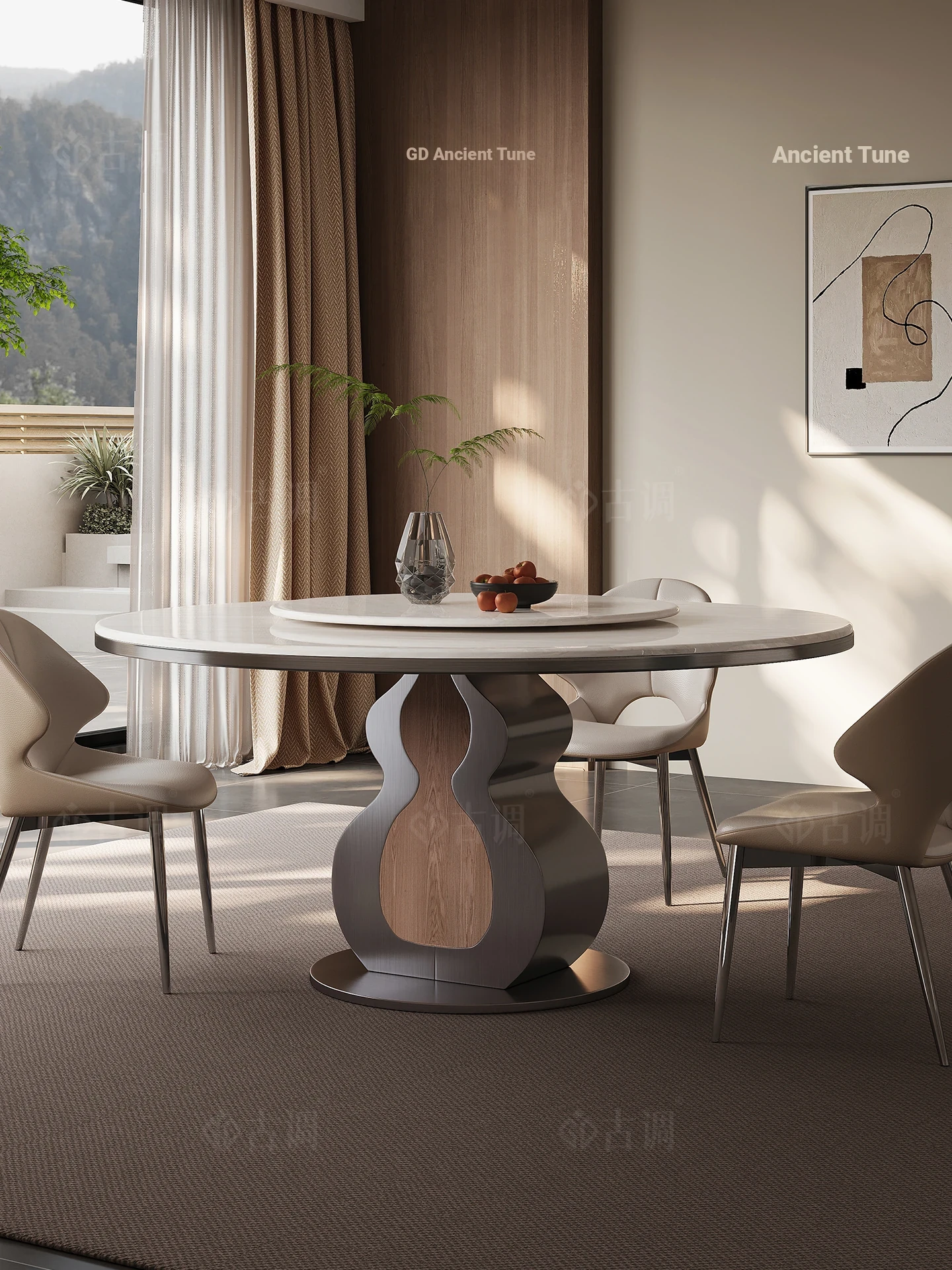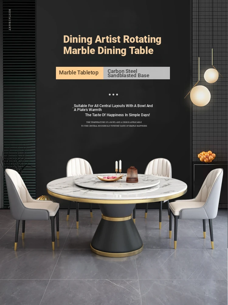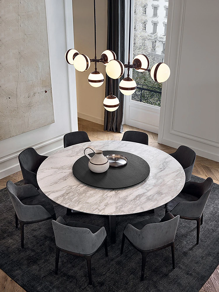 Luxury Round Dining Table - Modern Minimalist Design for Villas and High-End Homes, Featuring Natural Marble with Rotating Tray - Elevate Your Dining Experience!
