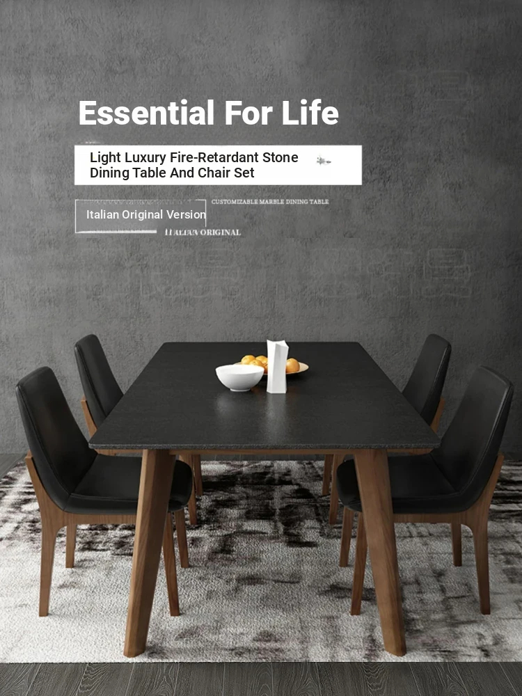 Modern Minimalist Rectangular Dining Table and Chair Set for Small Spaces - Luxurious Ceramic Stone Design for Your Home Living Room