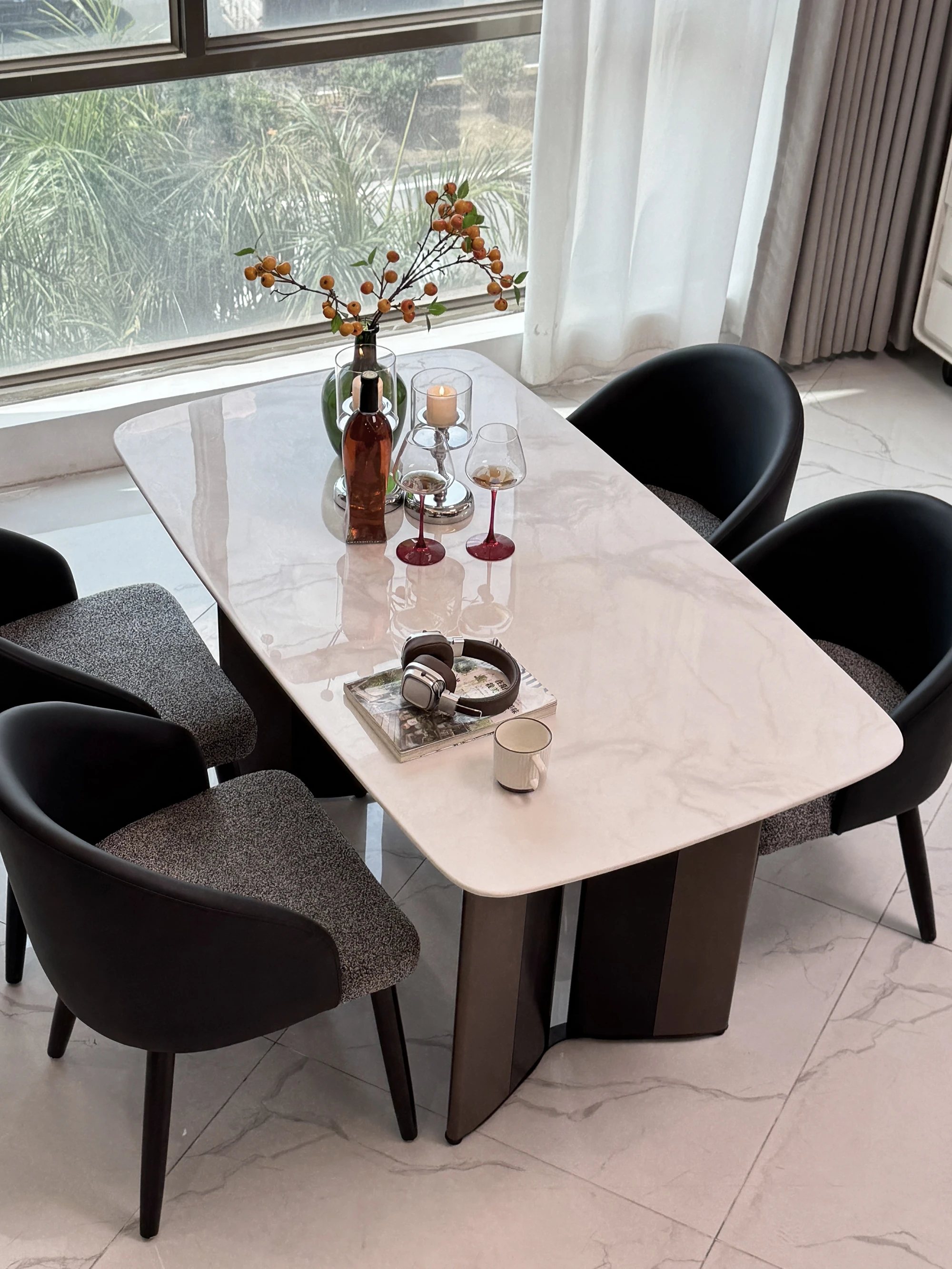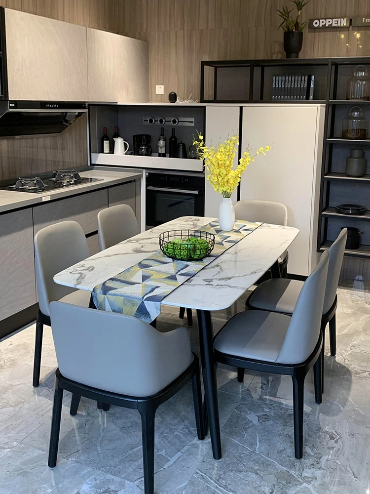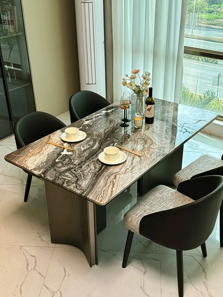 Luxury Stone Texture Snow Mountain Flying Fox Natural Diamond Marble Dining Table Set - Italian Minimalist Light Luxury Marble Dining Table