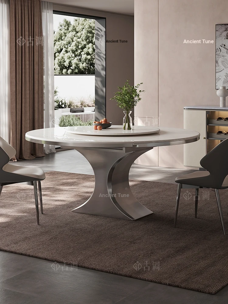 Elegant Round Extensible Marble Dining Table Set - Modern Minimalist Luxury Design for Small Spaces - 2025 New Collection
