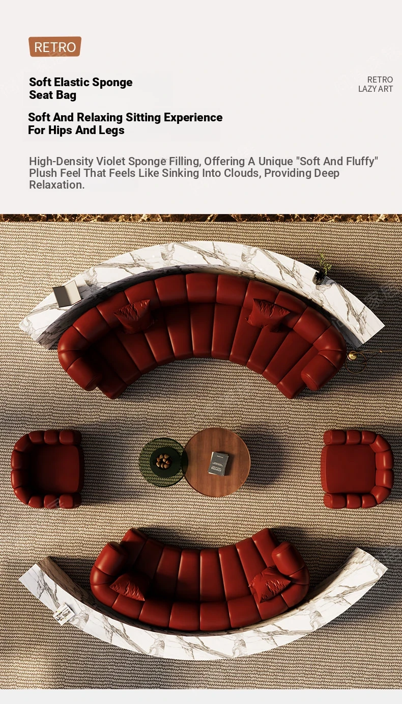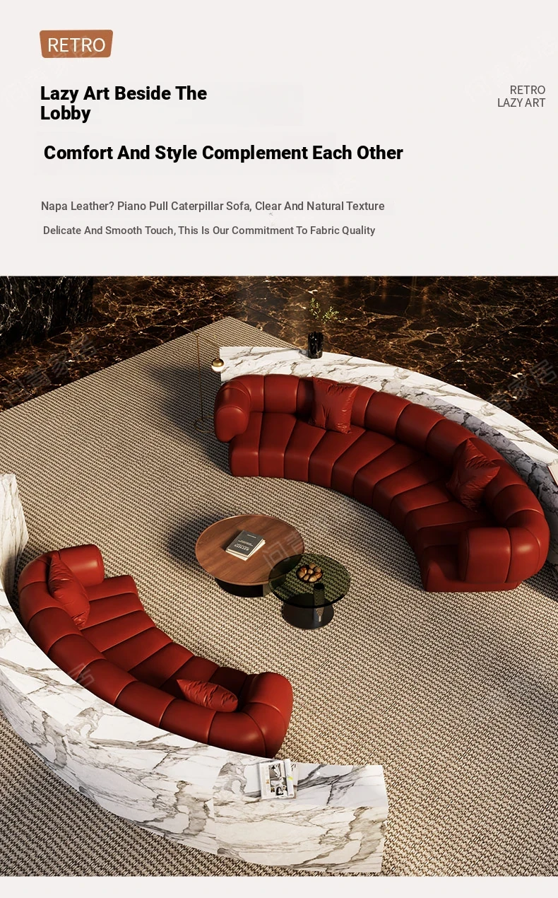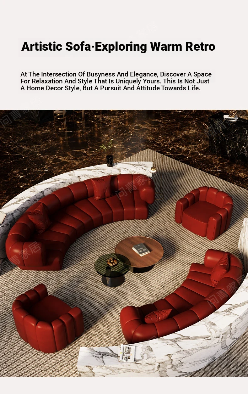 Curved Red Accent Sofa - Unique Half-Moon Design for Reception Areas, Offices, Showrooms, and Hotel Lobbies - Perfect for Comfortable Conversations and Stylish Waiting Spaces
