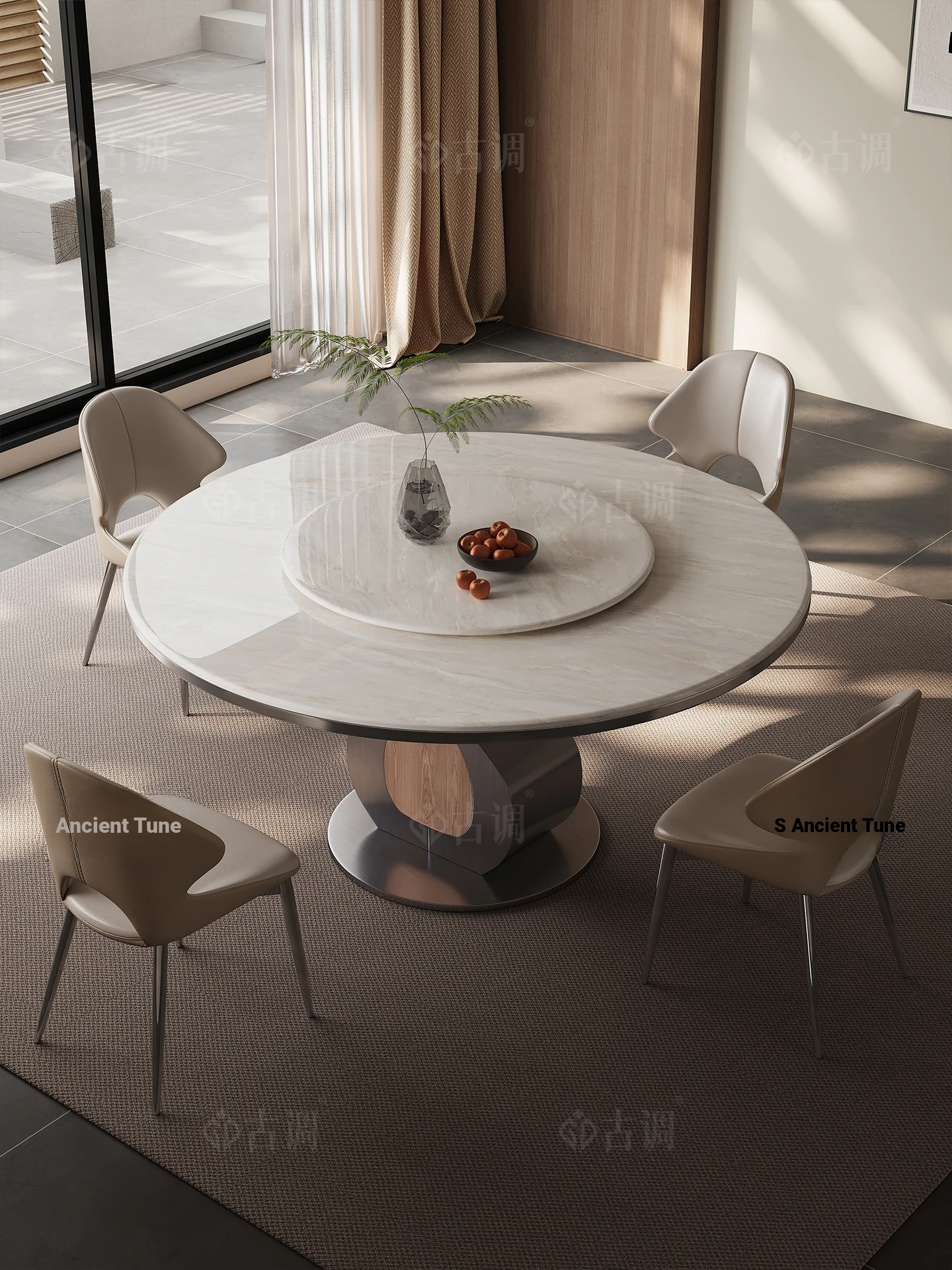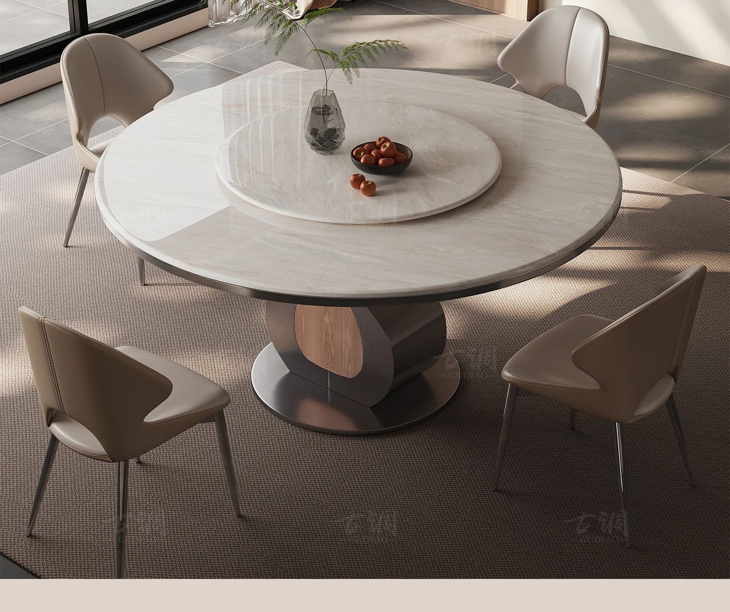 "Jasper white marble" gray titanium 304 stainless steel frame/Mocha chair * 4/with turntable
