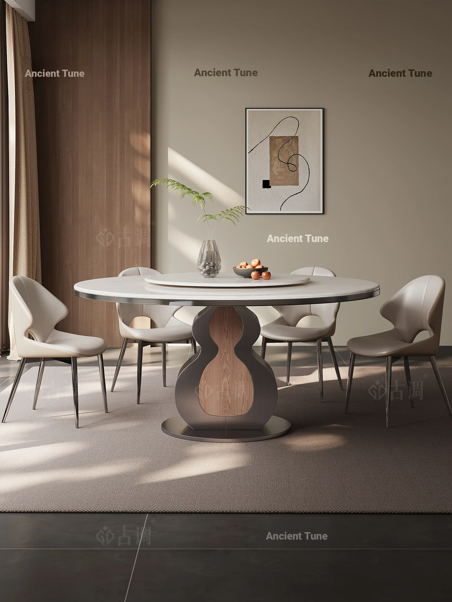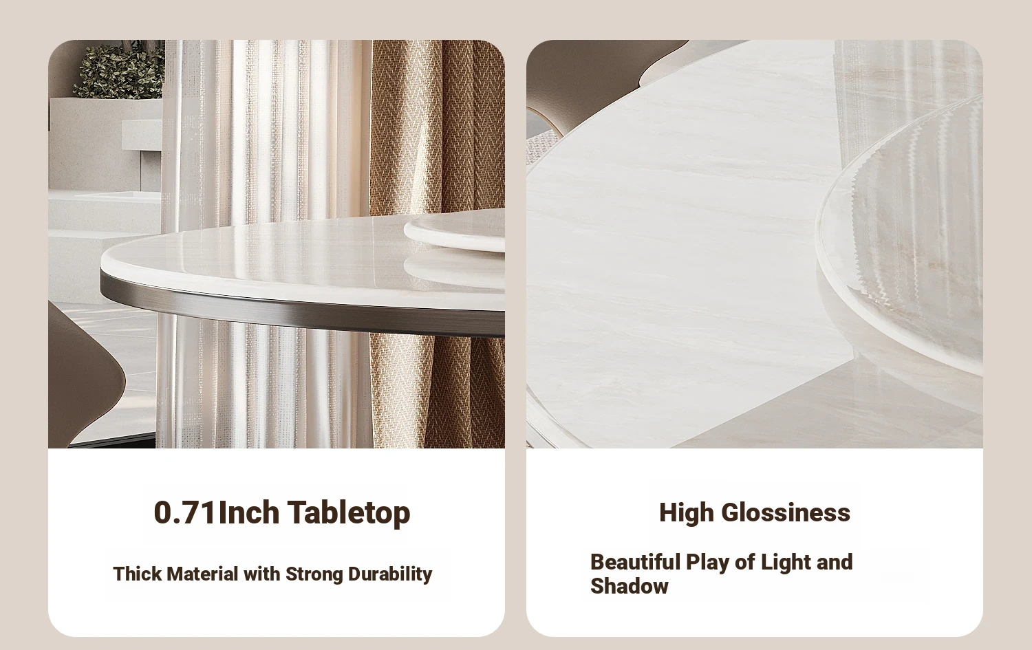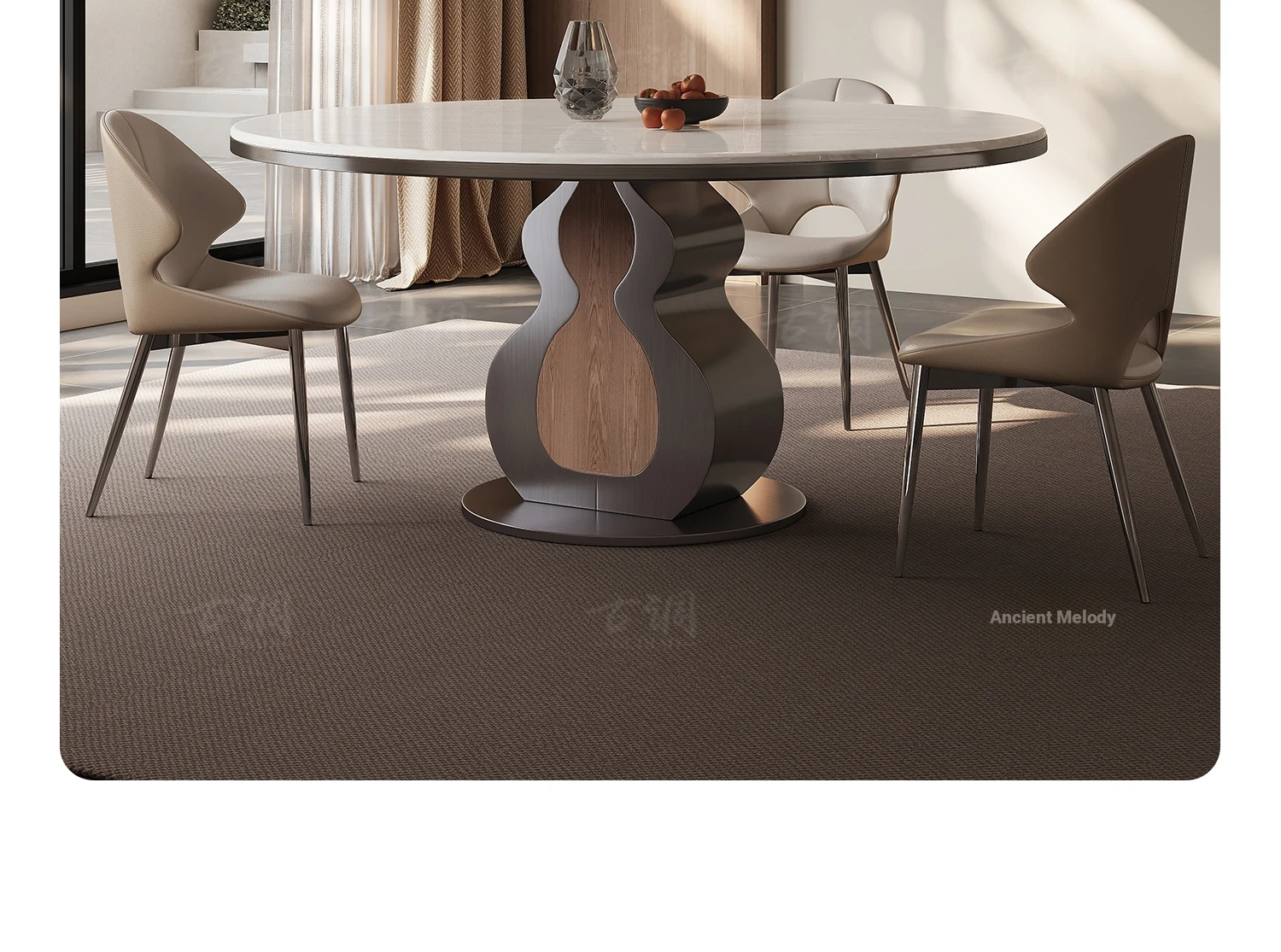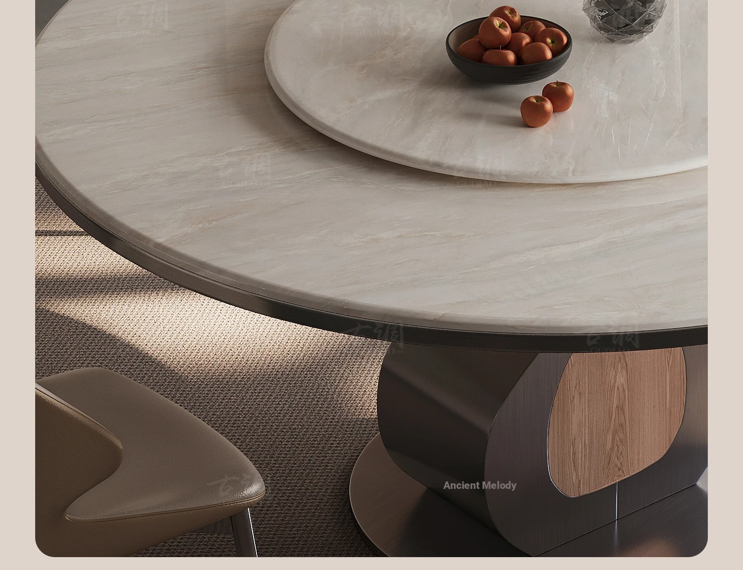"Jasper white marble" gray titanium 304 stainless steel frame/Mocha chair * 6/with turntable