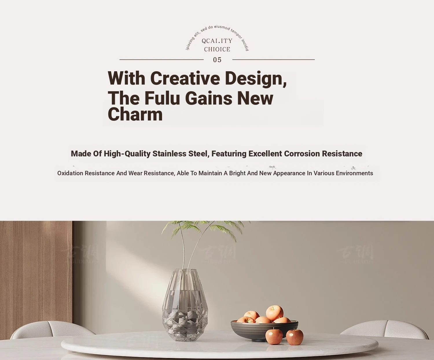 "Jasper white marble" gray titanium 304 stainless steel frame/with turntable