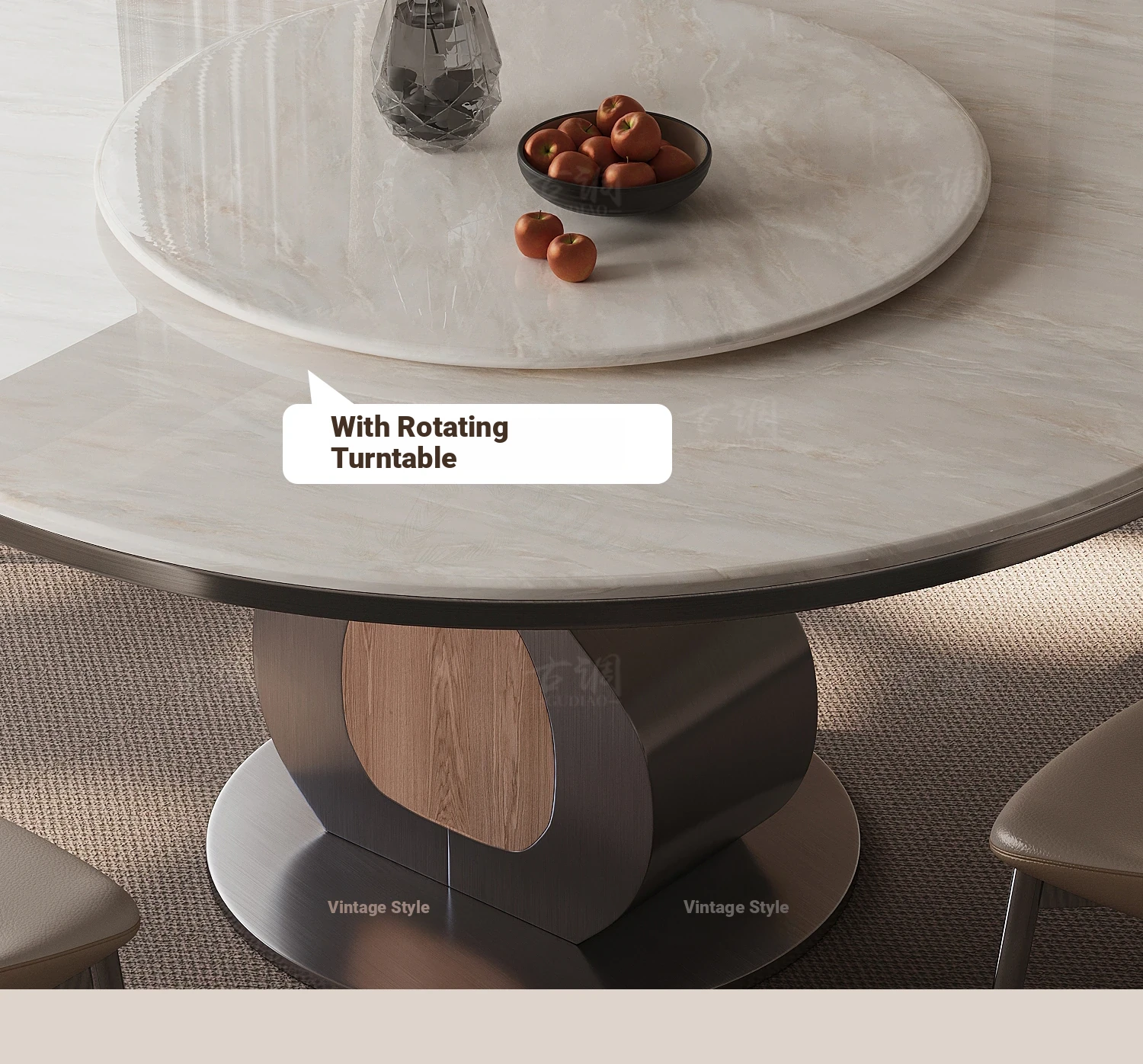 "Jasper White Marble" Grey Titanium 304 Stainless Steel Frame/Gwen Chair * 4/with Turntable