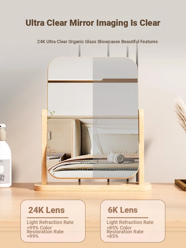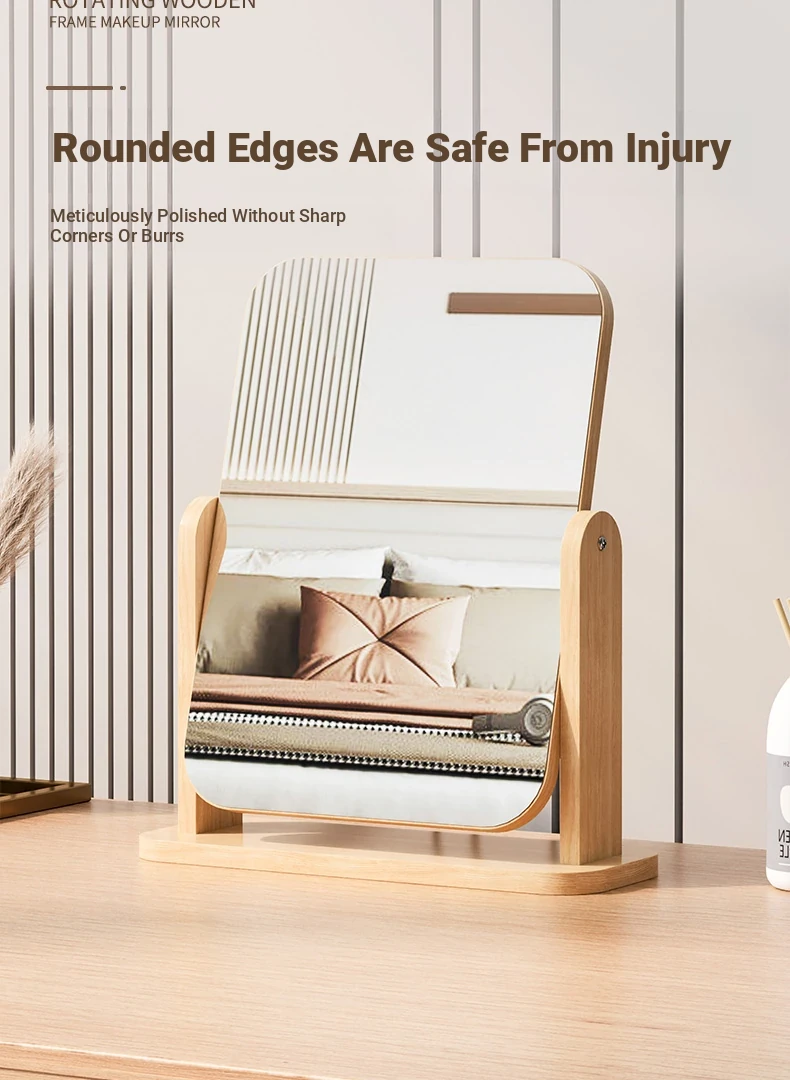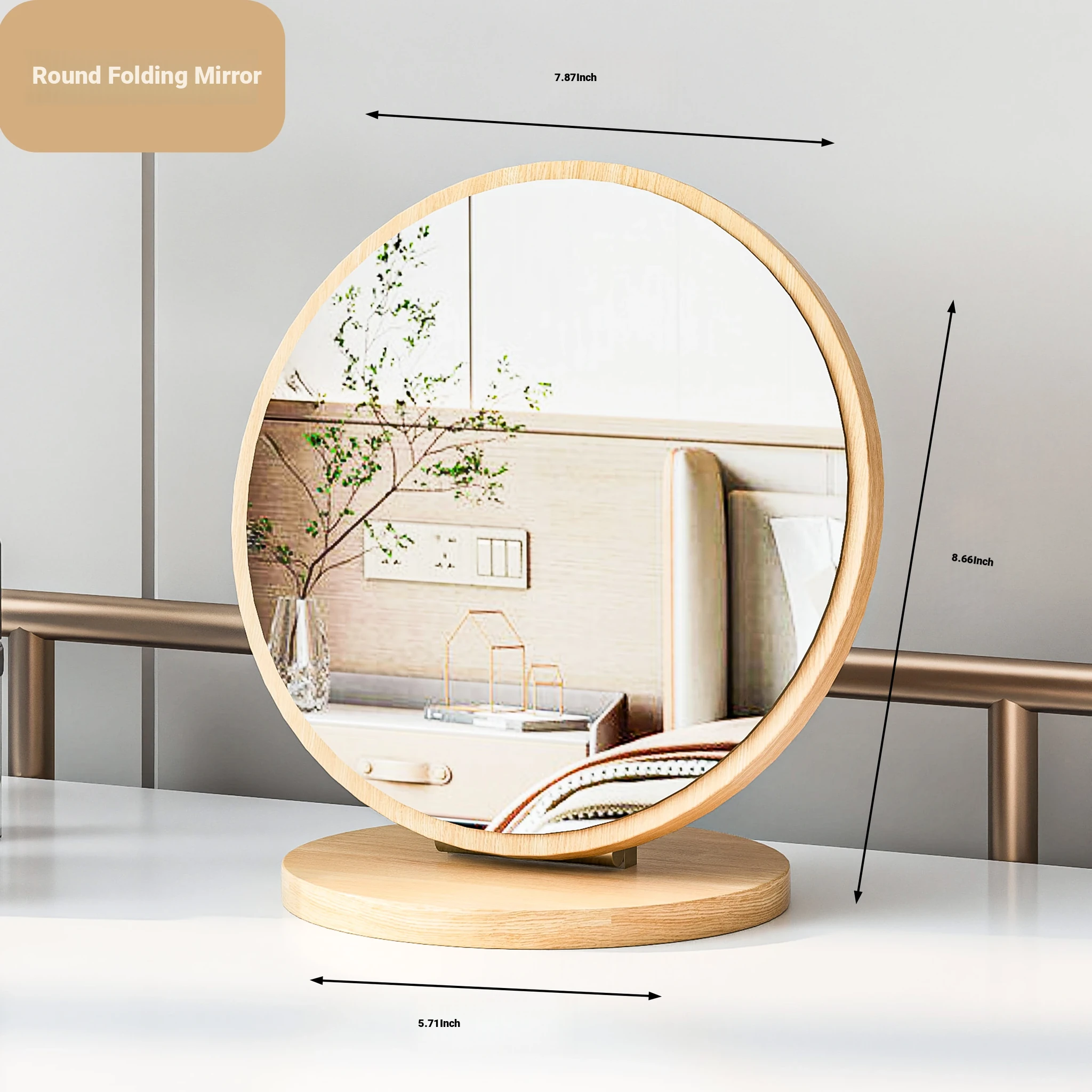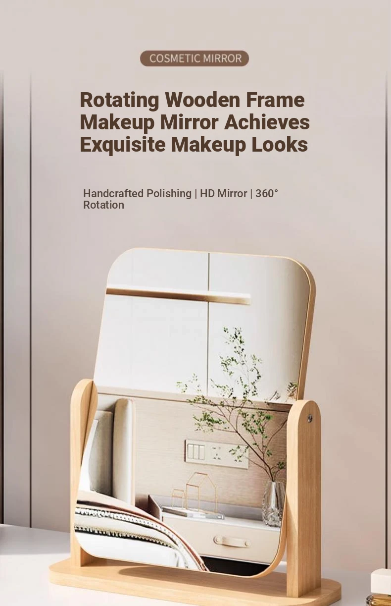 Elegant Wooden Element Rotating Vanity Mirror - Minimalist Design for Home, Dorms, and On-the-Go Touch-Ups, Perfect for Students and Makeup Lovers