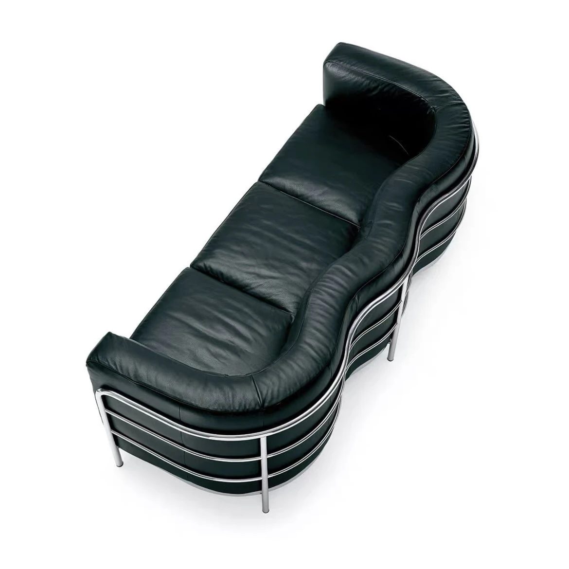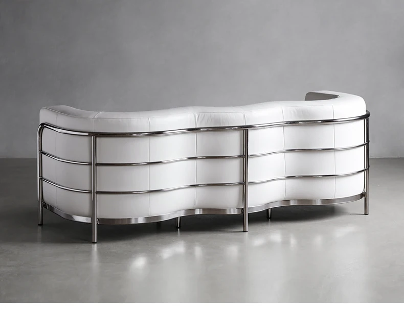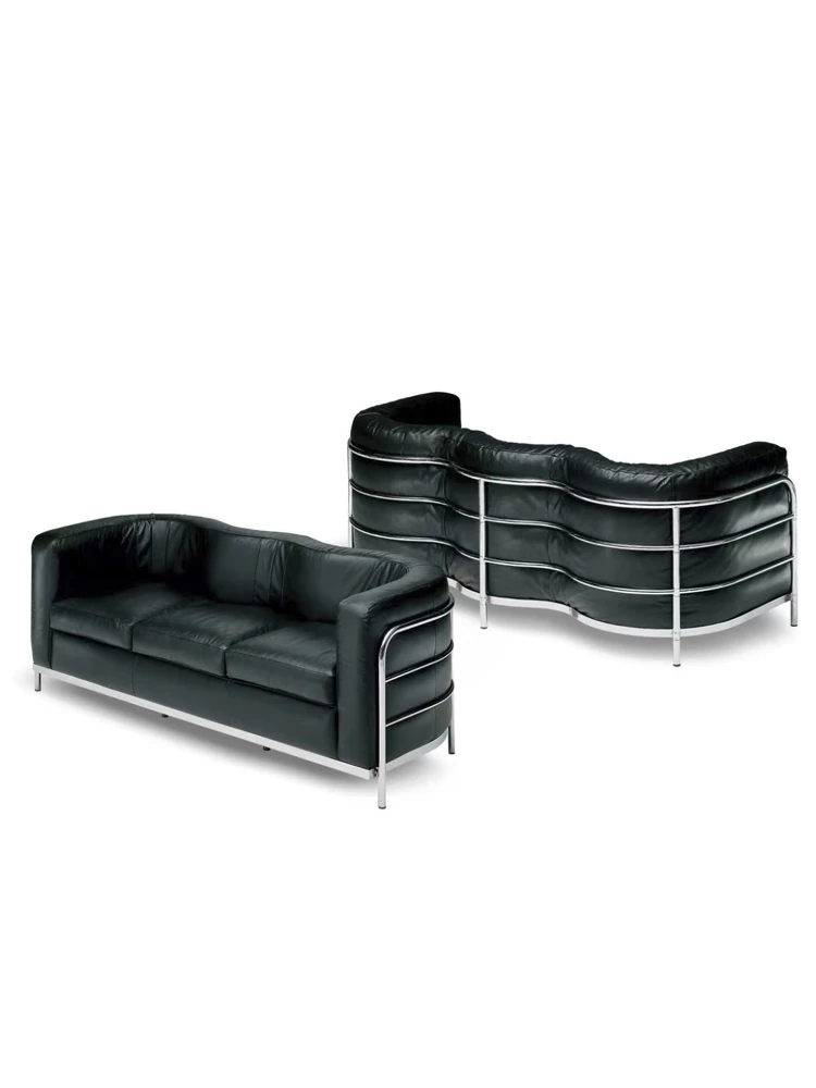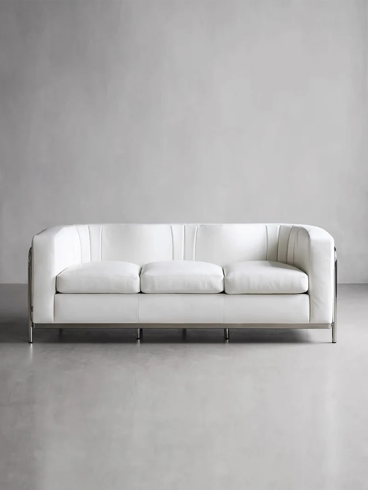 Italian S-Shape Genuine Leather Sofa for Small Living Rooms - Stylish Minimalist Design, Perfect for Three People, Ideal for Hotels and Commercial Spaces