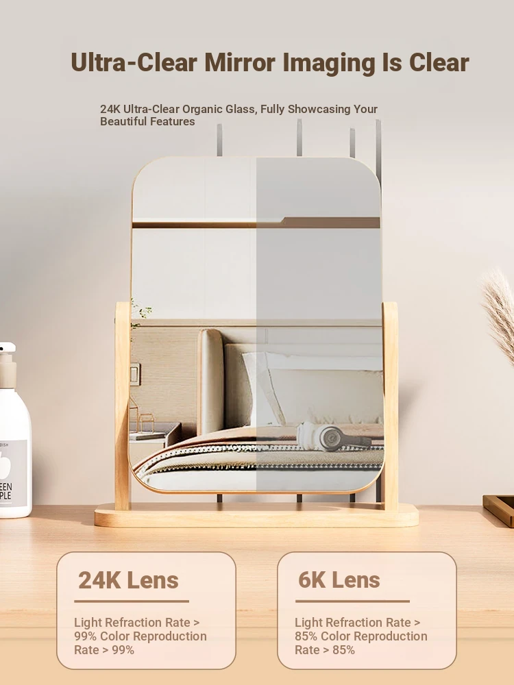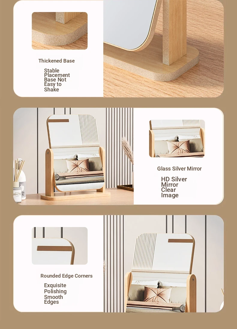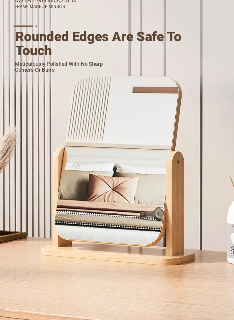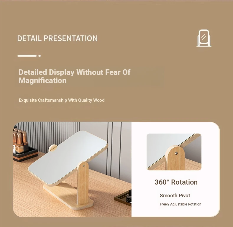 Minimalist Wooden Makeup Mirror - Rotating Desktop Mirror for Home, Students, and Dorms - Perfect for On-the-Go Touch-Ups and Daily Grooming