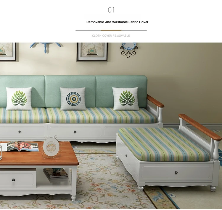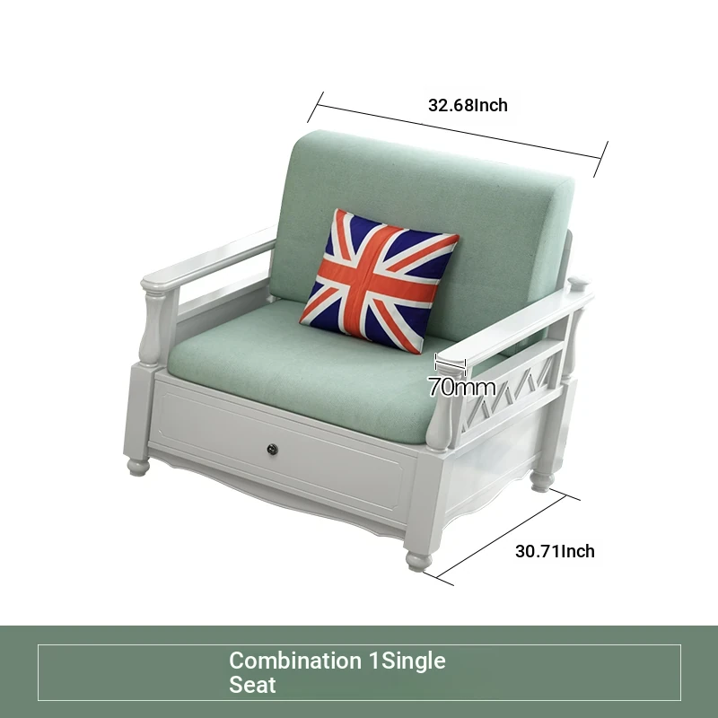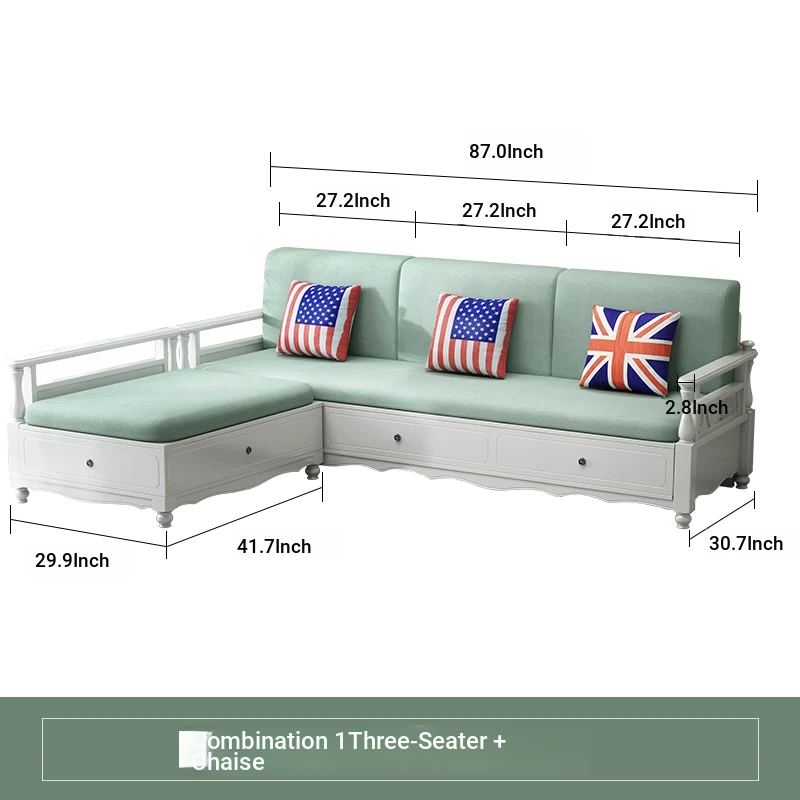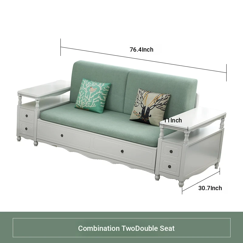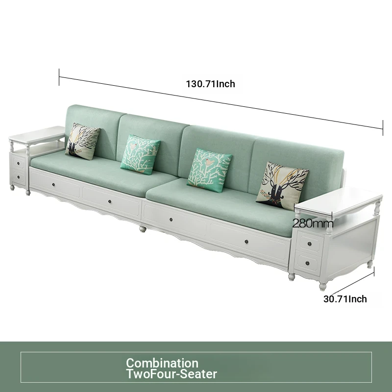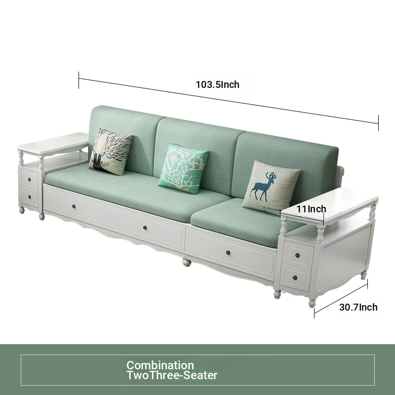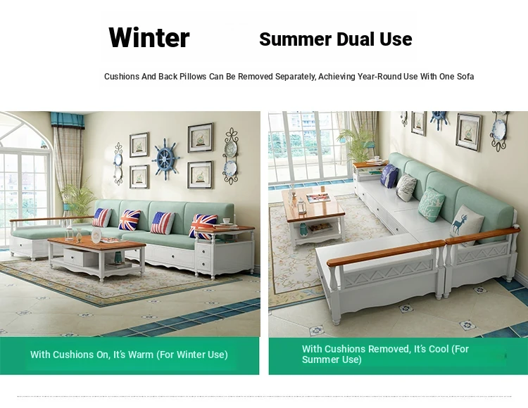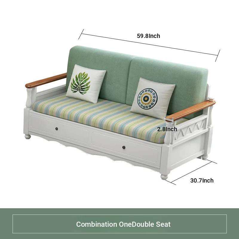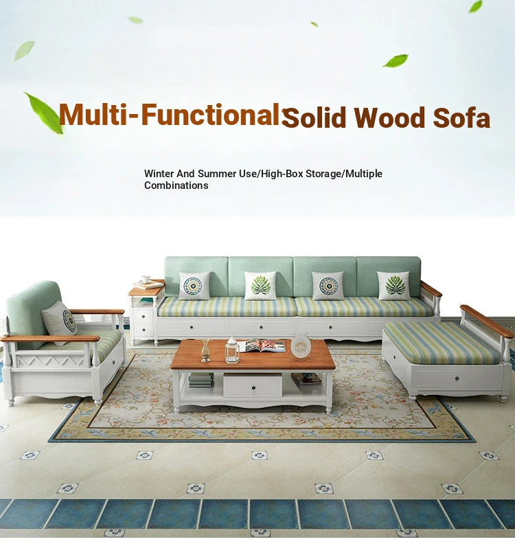 Modern Minimalist American Rustic Solid Wood Sofa Set - White, Versatile for Summer and Winter, Perfect for Small Living Rooms with Storage Solutions
