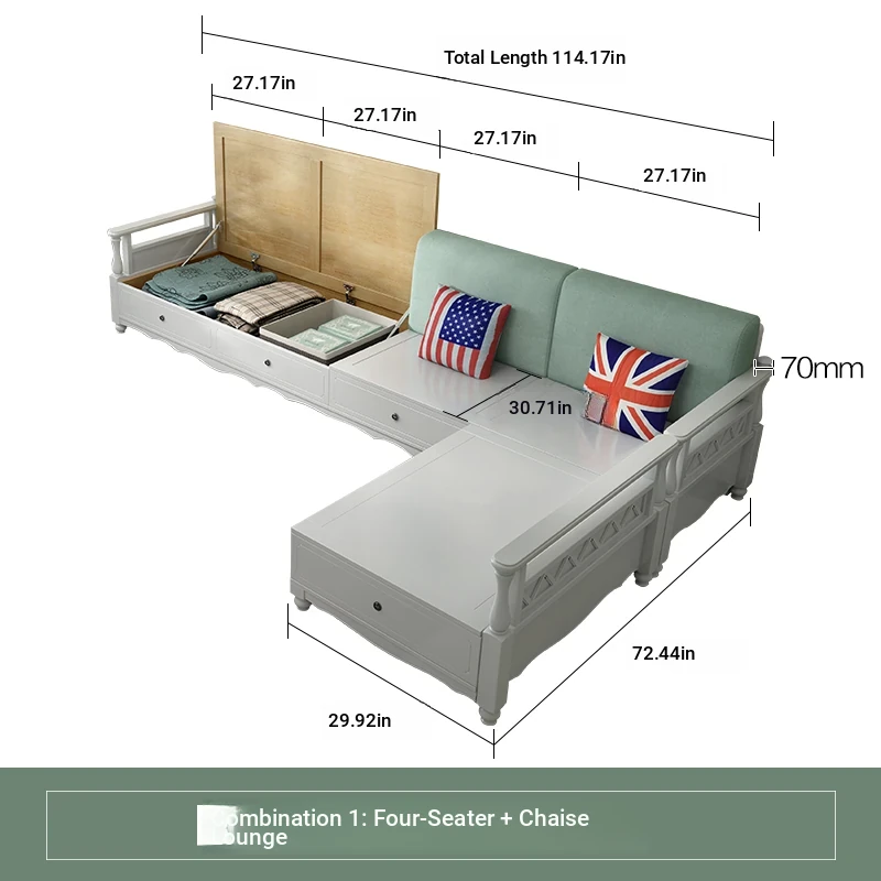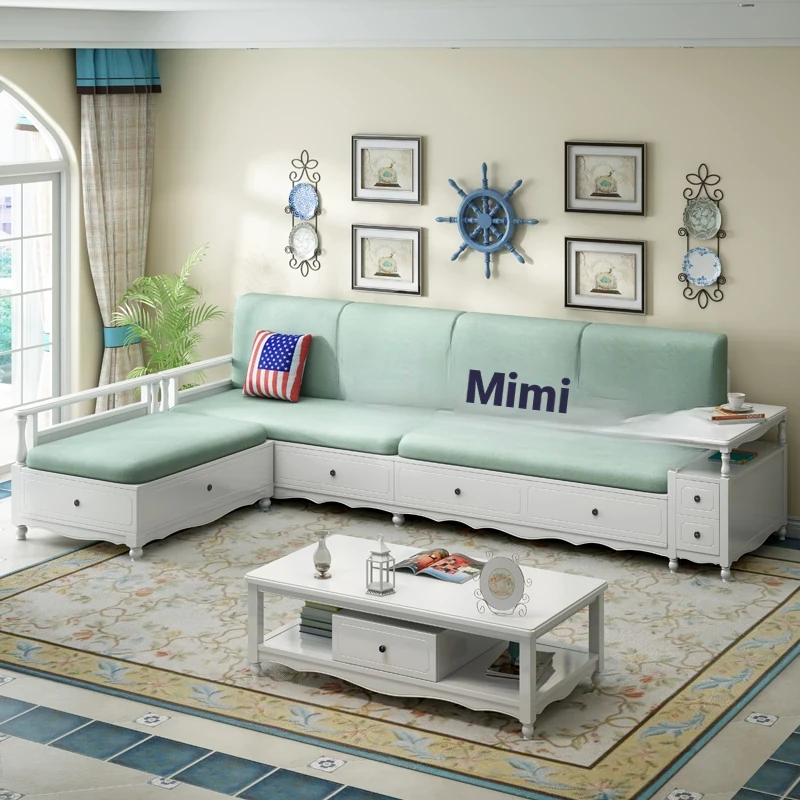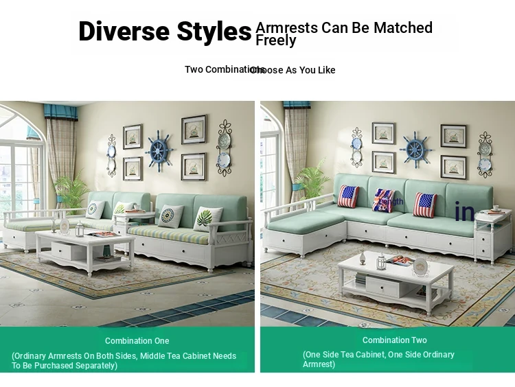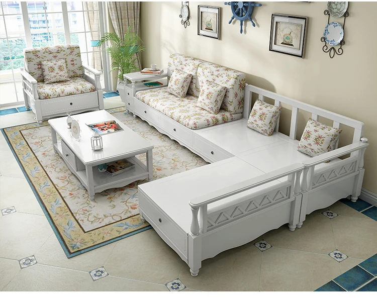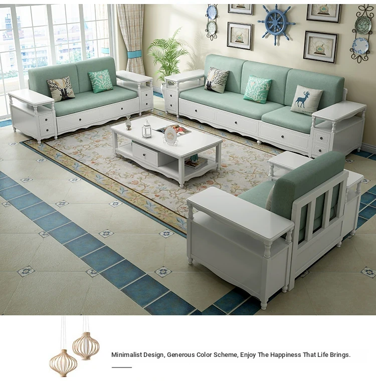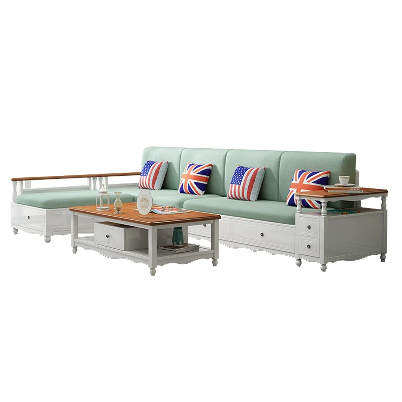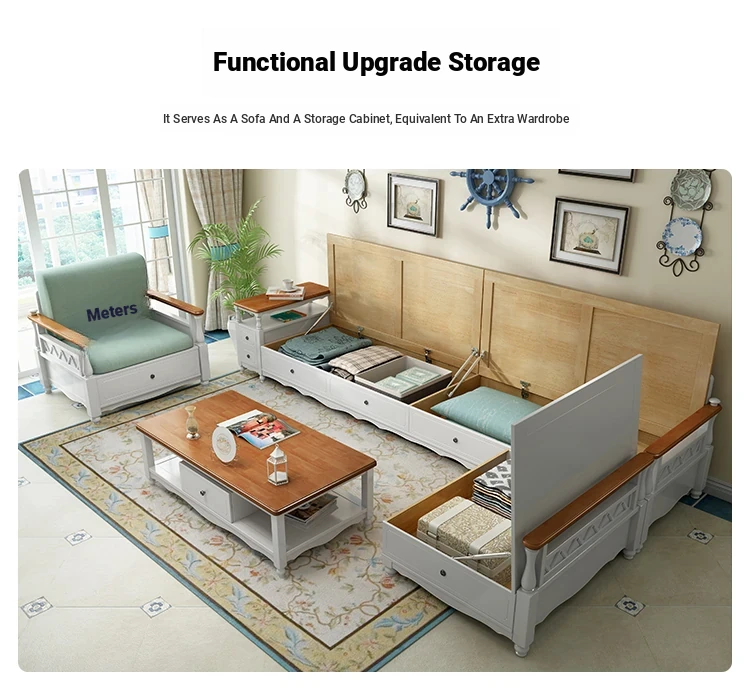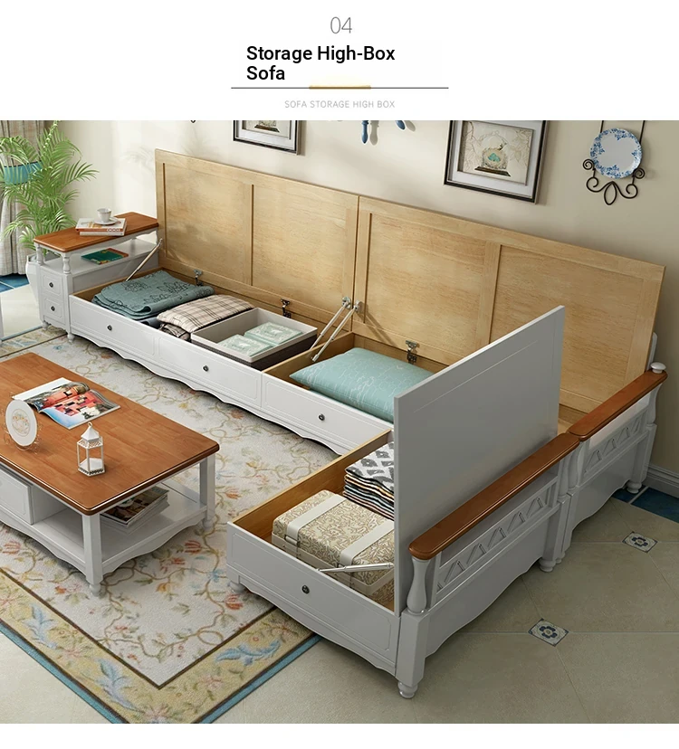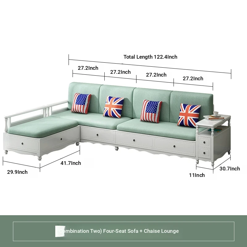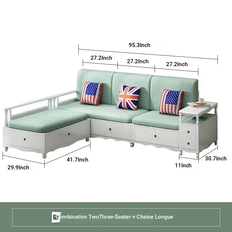 Modern Minimalist American Rustic Solid Wood Sofa Set - White, Versatile for Summer and Winter, Perfect for Small Living Rooms with Storage Solutions