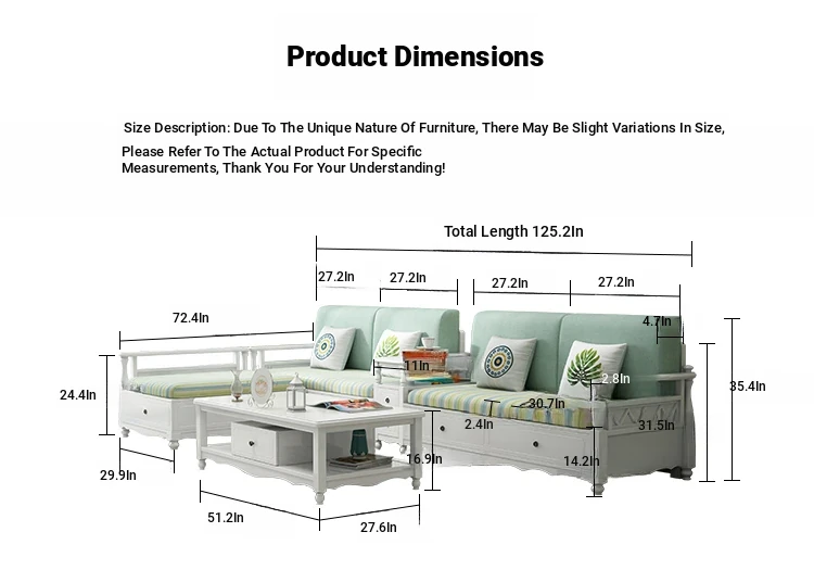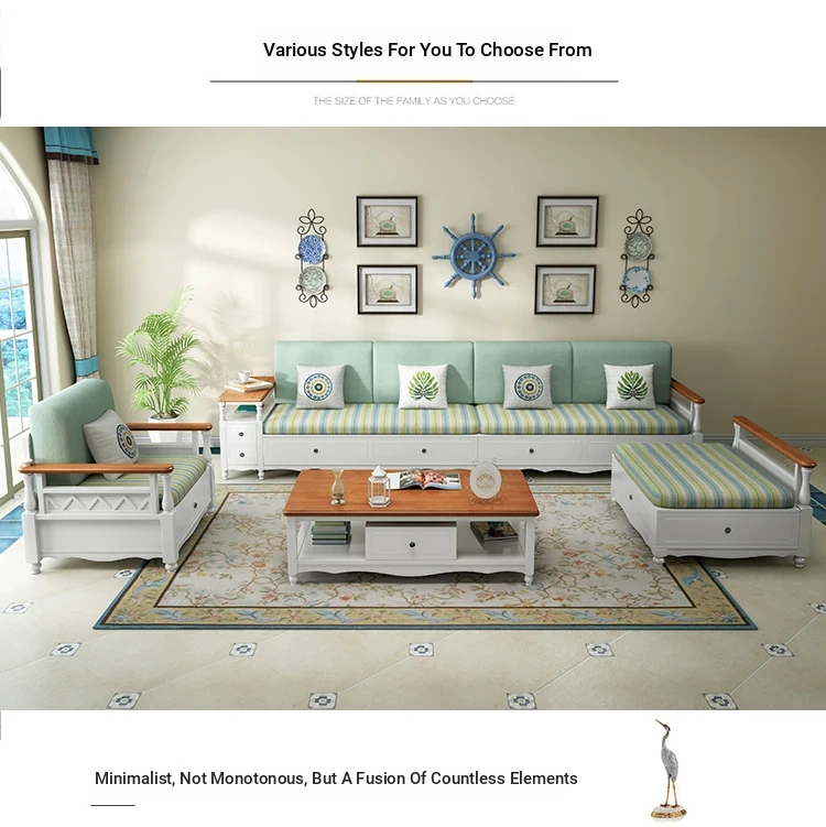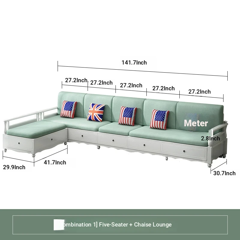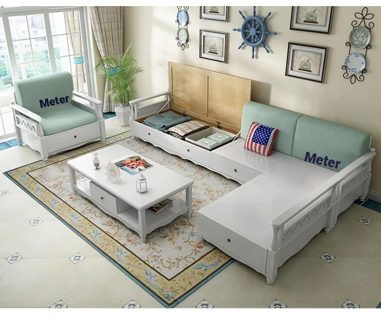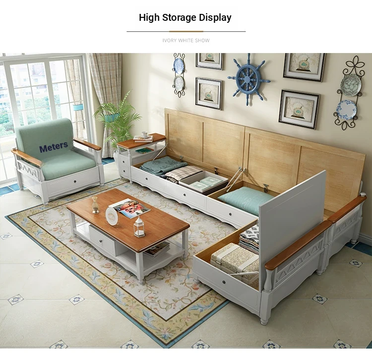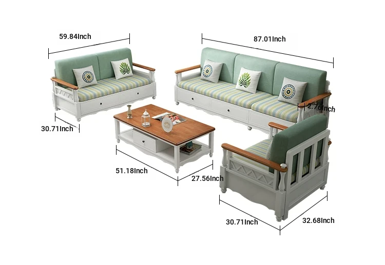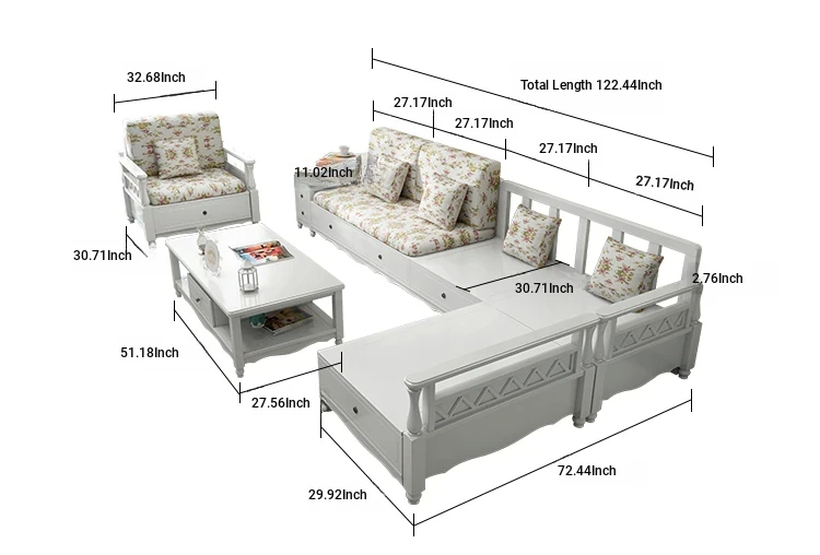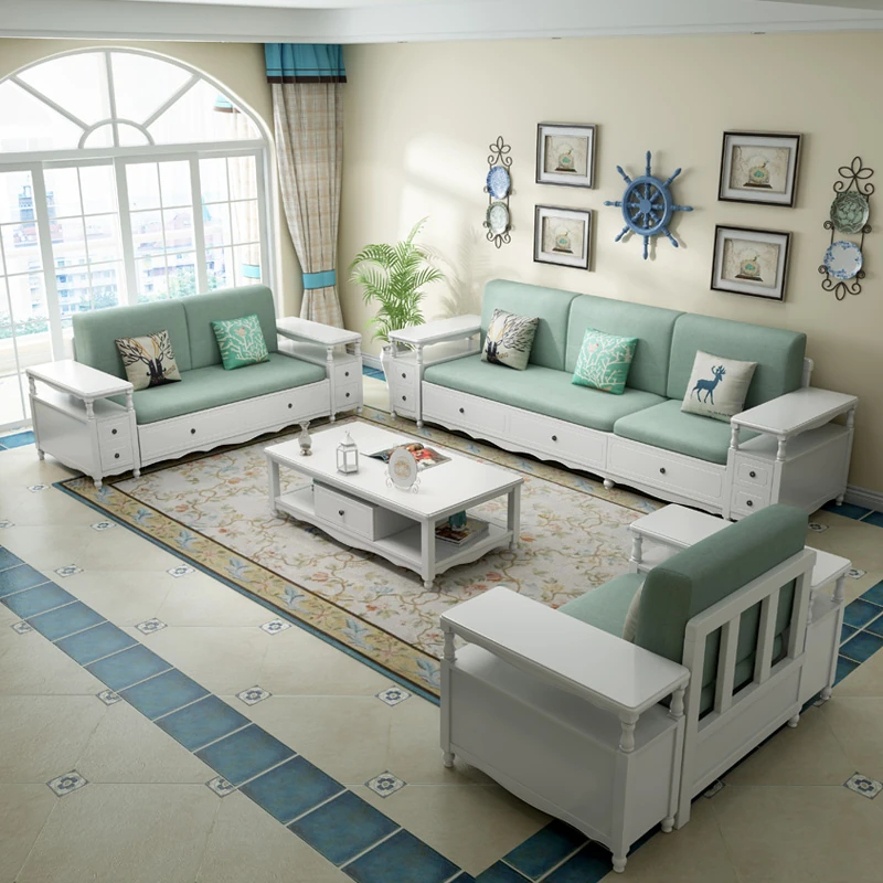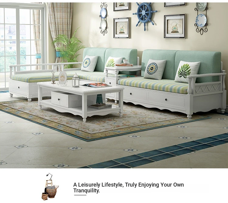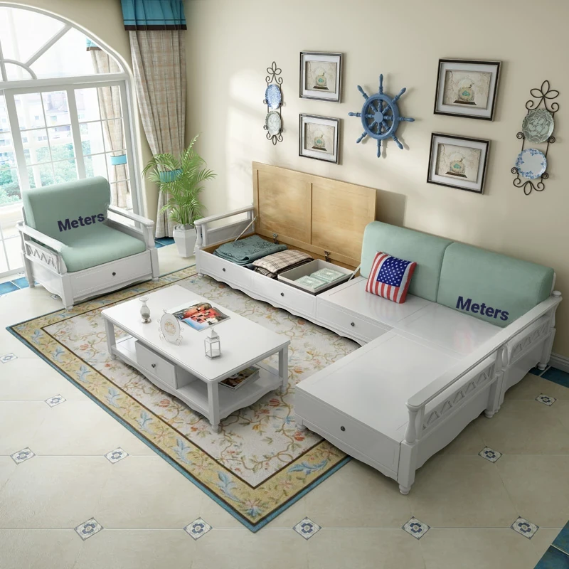 Modern Minimalist American Rustic Solid Wood Sofa Set - White, Versatile for Summer and Winter, Perfect for Small Living Rooms with Storage Solutions