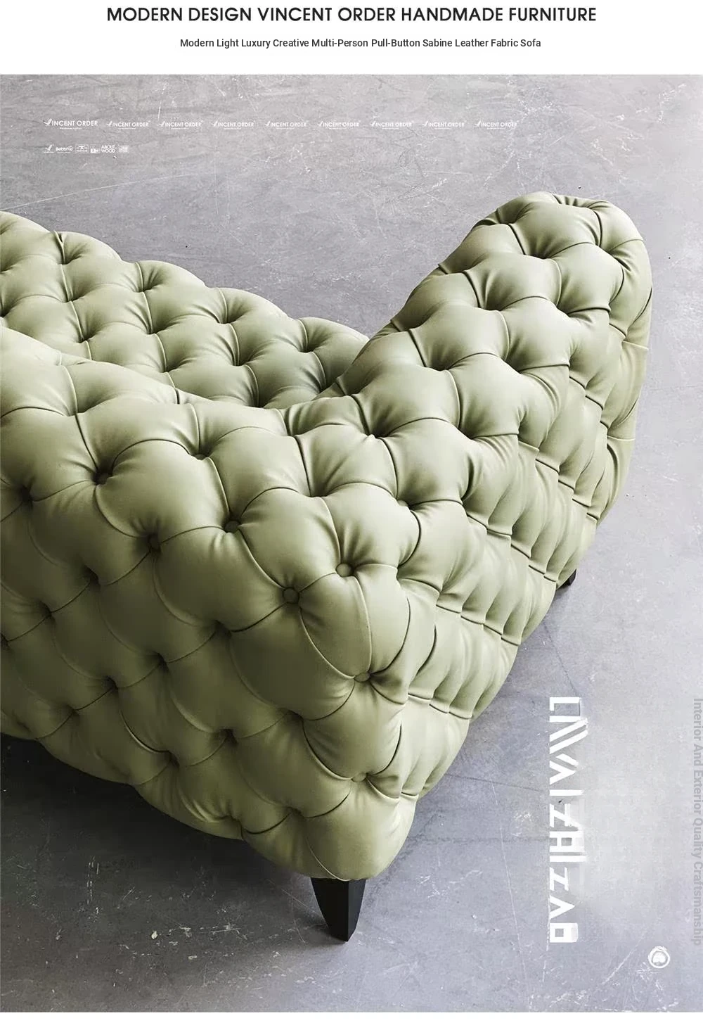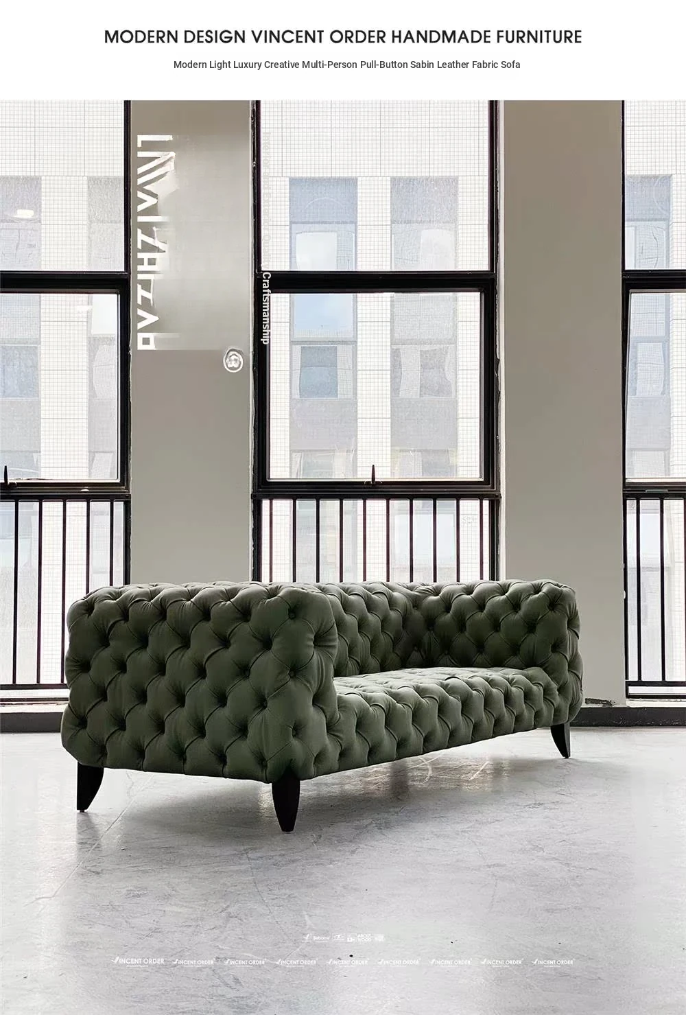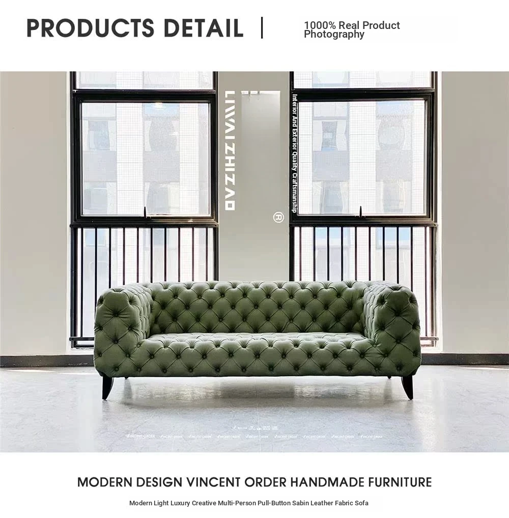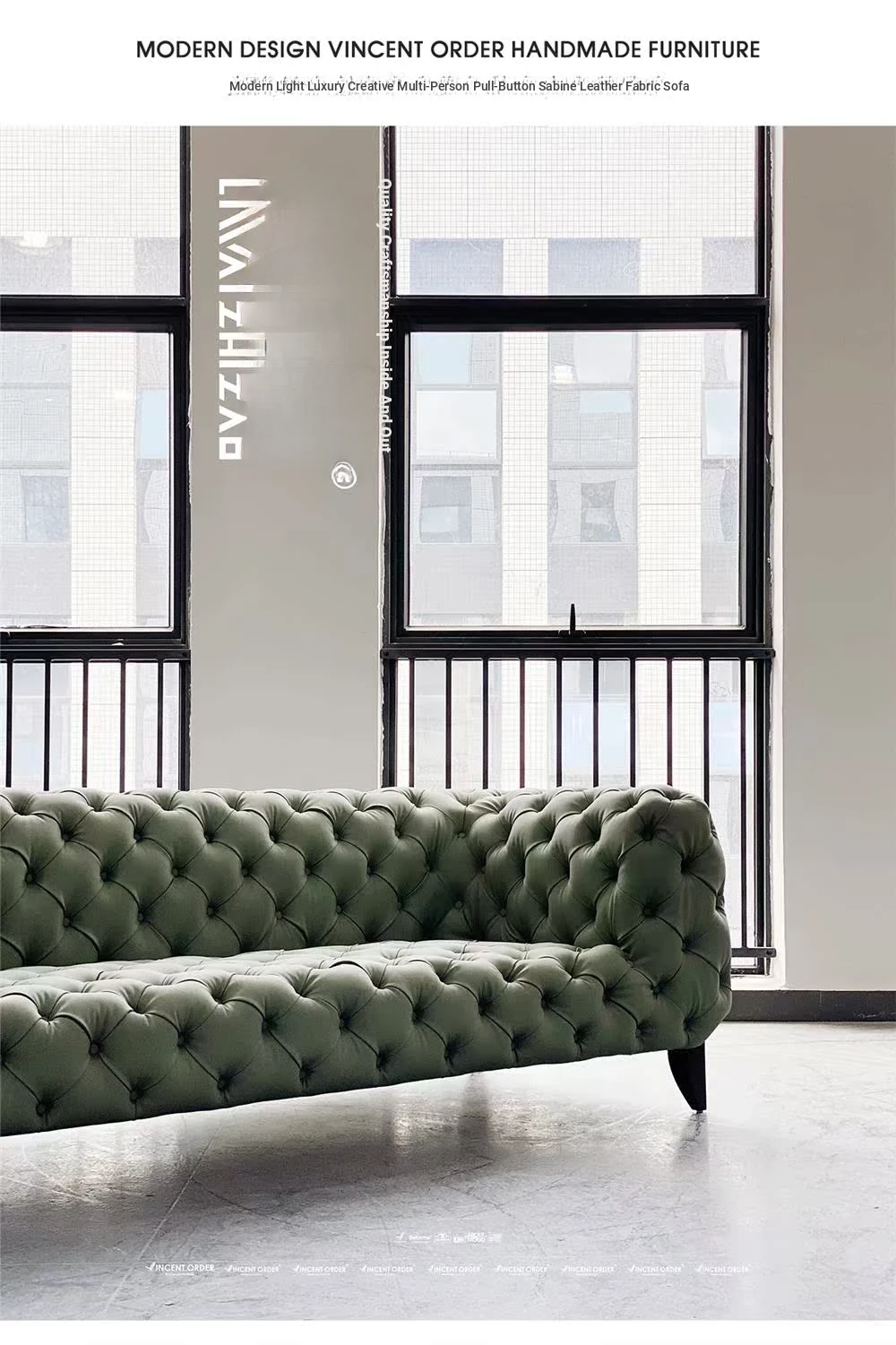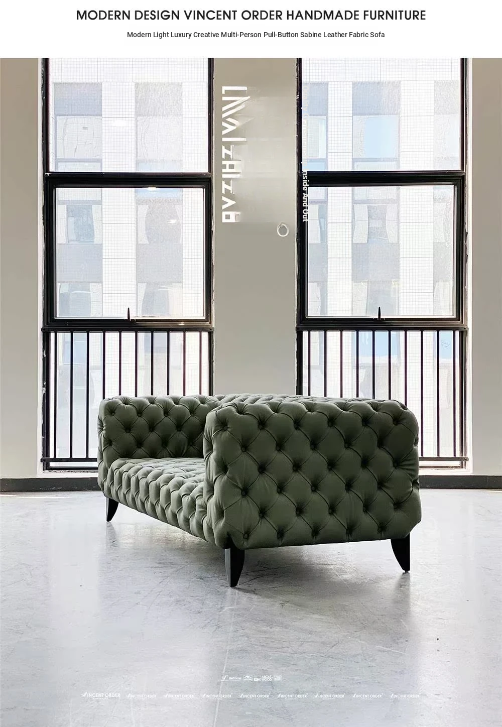 Modern Minimalist Hotel Villa Lobby Sofa - Stylish Multi-Person Pull-Tab Sabine Fabric Couch, New Arrival! Perfect for Contemporary Spaces!