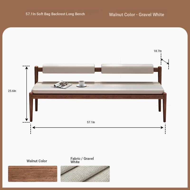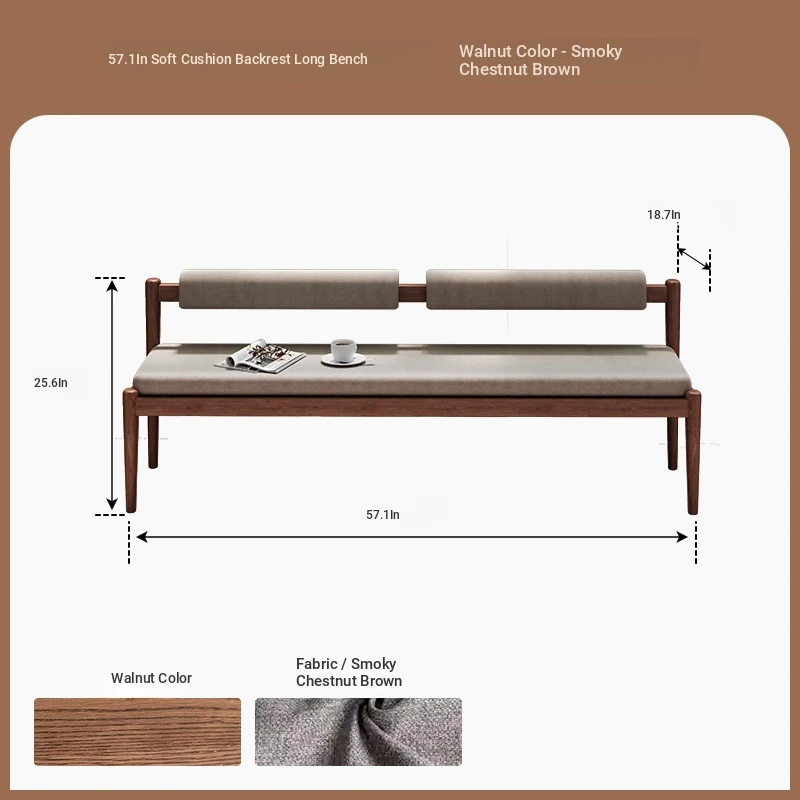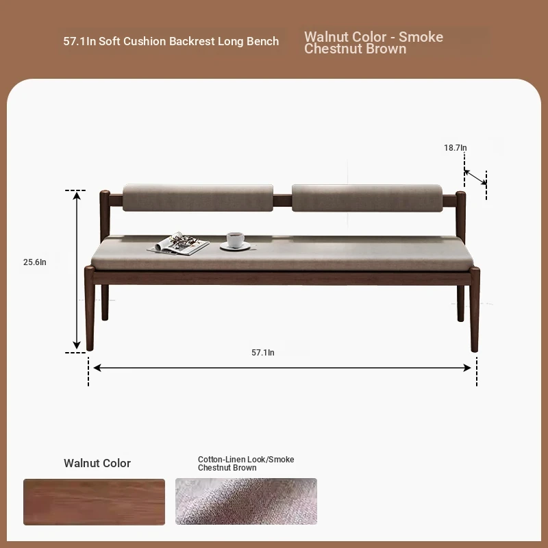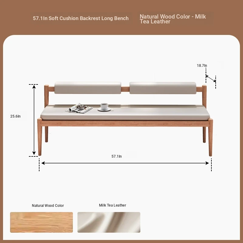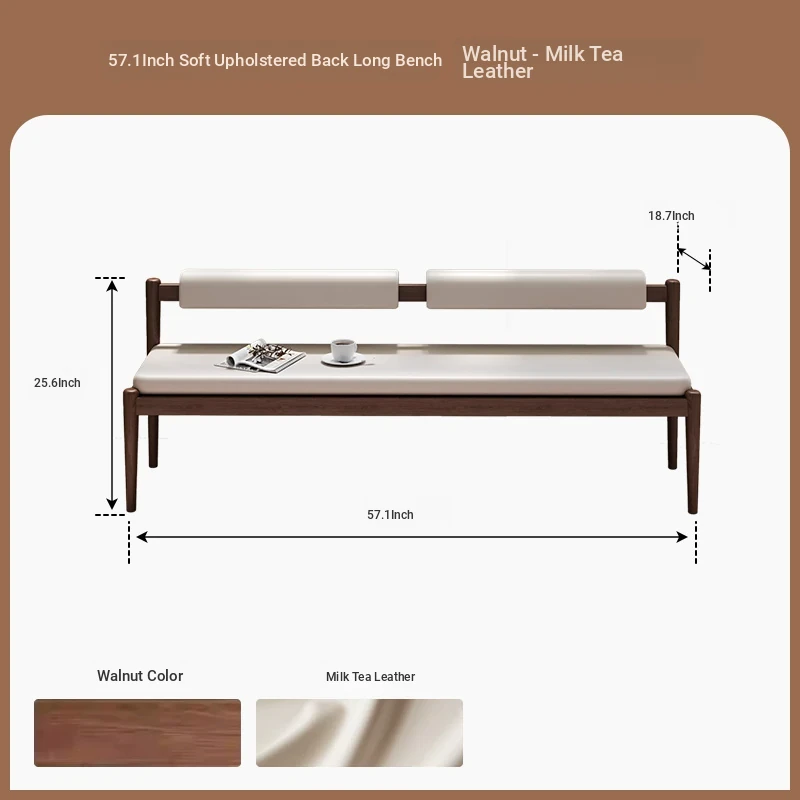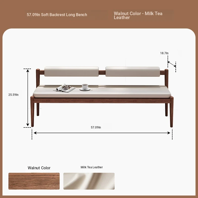 (Black walnut color) 57.09 in bench [organic leather milk tea color]]