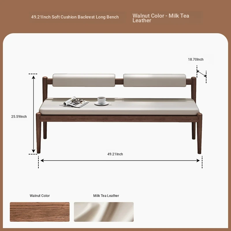 (Black walnut color) 49.21 in bench [organic leather milk tea color]]