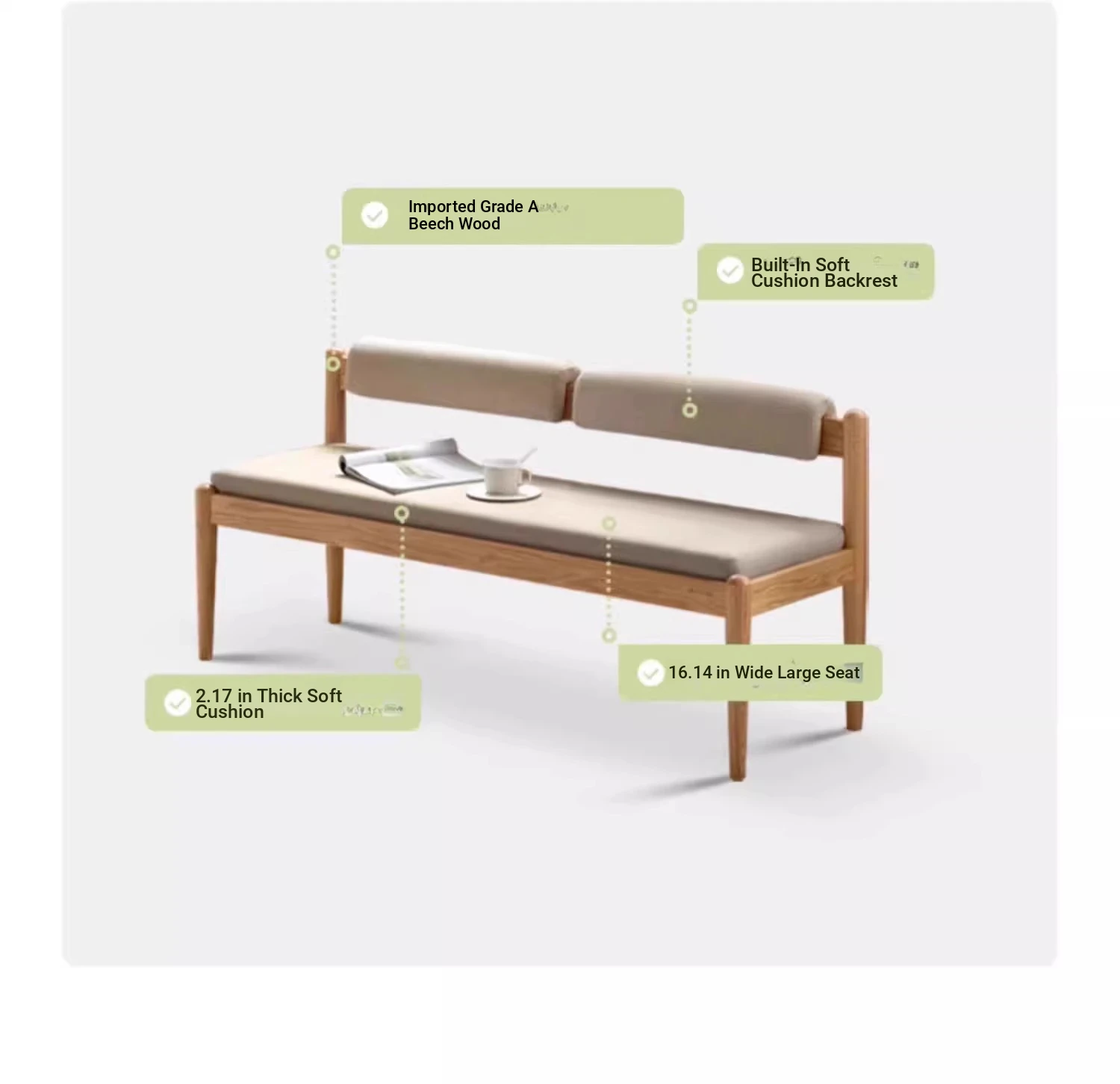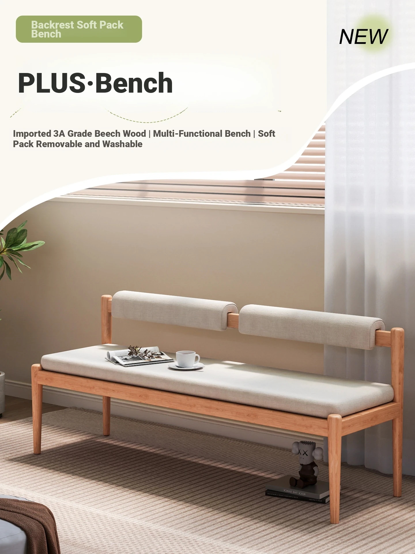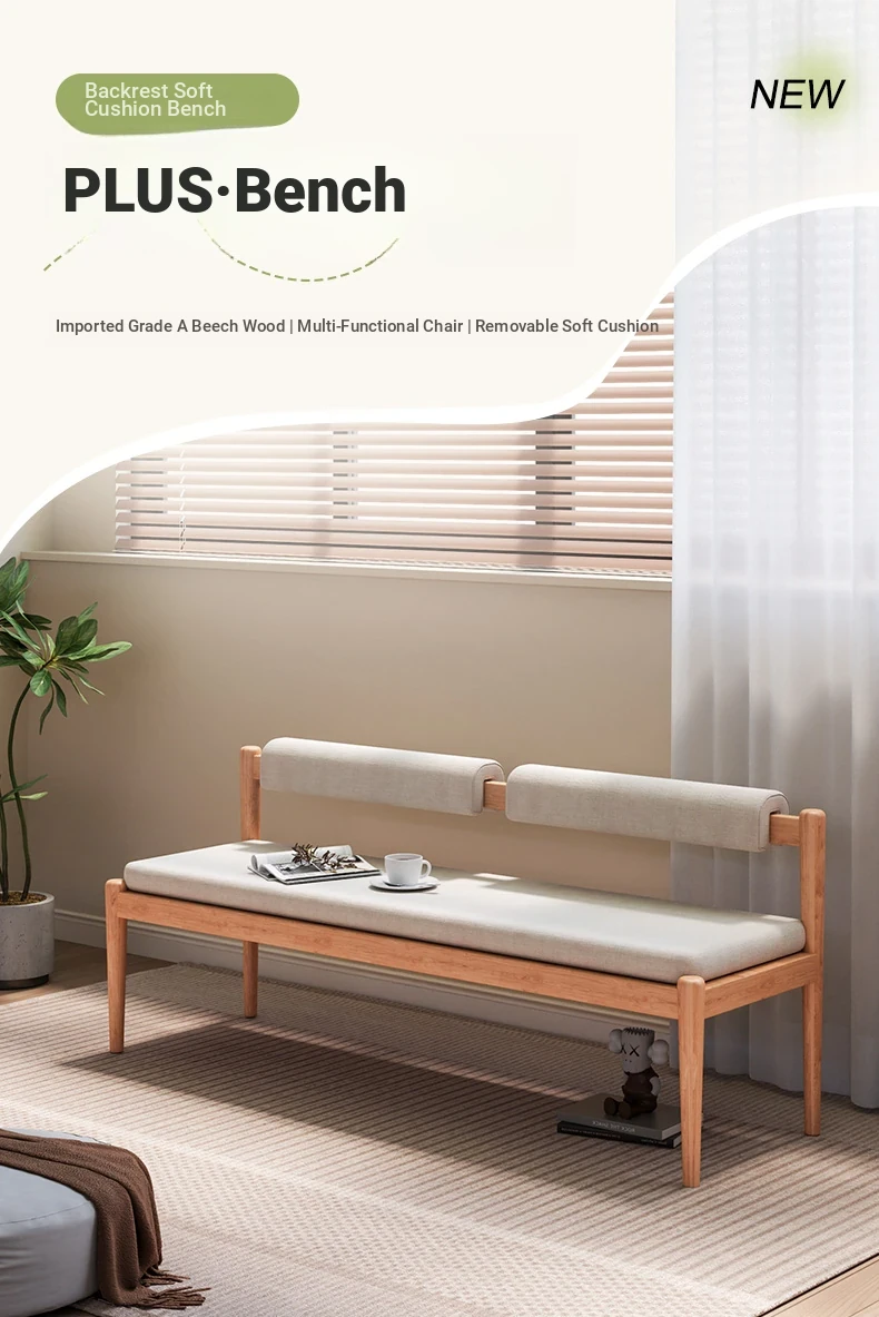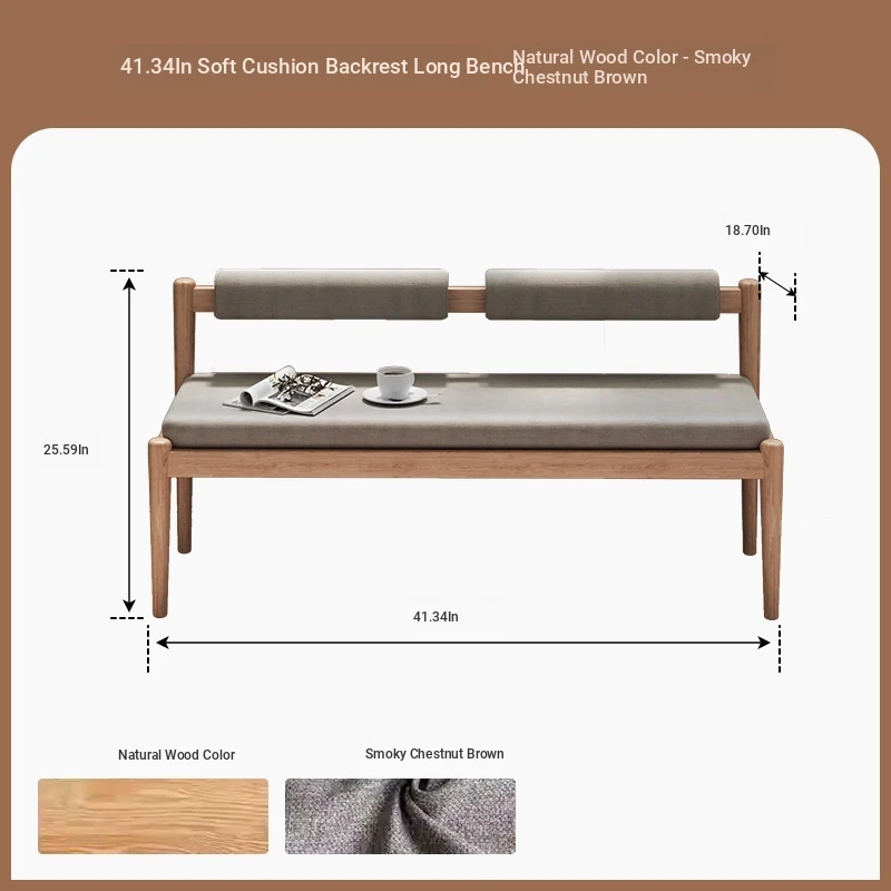 Modern Minimalist Solid Wood Shoe Bench with Backrest - Versatile Entryway Seating, Sofa Side or Dining Chair with Soft Cushion - Perfect for Home Use