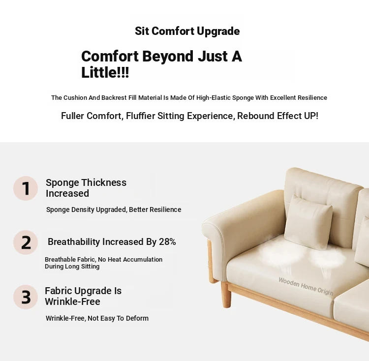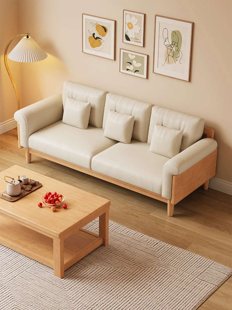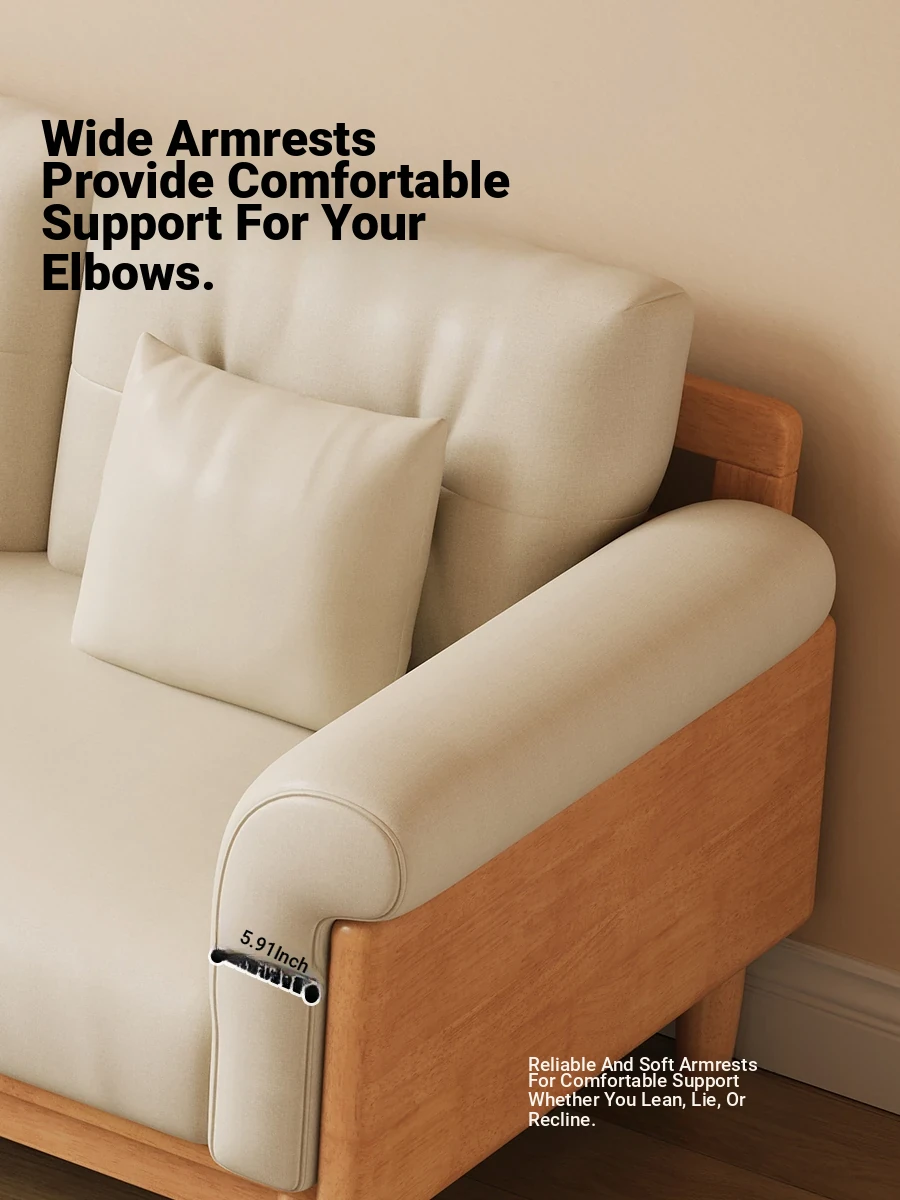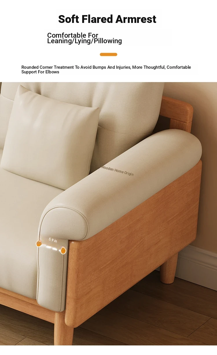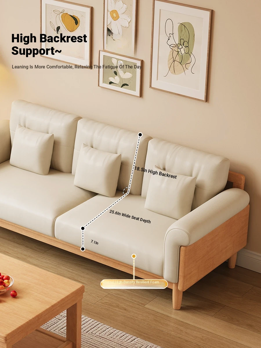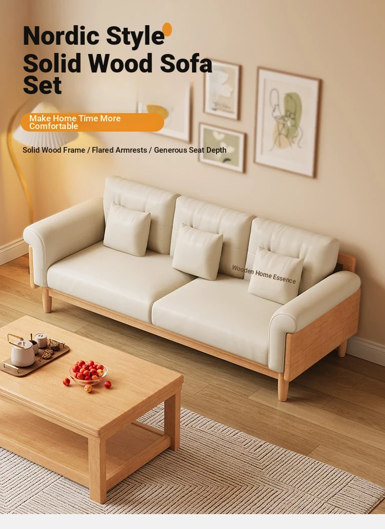 Nordic Solid Wood Sofa for Small Spaces - Stylish 3-Seater Cloud Sofa with Removable Washable Covers - Minimalist Natural Wood Furniture for Modern Living Rooms