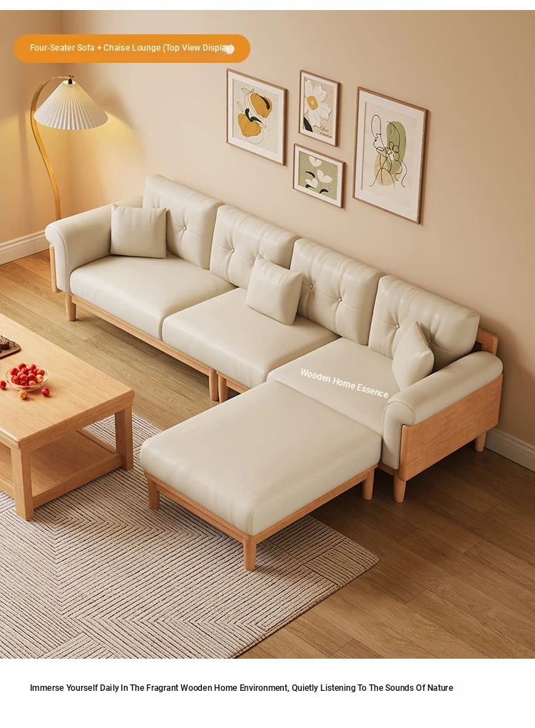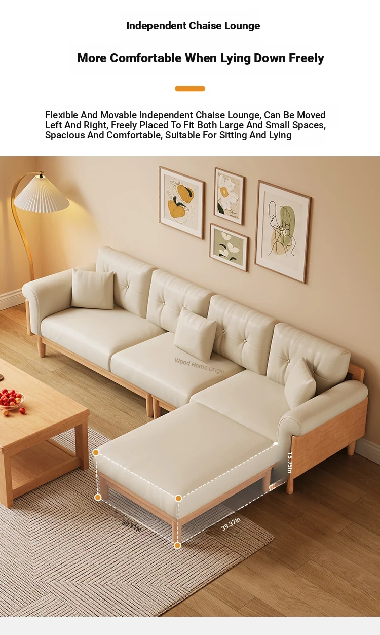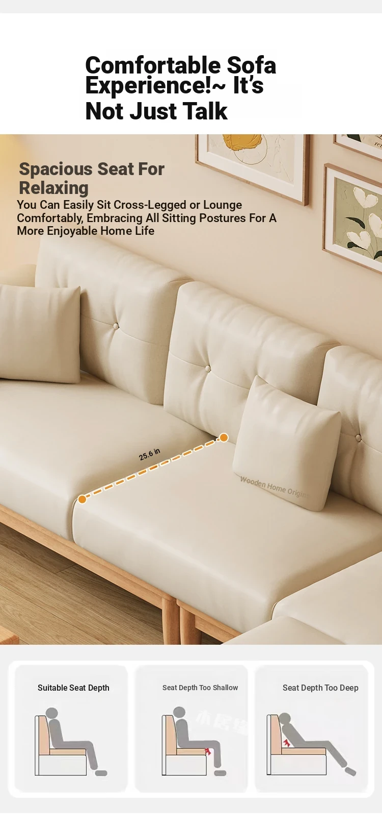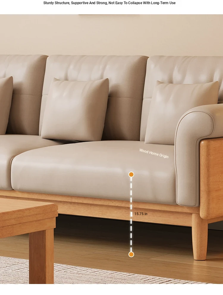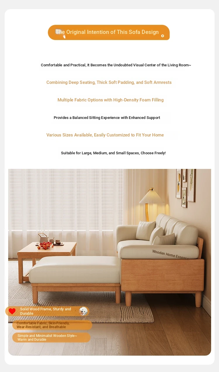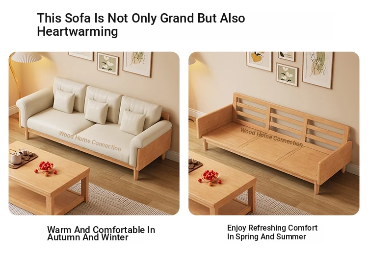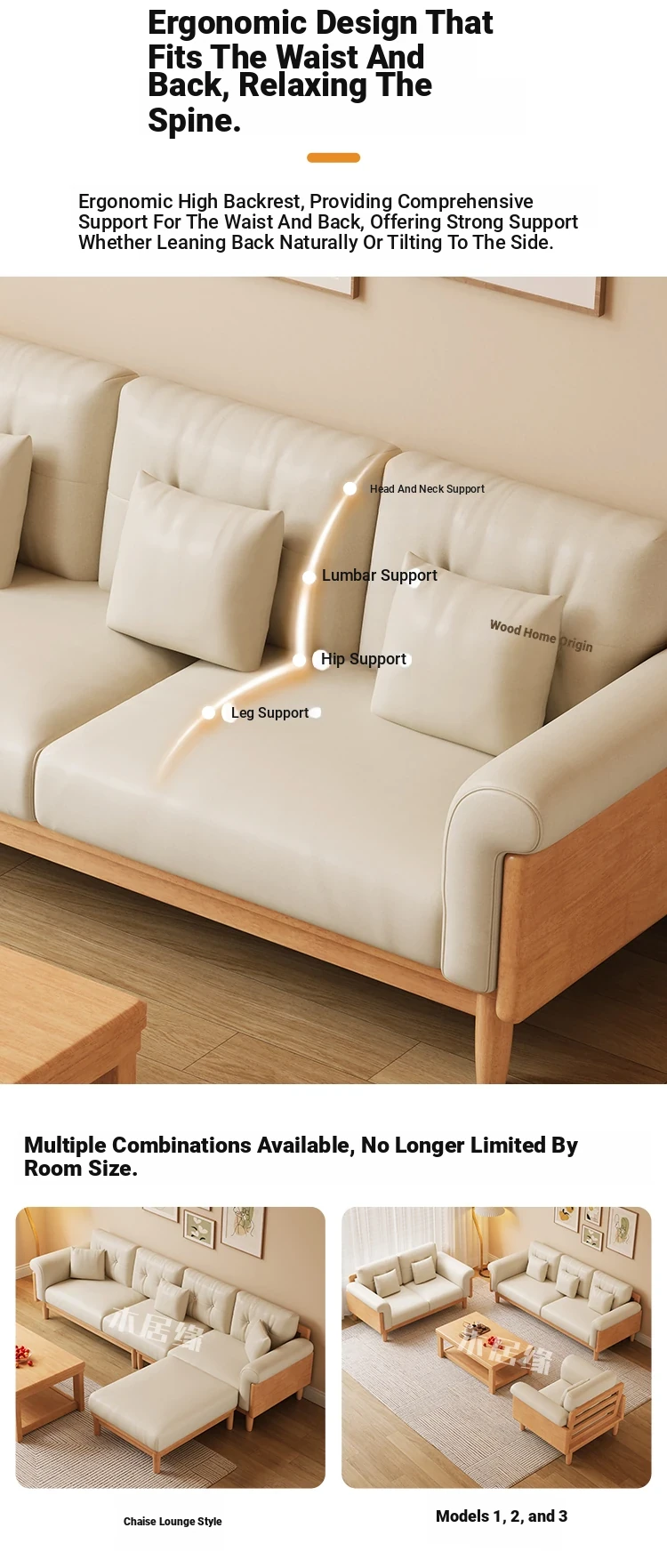 Nordic Solid Wood Sofa for Small Spaces - Stylish 3-Seater Cloud Sofa with Removable Washable Covers - Minimalist Natural Wood Furniture for Modern Living Rooms