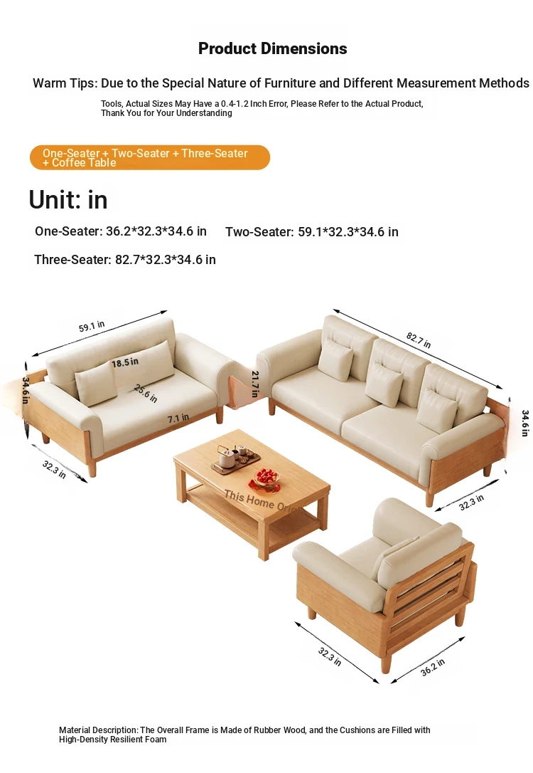 [Walnut color] 1+2+3 combination sofa + long coffee table