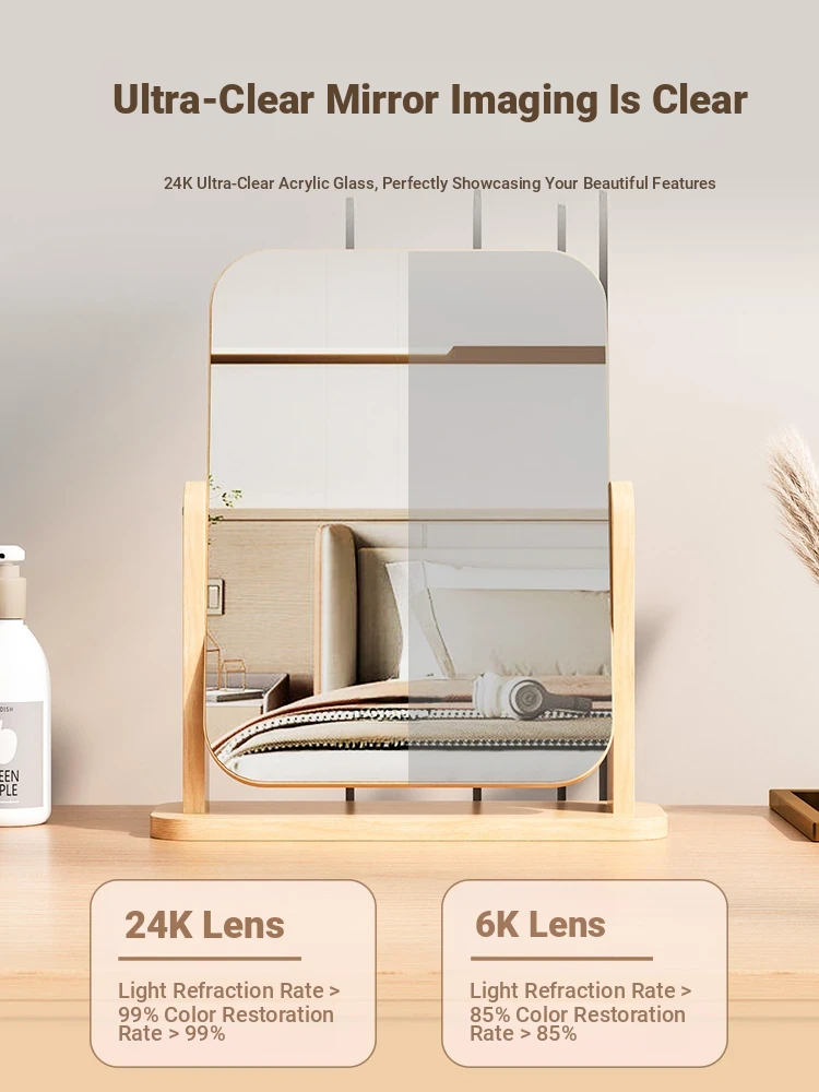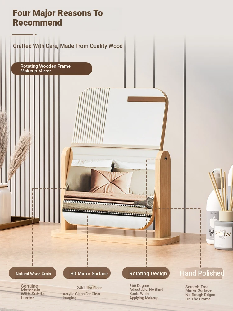 Rotatable Wooden Element Makeup Mirror - Minimalist Desktop Vanity Mirror for Home and Dorm Use, Perfect for Students and On-the-Go Touch-Ups