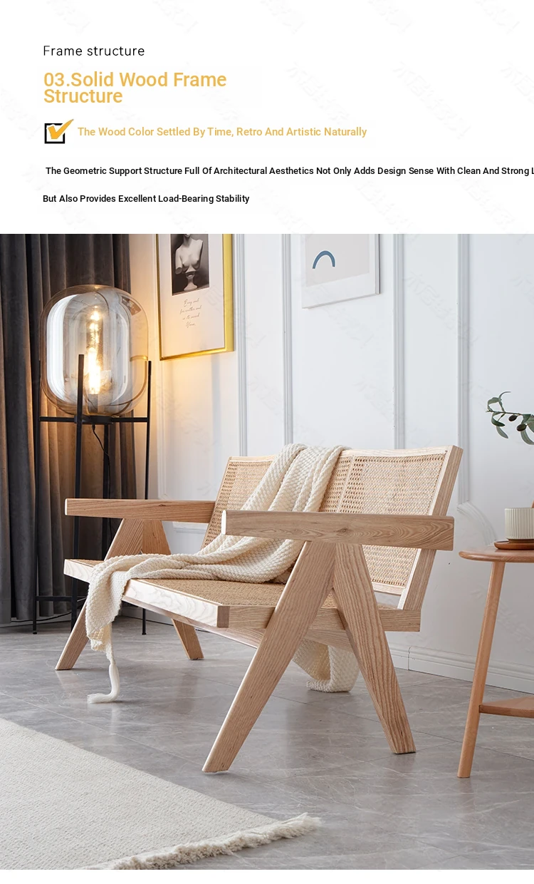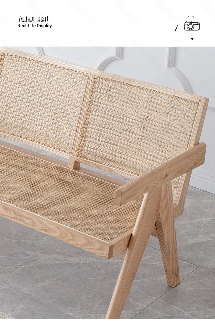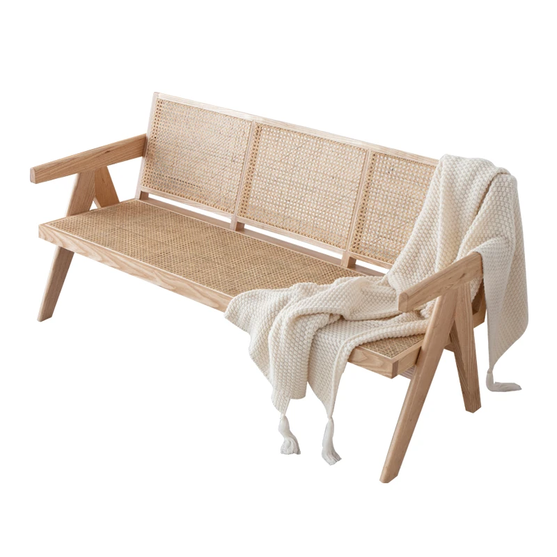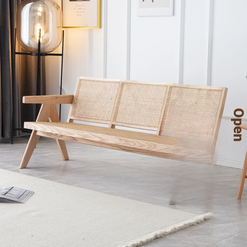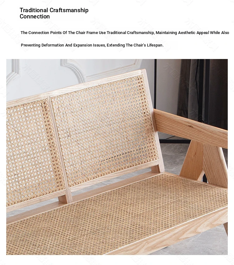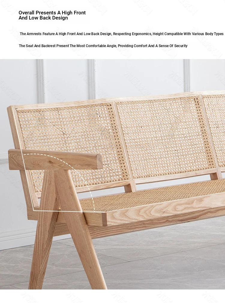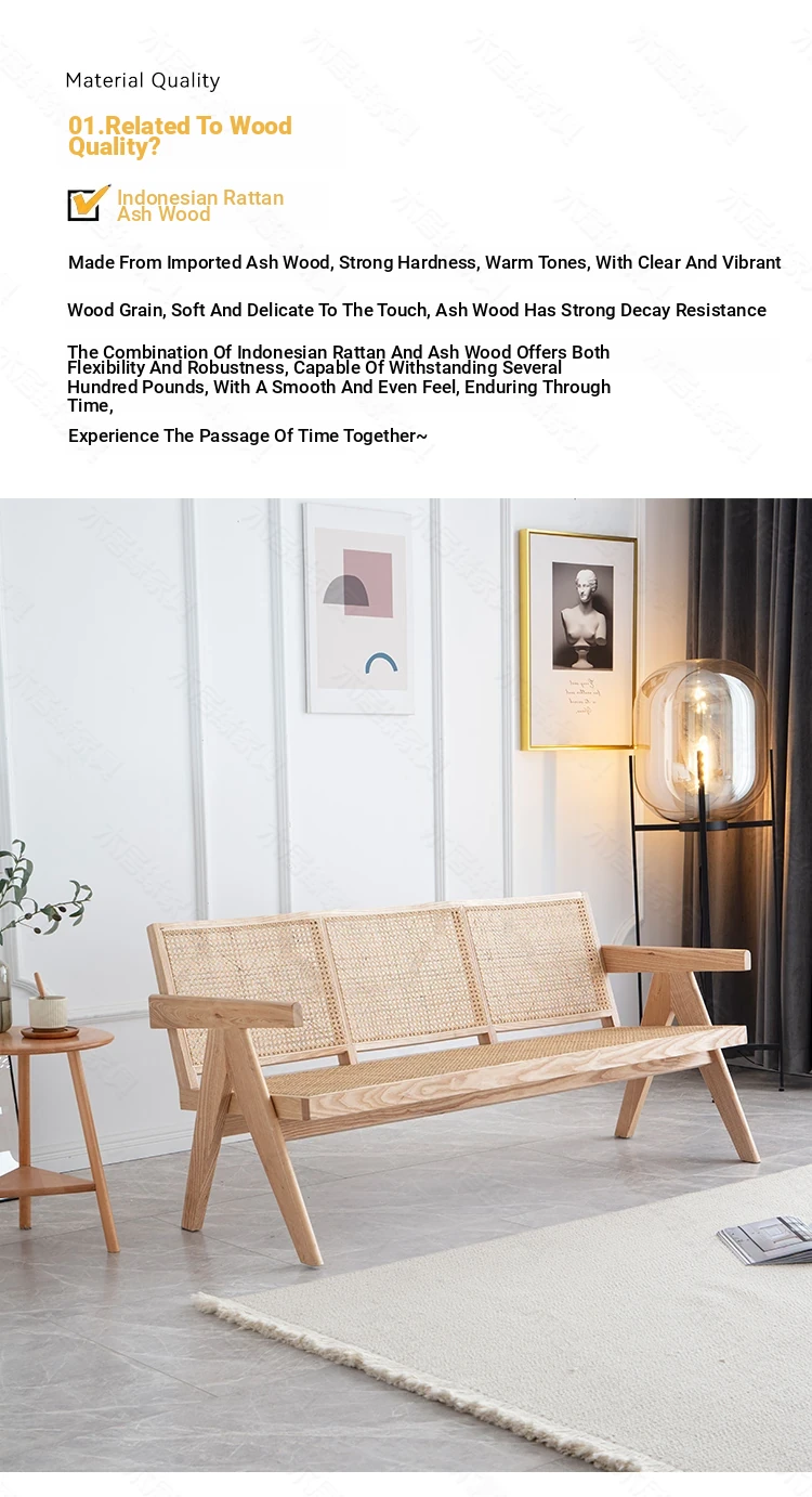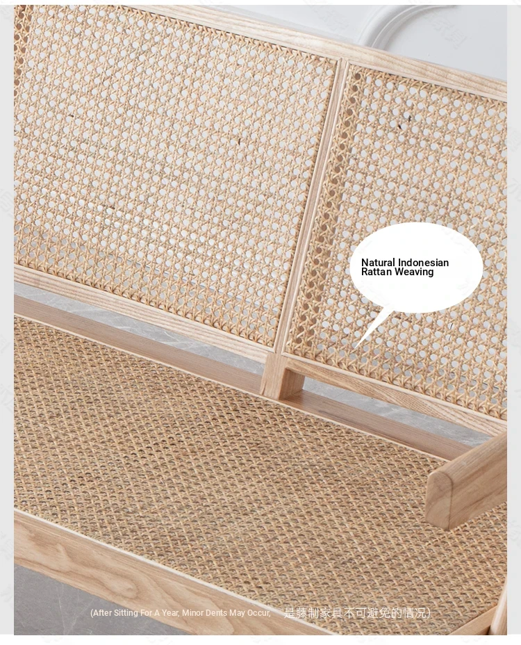 Scandinavian Rattan-Woven Solid Wood Sofa Chair - Perfect for Small Spaces, 3-Seater, Versatile Ash Wood Sofa for Year-Round Comfort in Homes and Guesthouses