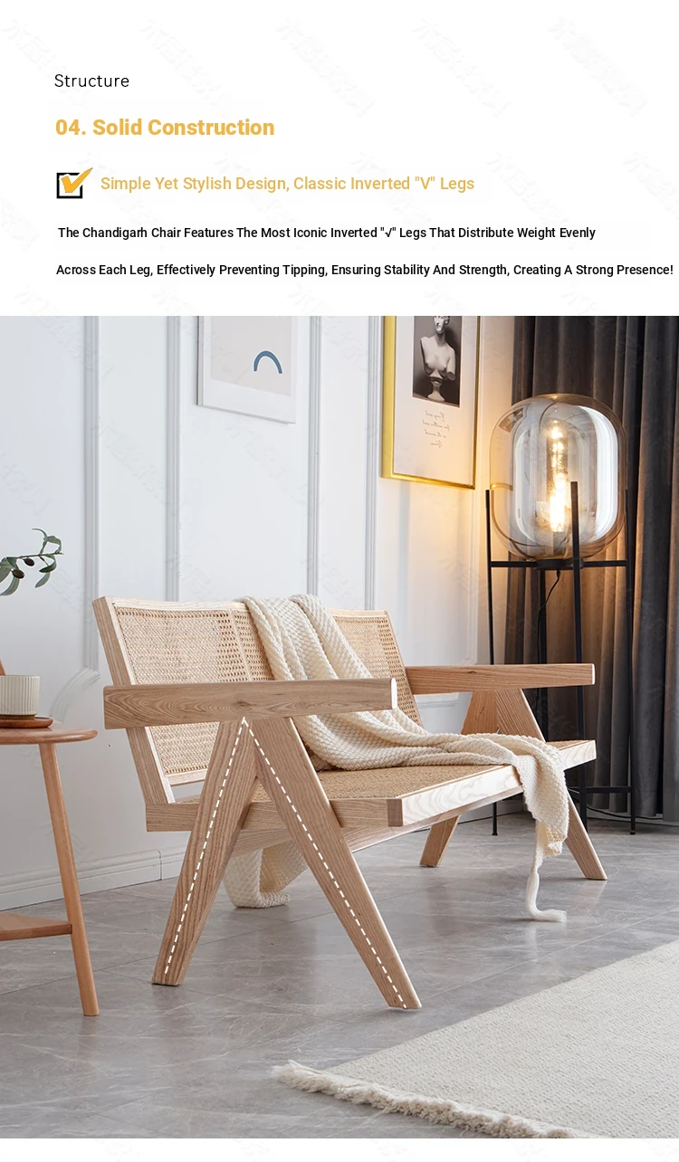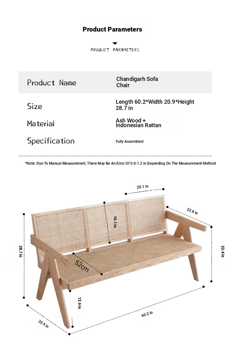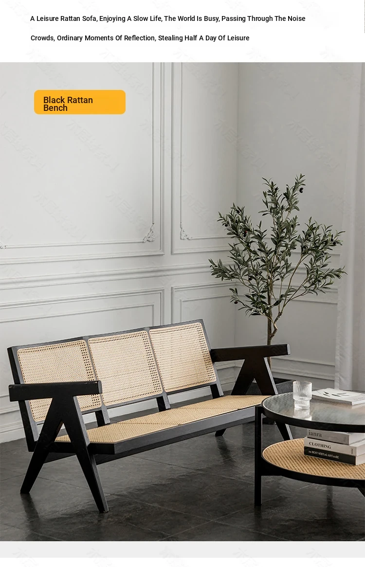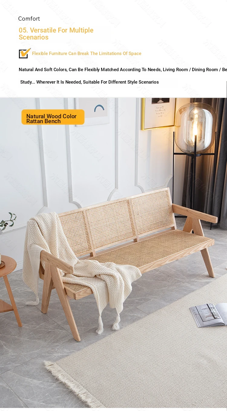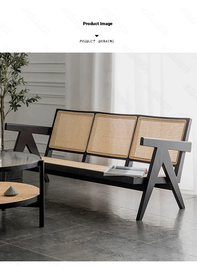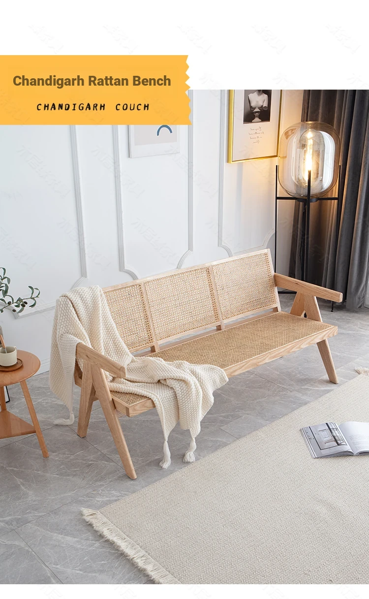 Scandinavian Rattan-Woven Solid Wood Sofa Chair - Perfect for Small Spaces, 3-Seater, Versatile Ash Wood Sofa for Year-Round Comfort in Homes and Guesthouses