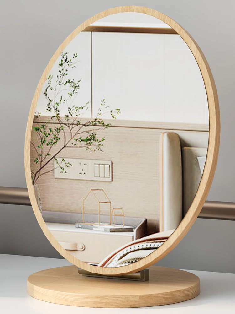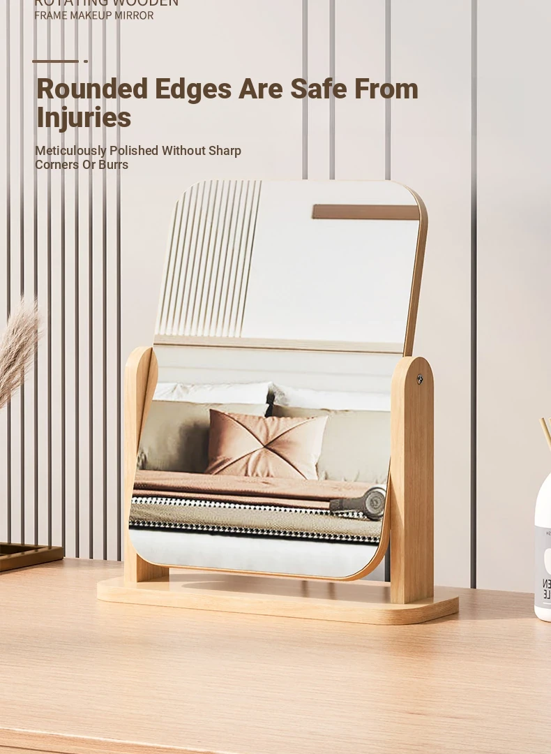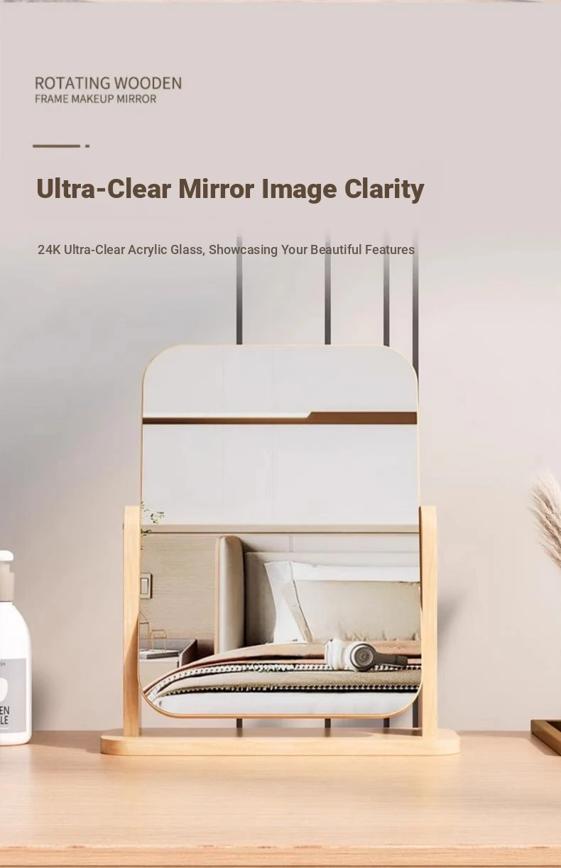 Stylish Wooden Element Rotating Makeup Mirror – Compact Tabletop Mirror for Home, Dorms, and On-the-Go Beauty Touch-Ups