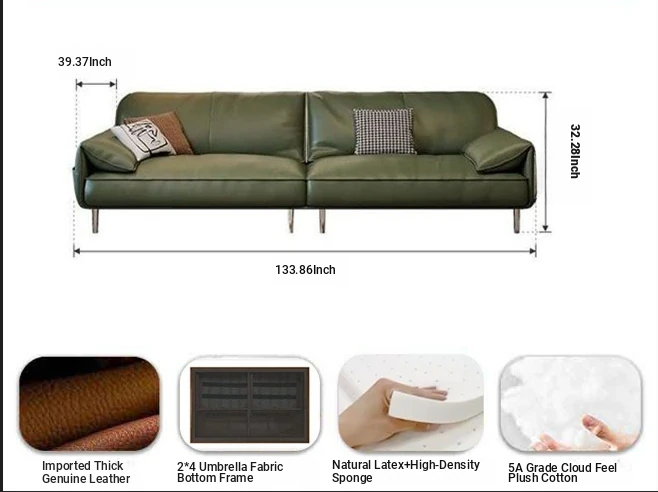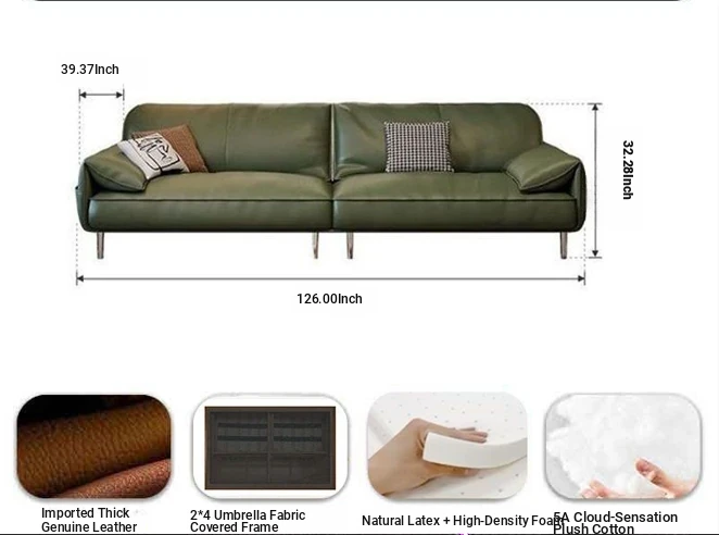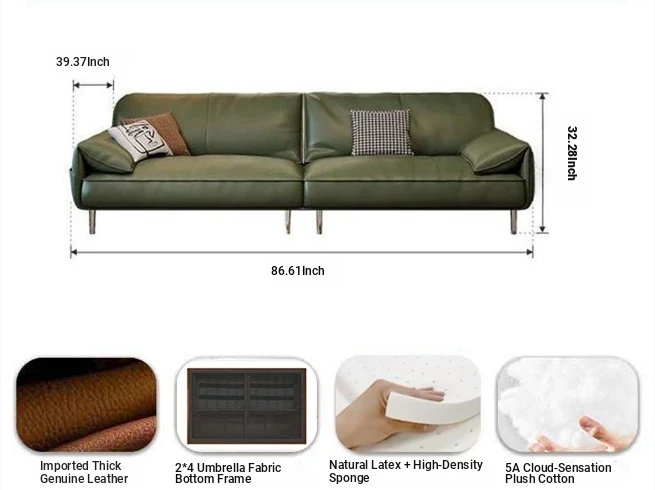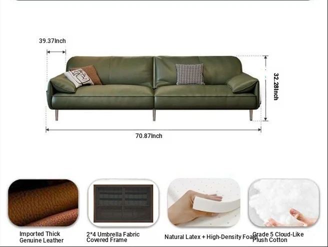 Vintage Style Dark Green Leather Sofa for Small Living Rooms - Elegant Elephant Ear Design, Waxed Finish, 3-Seater Retro Couch