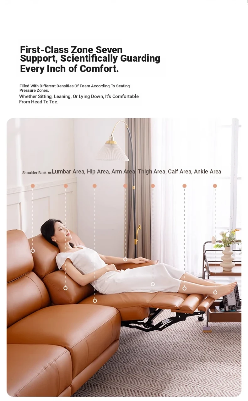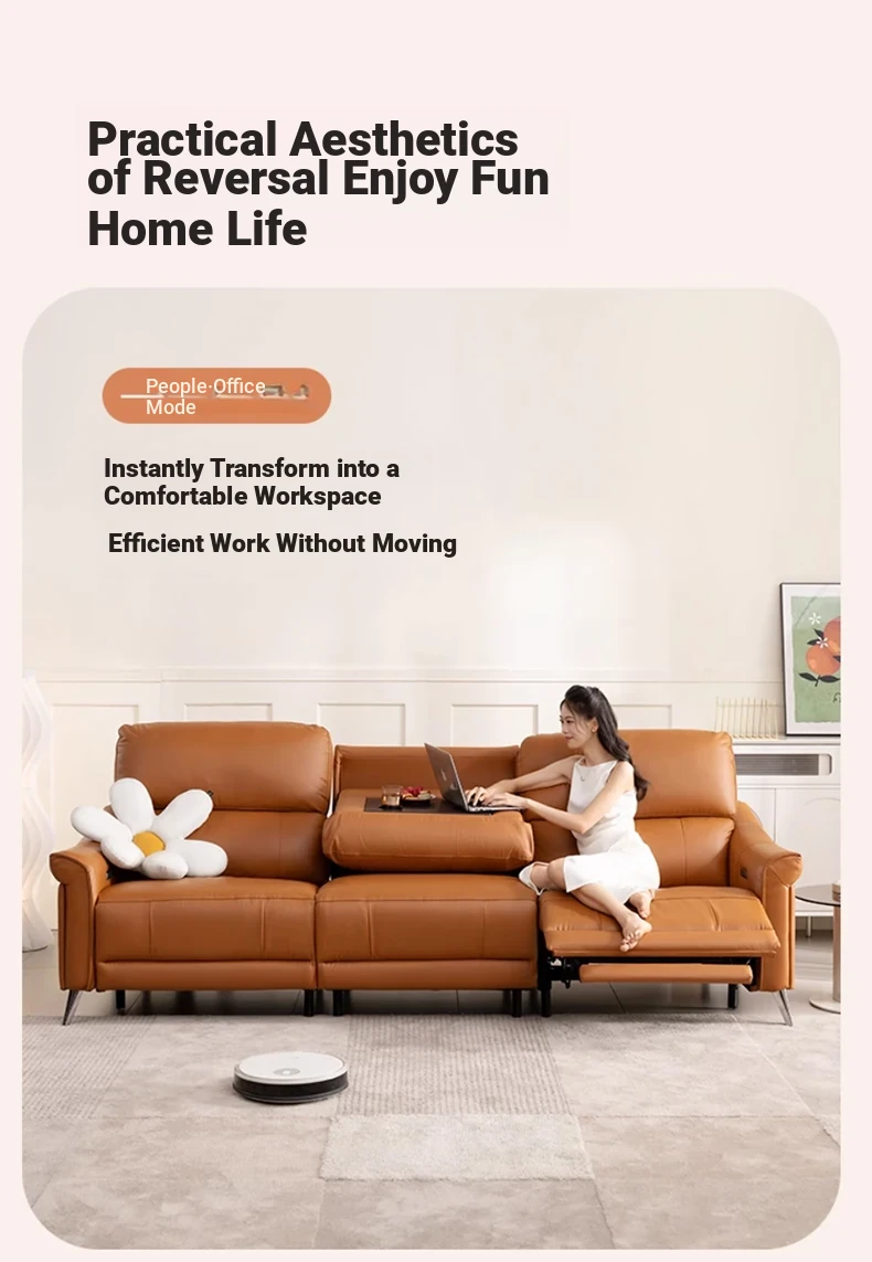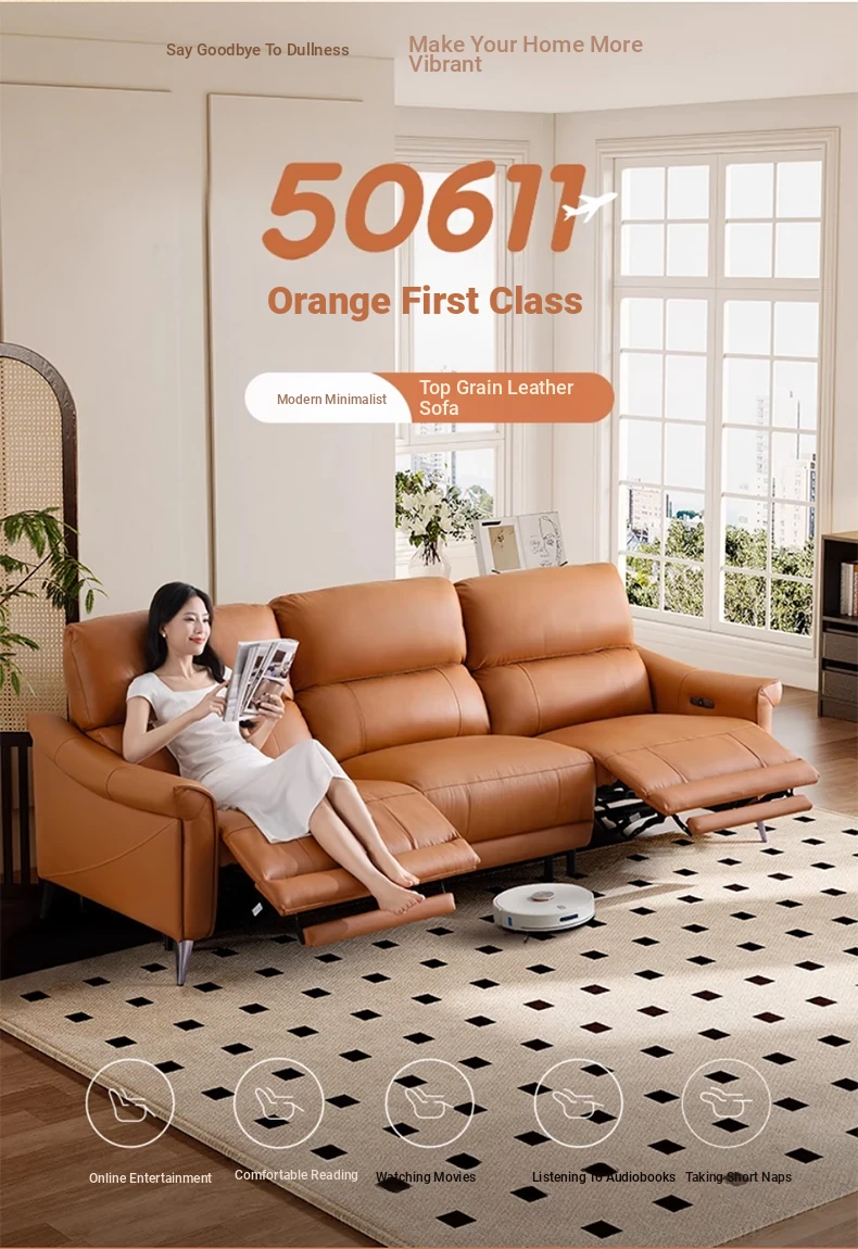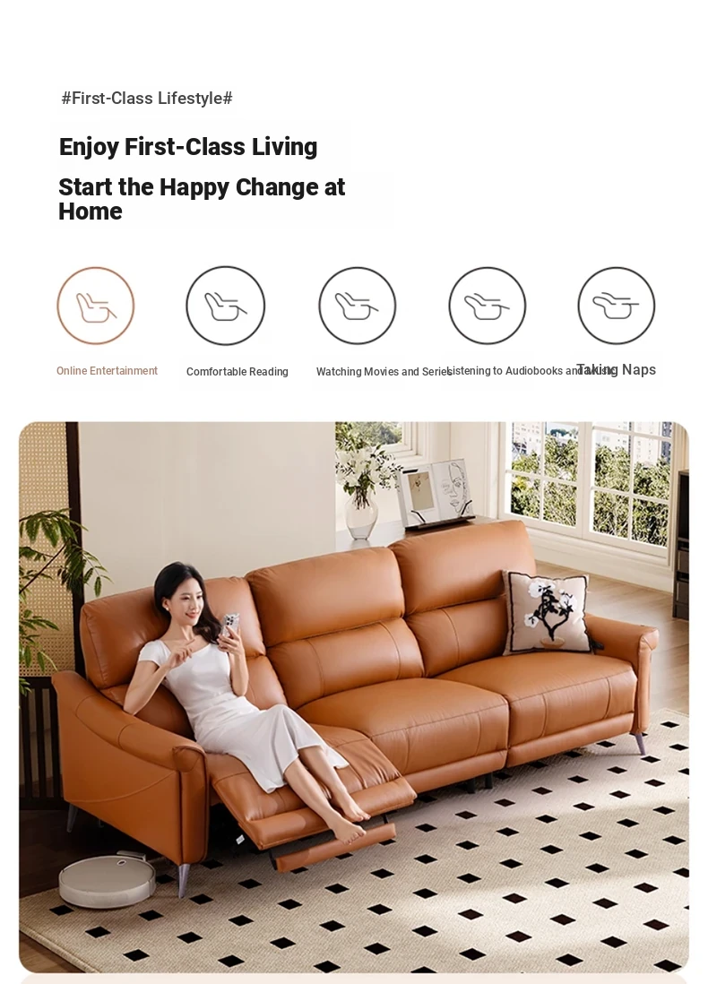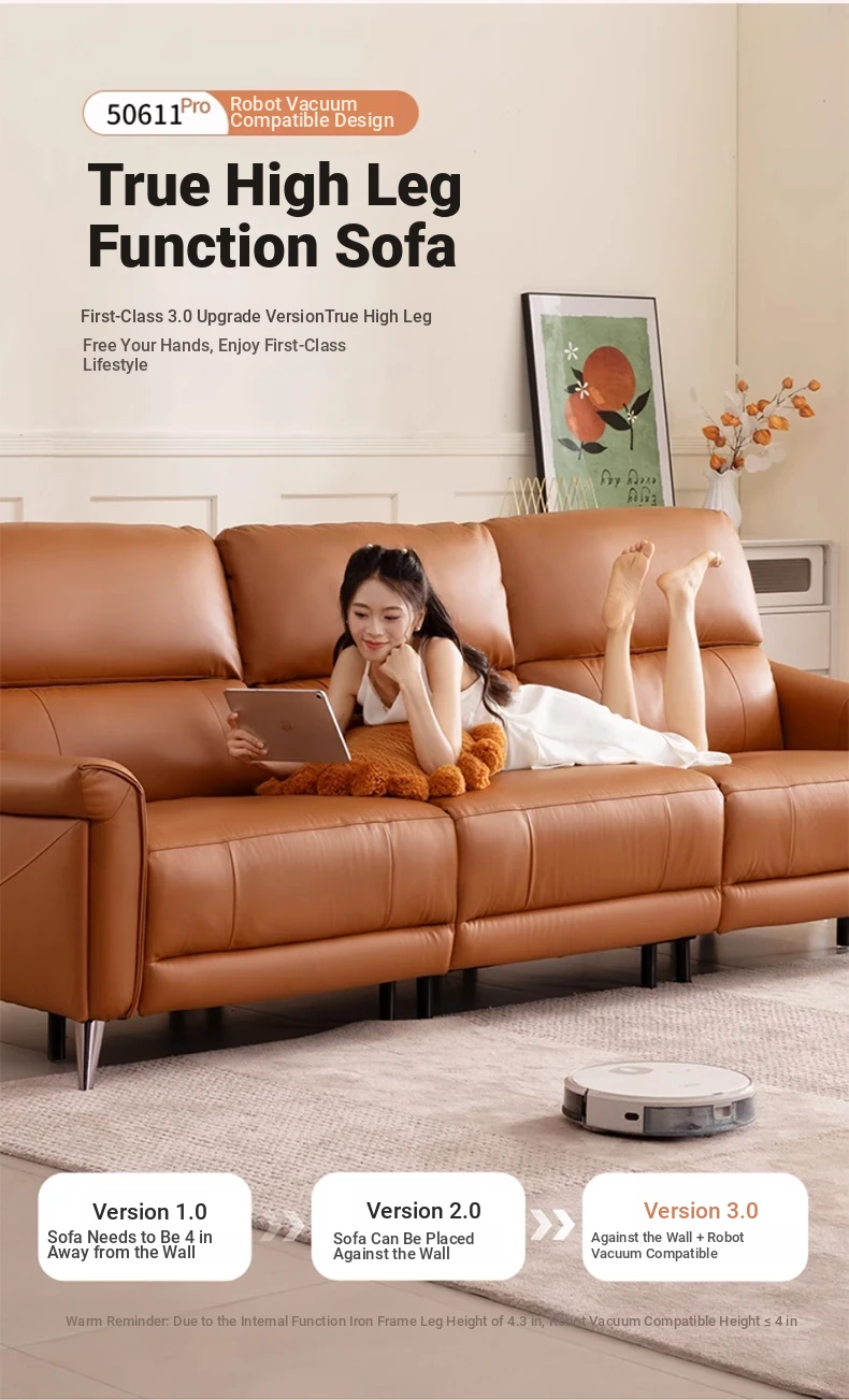 ZhiHuaShi First-Class Compact Electric Multi-Functional Three-Seater Leather Sofa for Living Room - Model 50611B, Perfect for Small Spaces!