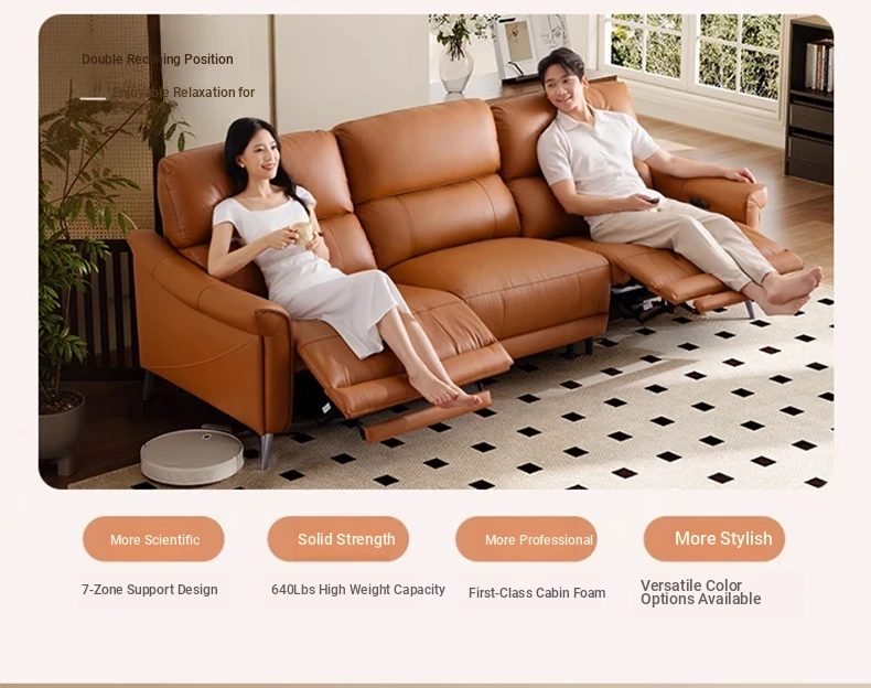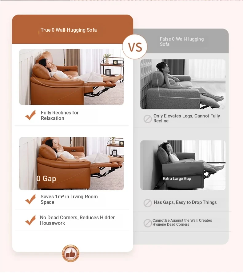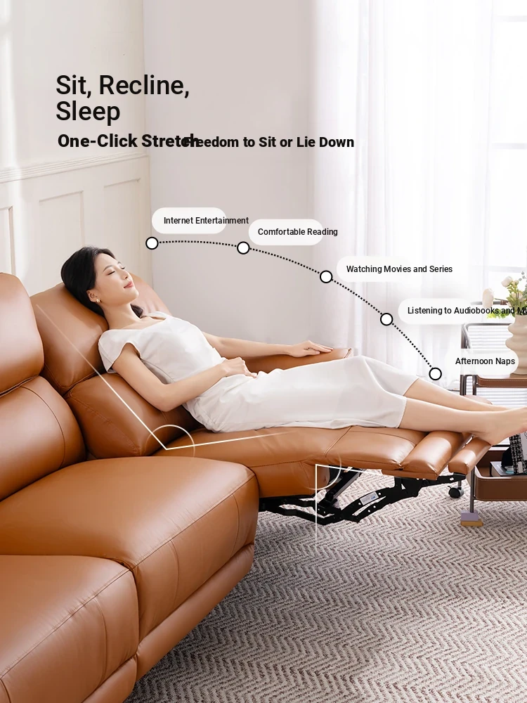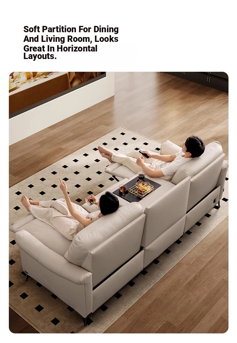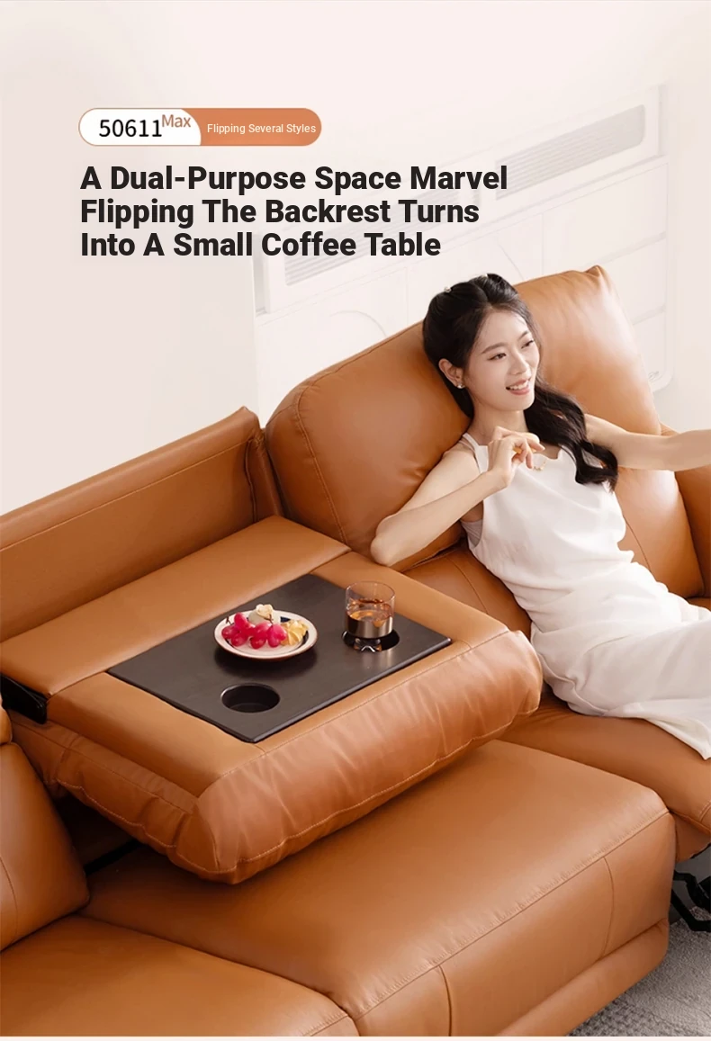 ZhiHuaShi First-Class Compact Electric Multi-Functional Three-Seater Leather Sofa for Living Room - Model 50611B, Perfect for Small Spaces!