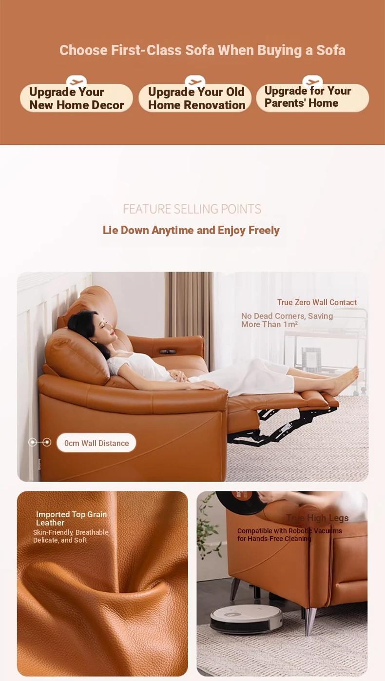 [Zero Wall-Sweeper] 85.43in Chixia Orange-Small Three-person Double Electric
