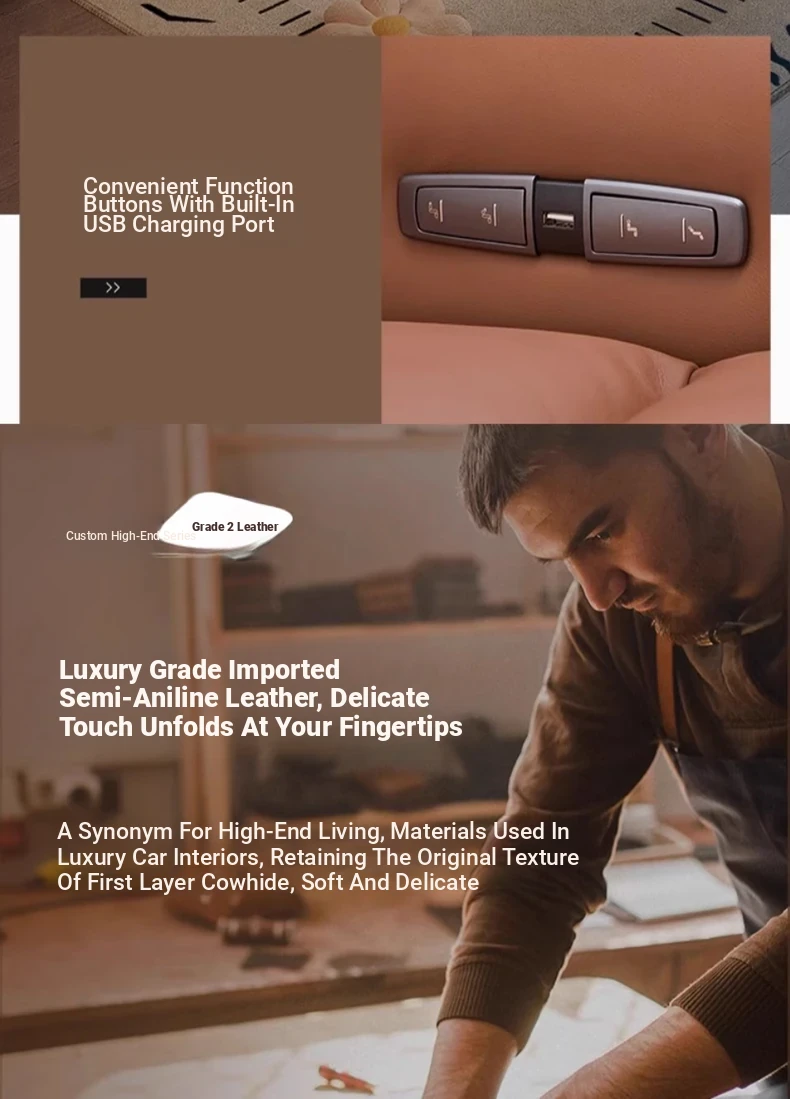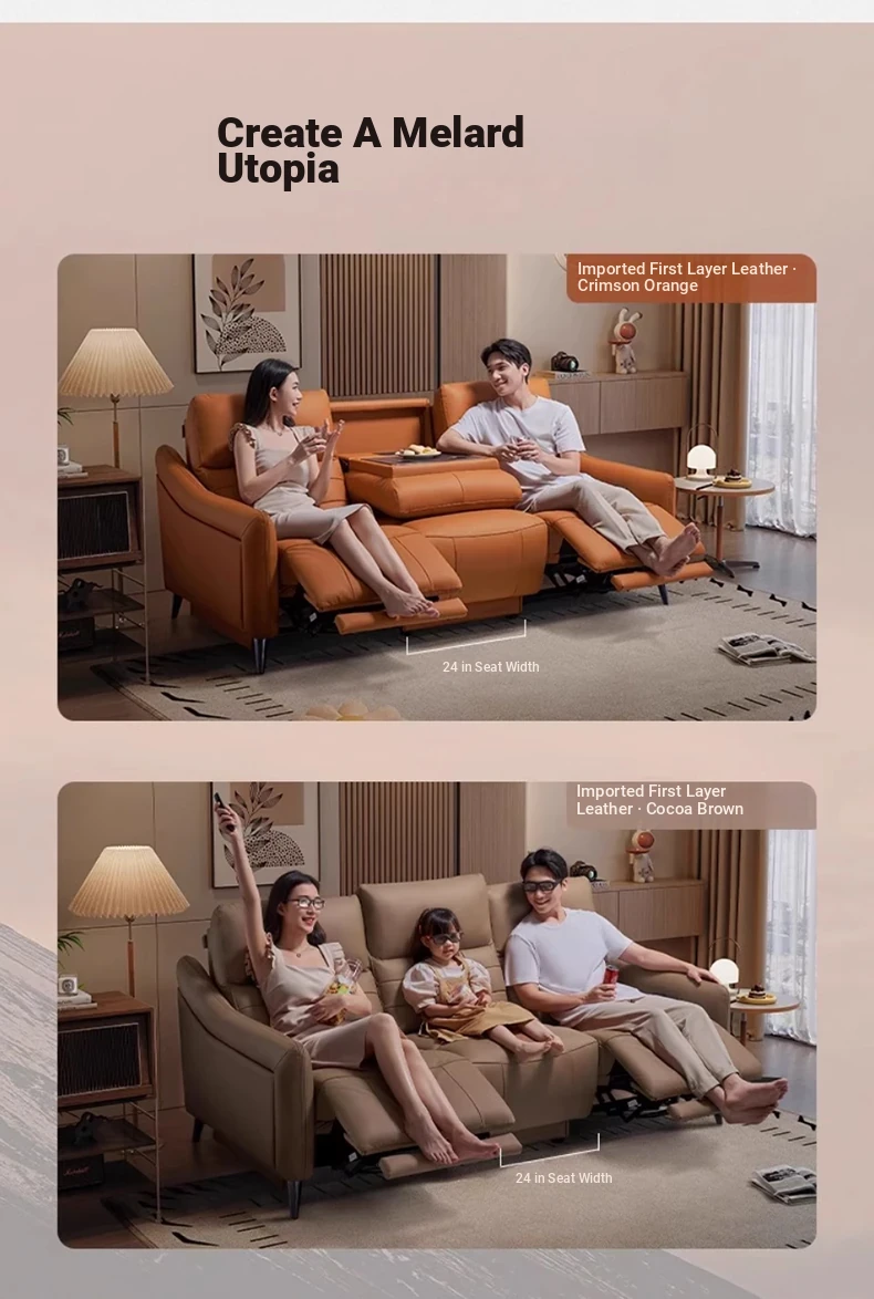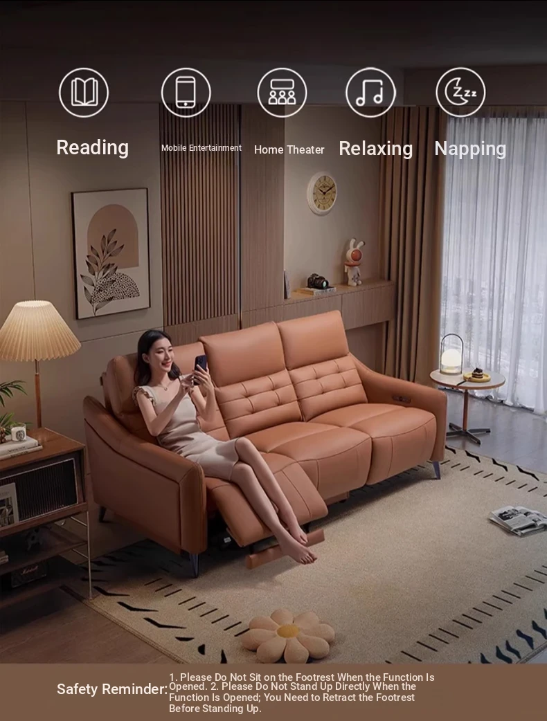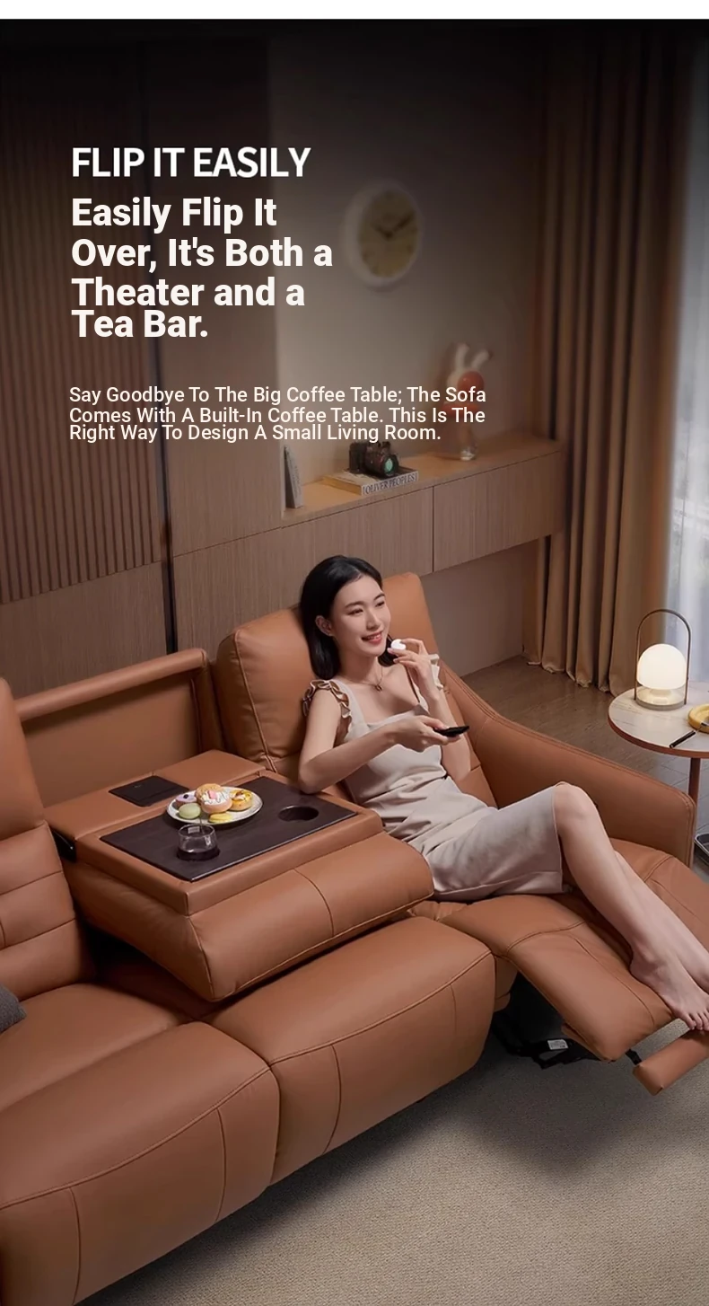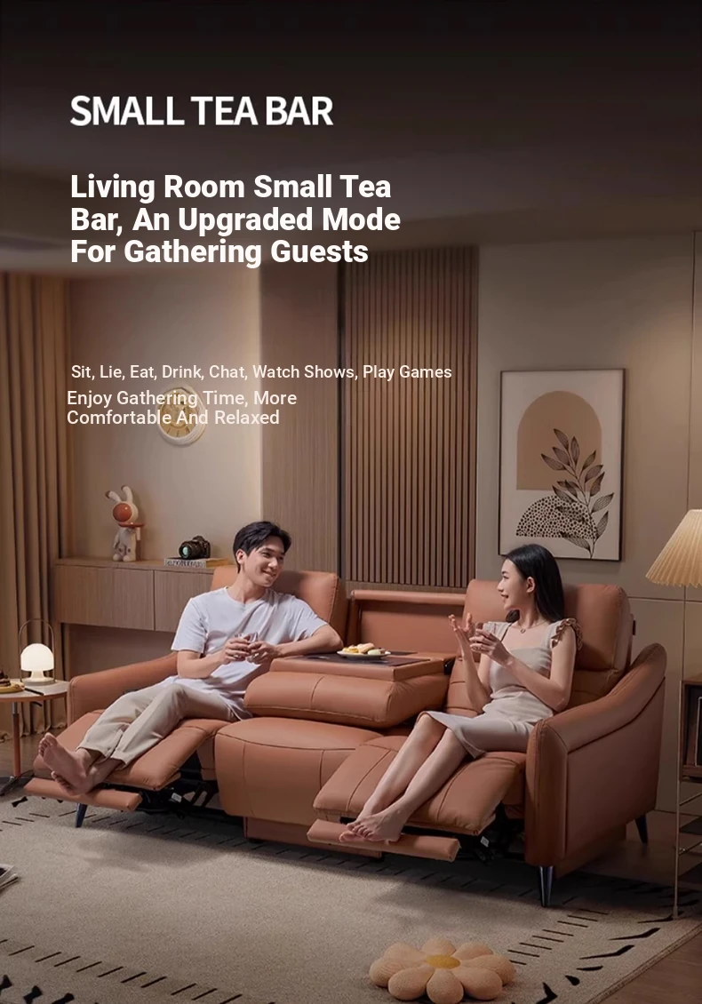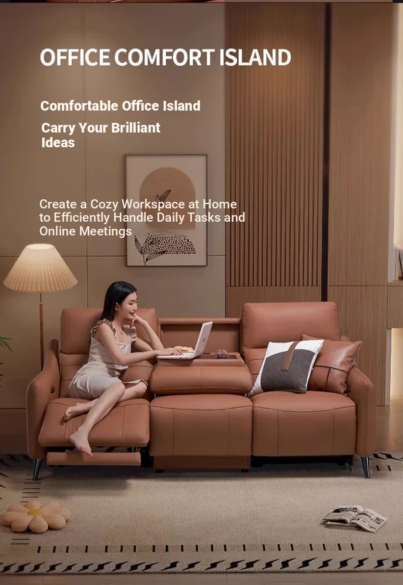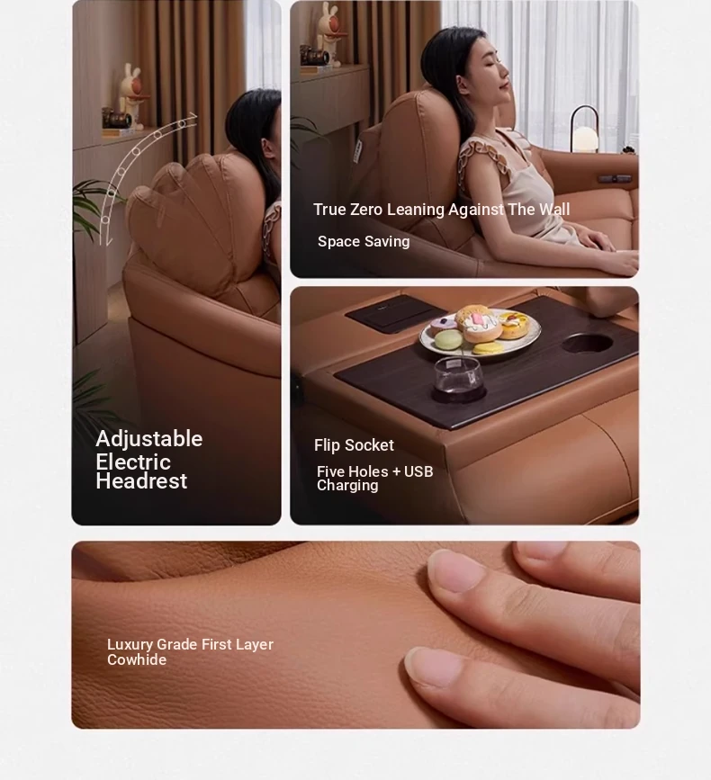 Zhiwa Shi First-Class Home Theater Sofa - Genuine Leather Electric Adjustable Media Room Couch with Cup Holders - Model 40043. Experience unparalleled comfort and luxury in your home cinema!