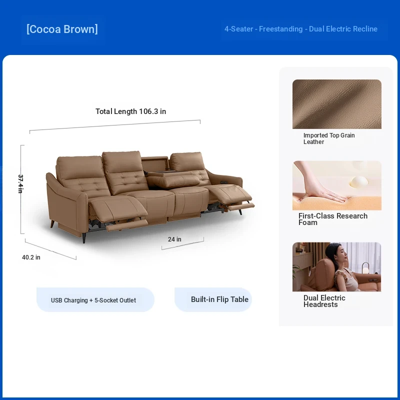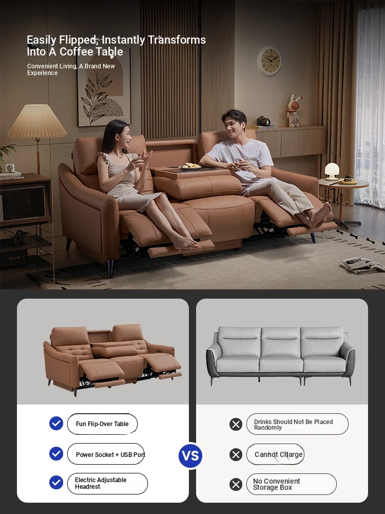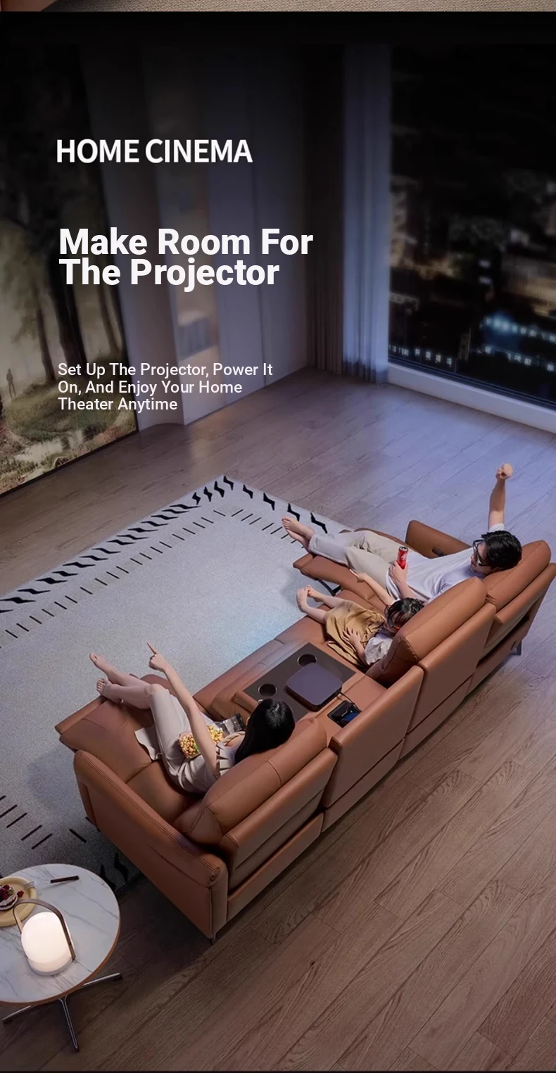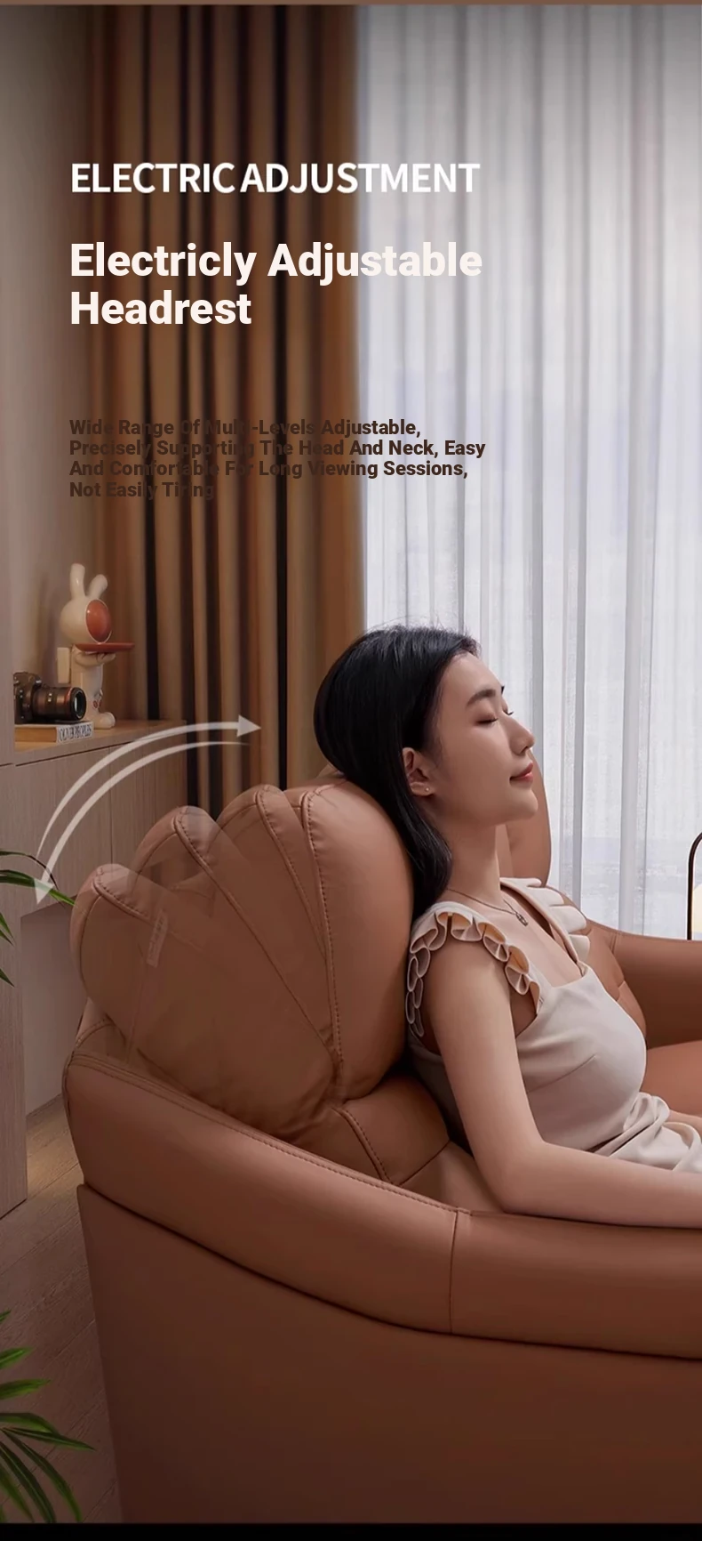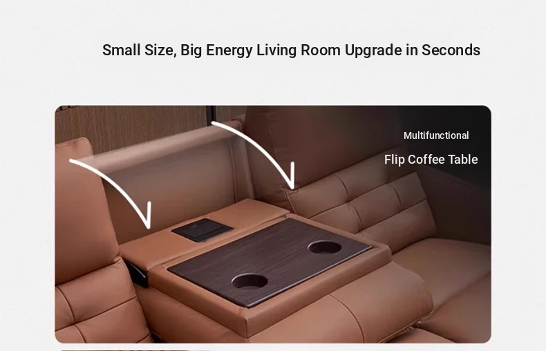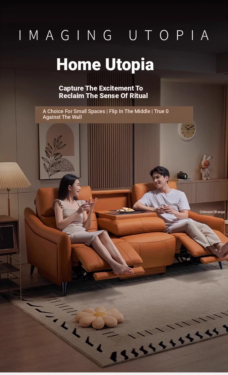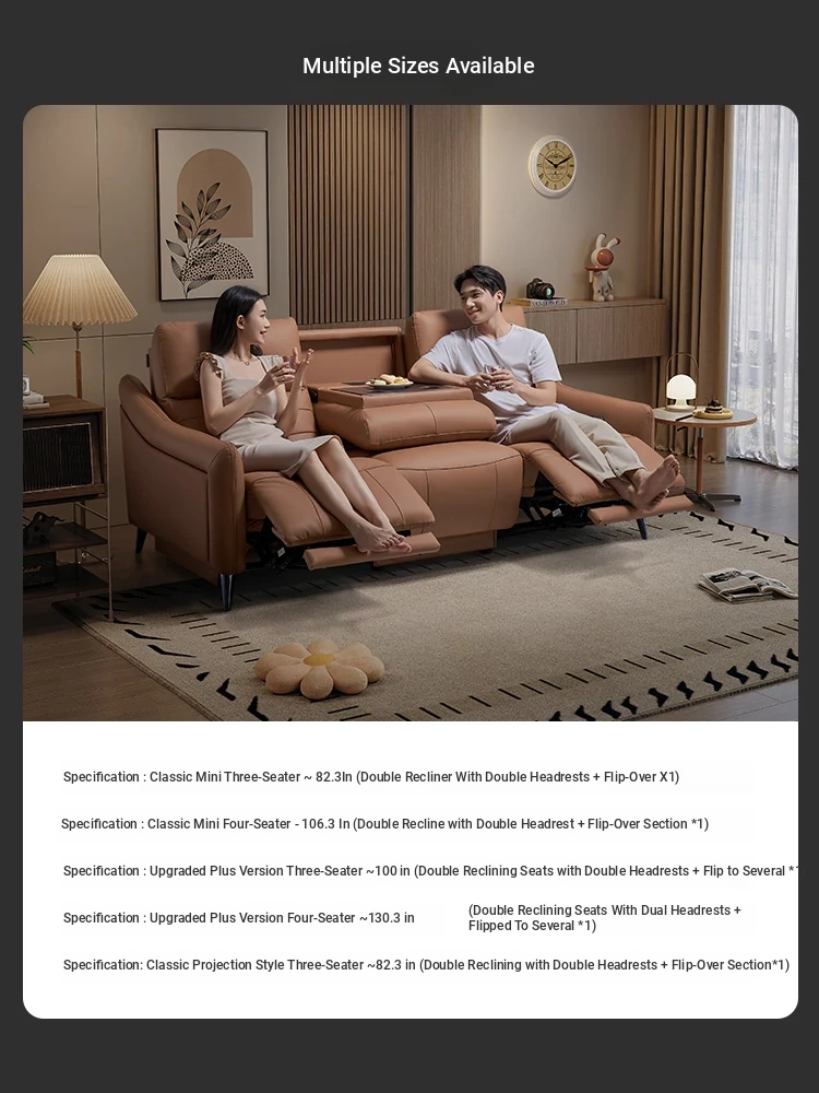 Zhiwa Shi First-Class Home Theater Sofa - Genuine Leather Electric Adjustable Media Room Couch with Cup Holders - Model 40043. Experience unparalleled comfort and luxury in your home cinema!