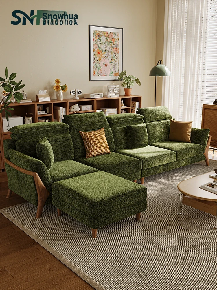 2025 New Modern Minimalist Vintage-Style Chenille Green Fabric Sofa for Small Living Rooms - Removable and Washable Cover