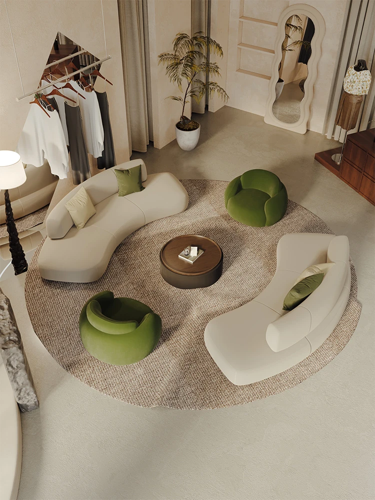 Chic Curved Shaped Sofa for Fashion Boutiques and Beauty Salons - Elevate Your Reception Area with Luxurious Comfort and Style. Perfect for Waiting Areas and Client Lounges.
