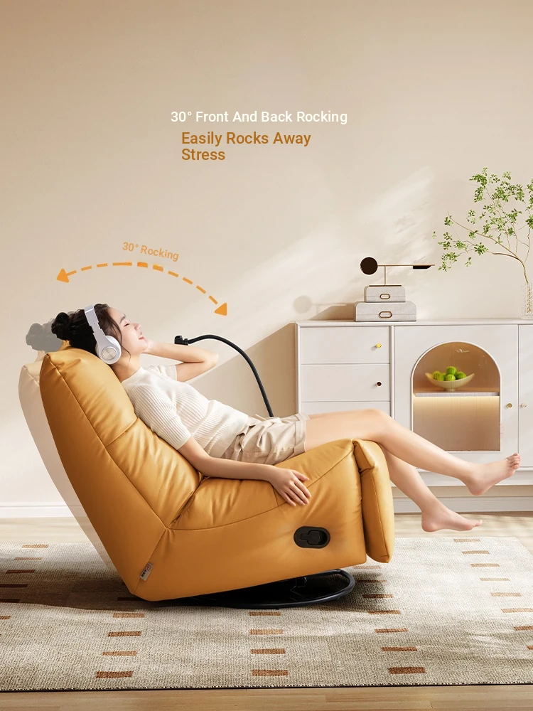 [Save 15%] ZhiHuaShi Lazy Caterpillar Recliner Sofa - Genuine Leather Rocking Chair with Adjustable Backrest and Phone Holder - Model 30131