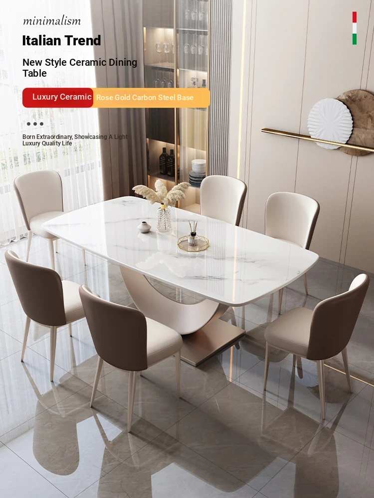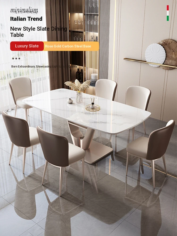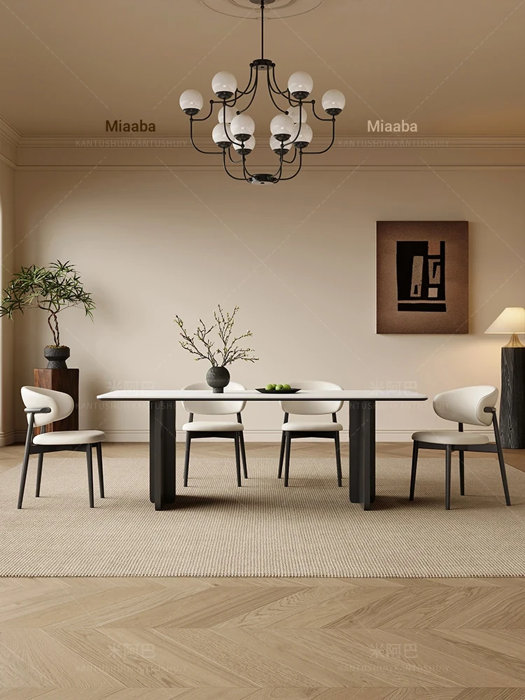 Creamy Wind Rock Plate Dining Table and Chair Set - Modern Minimalist Luxury for Small Spaces, Elegant Rectangular Design Perfect for Home Dining